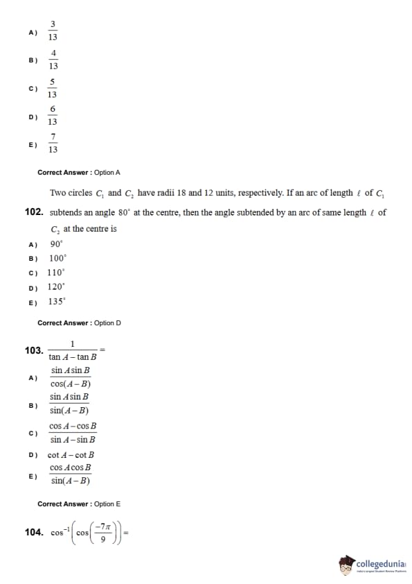 Two circles \(C_1\) and \(C_2\) have radii 18 and 12 units, respectively. If an arc of length \( \ell \) of \(C_1\) subtends an angle 80° at the centre, then the angle subtended by an arc of same length \( \ell \) of \(C_2\) at the centre is: