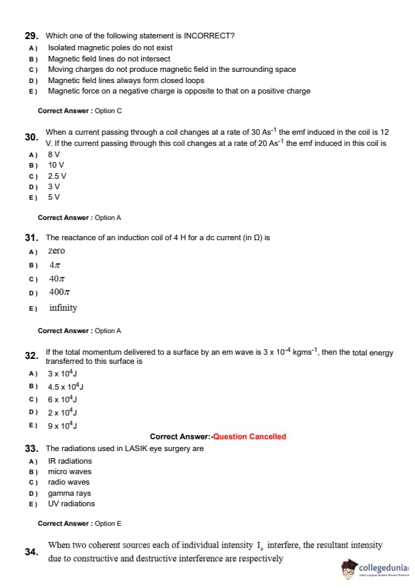 | KEAM 2024 (June 6) Question Paper with Answer Key | Check Solution |
