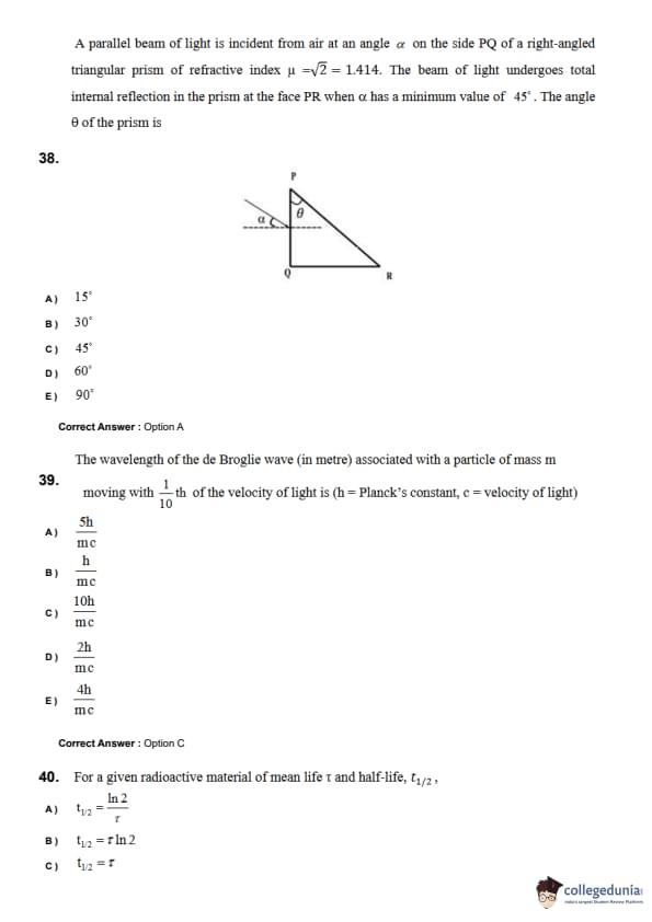 KEAM 2024 Question Paper (June 9) is available for download here. Office of The Commissioner for Entrance Examinations (CEE Kerala) conducted KEAM Engineering exam 2024 in CBT mode on June 9 in afternoon shift from 2 PM to 5 PM. KEAM Engineering 2024 Question Paper consists total of 150 questions carrying 4 mark each with negative marking of 1 for each incorrect answer. KEAM 2024 Question Paper includes Mathematics with 75 questions, Physics with 45 questions and Chemistry with 30 questions to be attempted in total of 180 minutes.