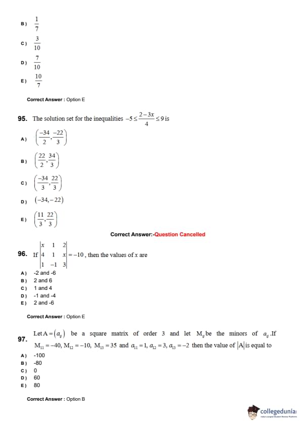 1 & -1 & 3 \end{bmatrix} \) equals -10, then the values of \( x \) are: