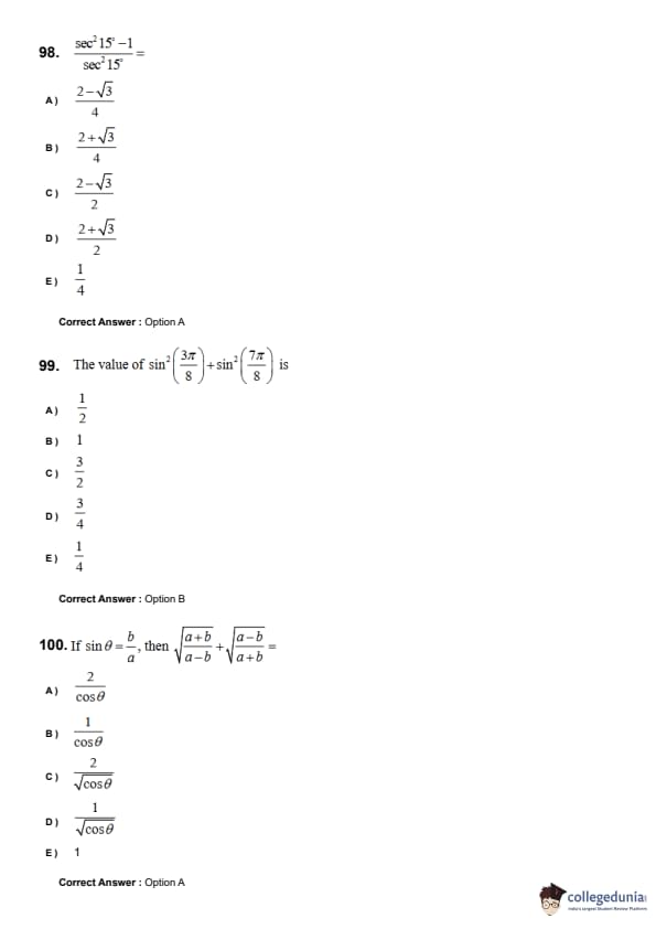 If \( \frac{\sec^2 15^\circ - 1}{\sec^2 15^\circ} \) equals: