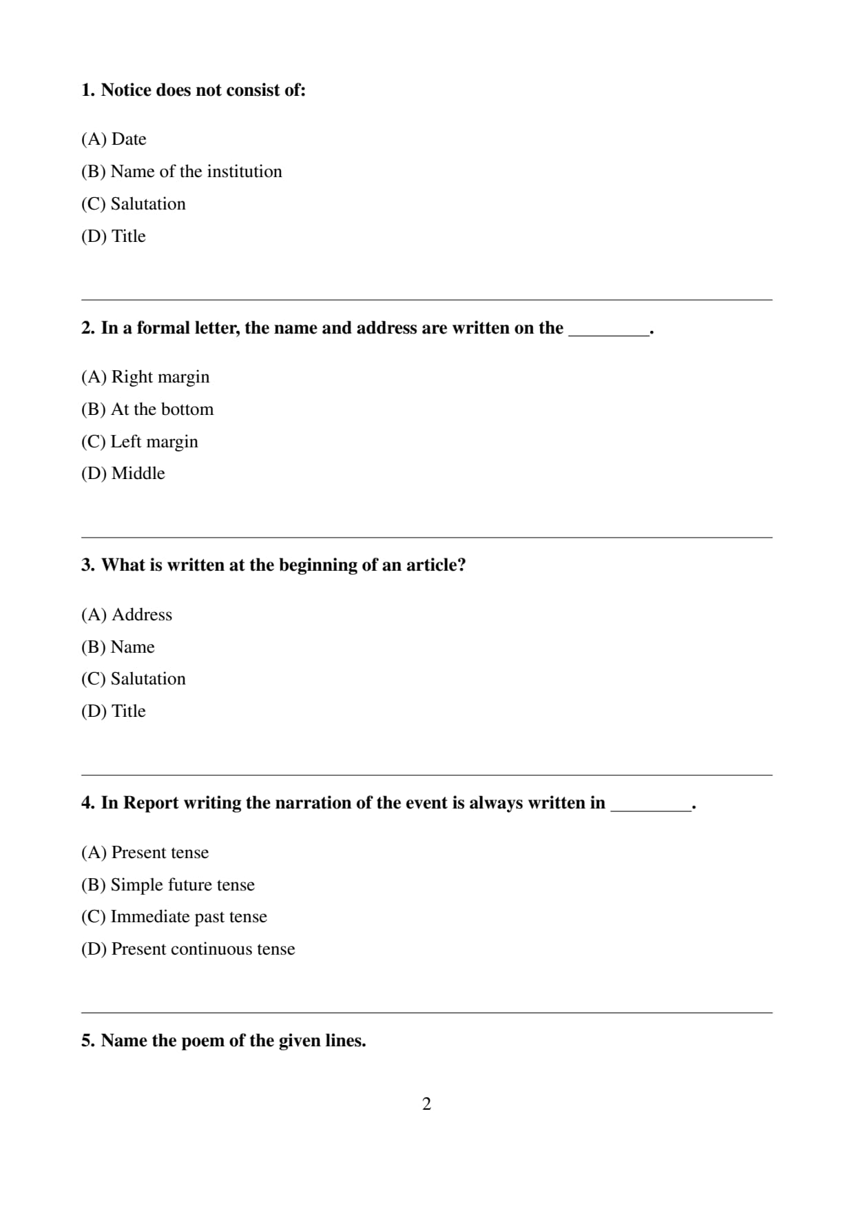 Since a notice does not contain a salutation, the correct answer is (C).