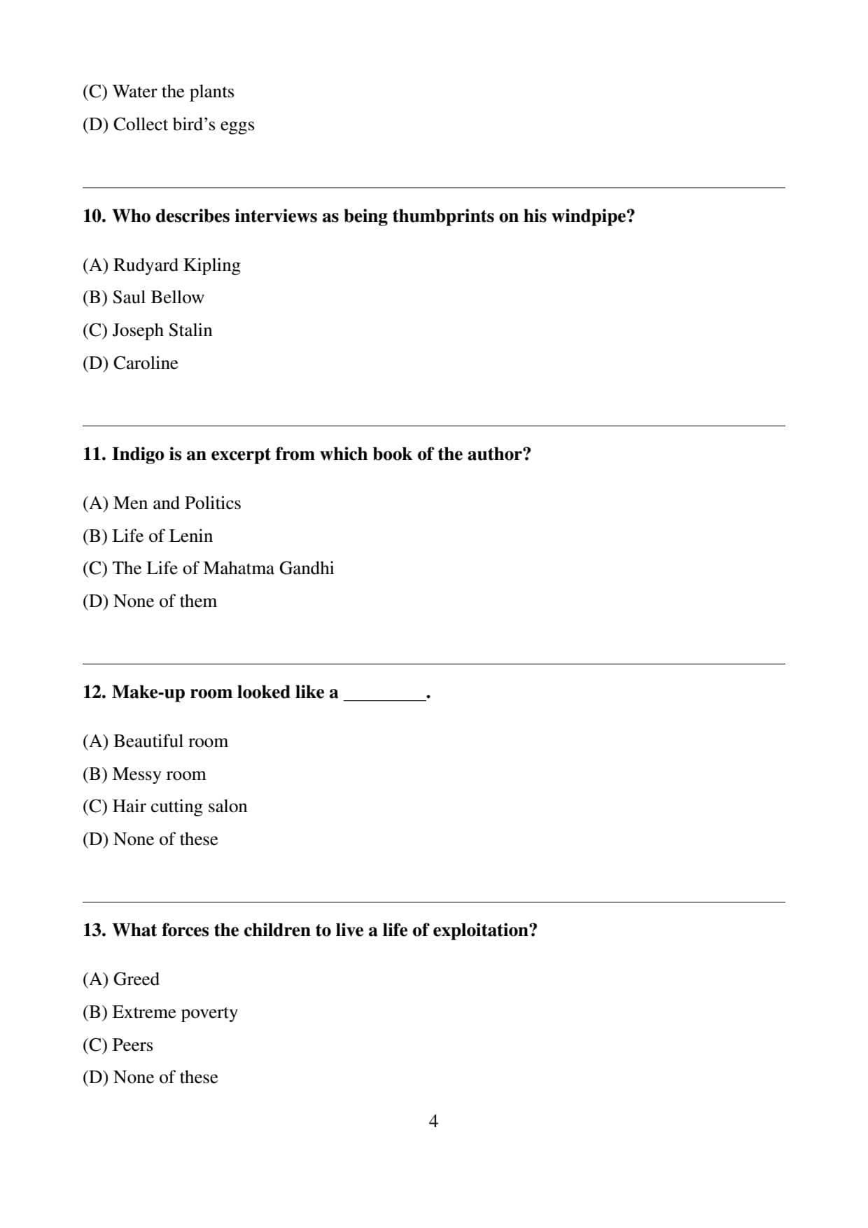 (A) Rudyard Kipling: This is correct because he used the metaphor “thumbprints on his windpipe” to show how oppressive interviews felt to him.