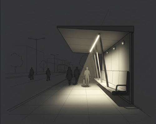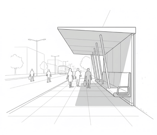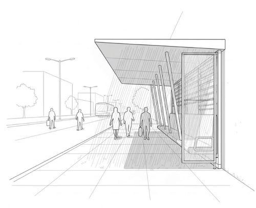 Conceptual Solution: Recessed or cantilevered shelter with vertical bench seating,