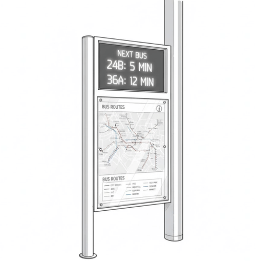 Conceptual Solution: Dedicated display panel with real-time arrival estimates and a static