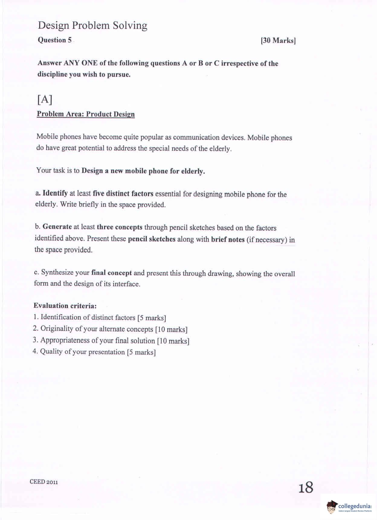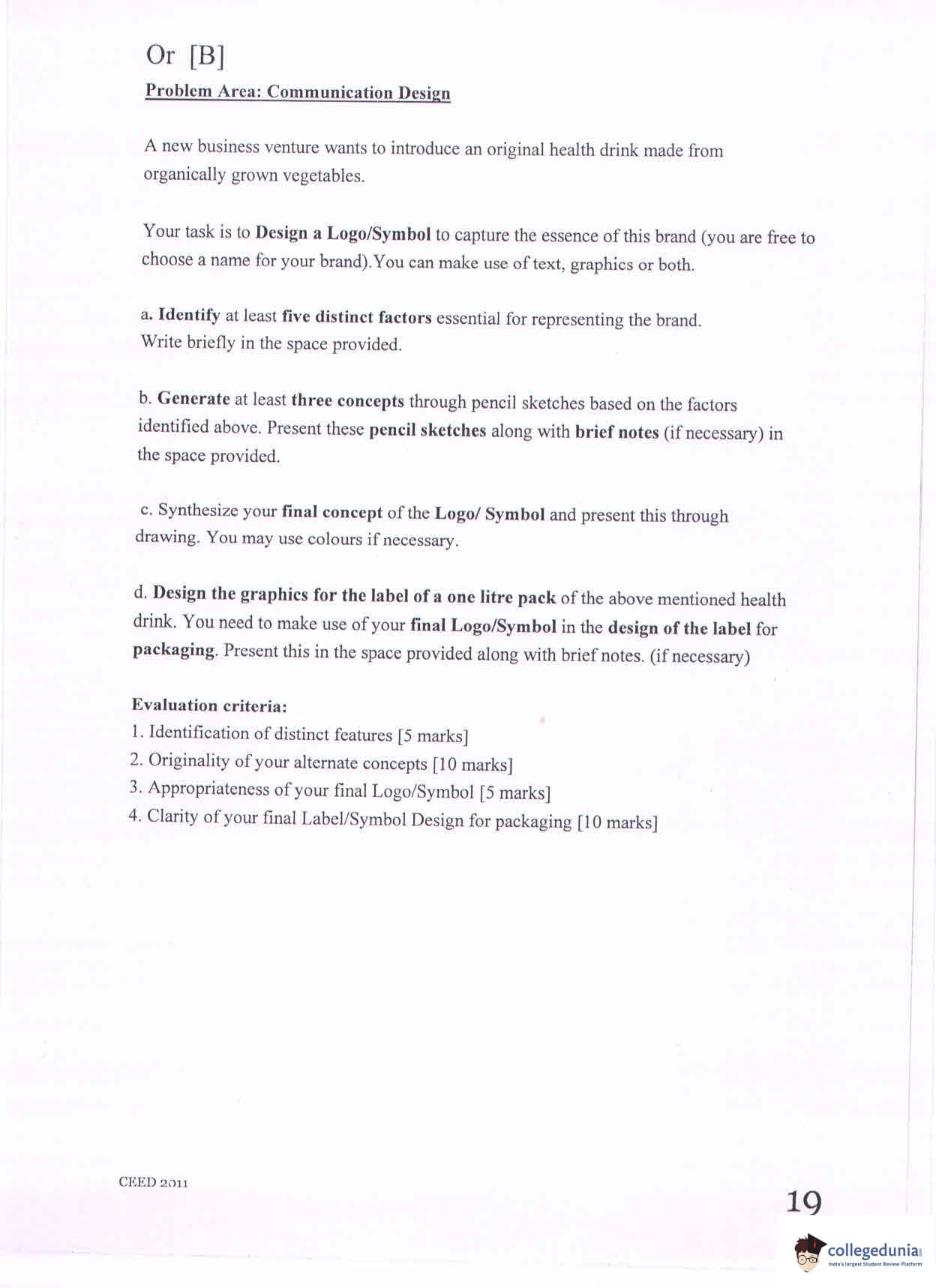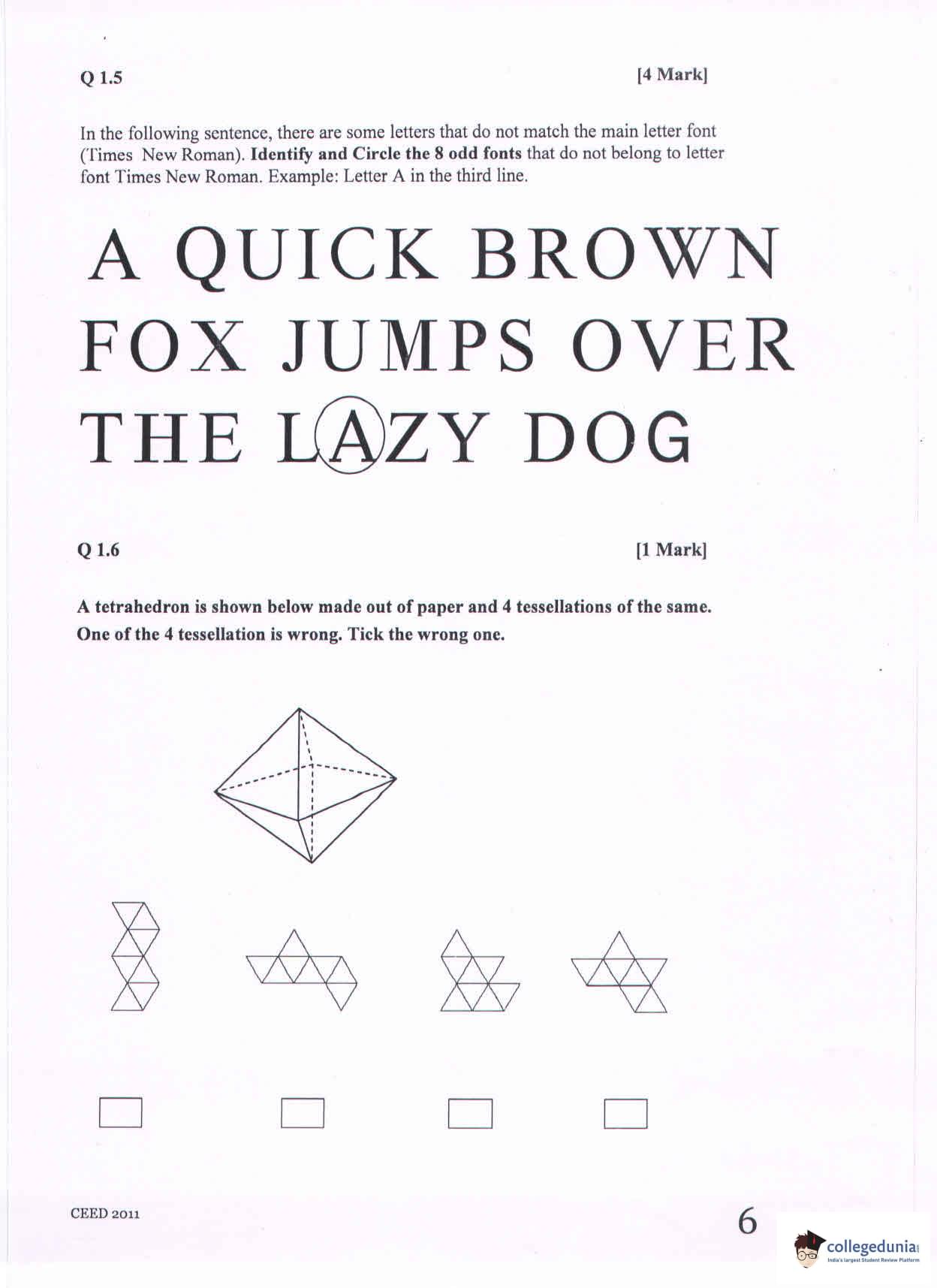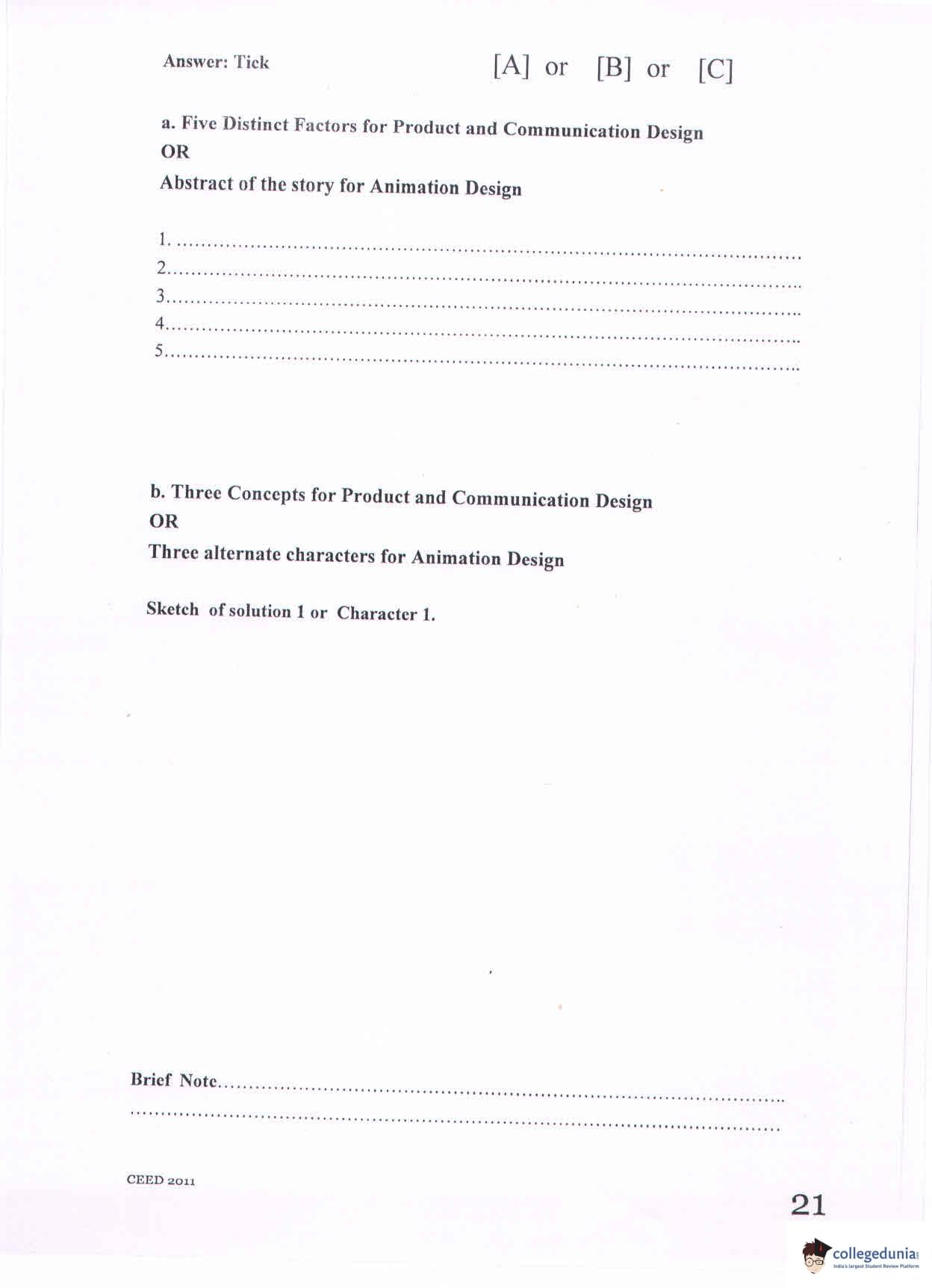 CEED 2011 Question paper with answer key pdf conducted in 2011 is available for download. The exam was successfully organized by IIT Bombay. In terms of difficulty level, CEED 2011 was of Moderate level. The question paper comprised a total of 49 questions.