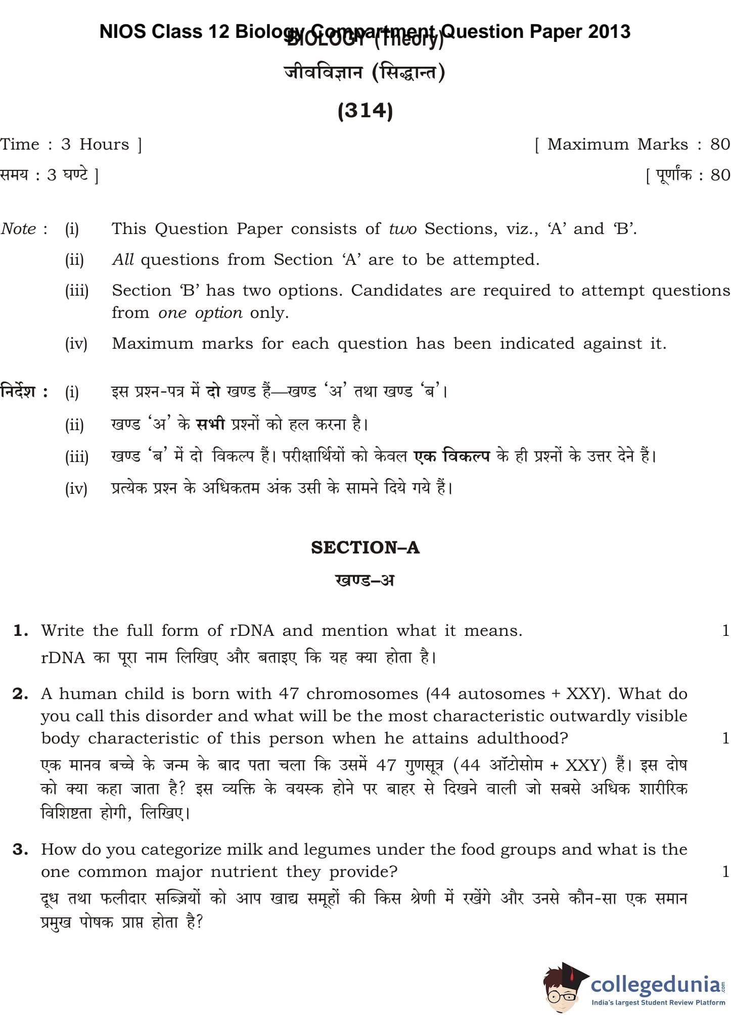| NIOS Class 12 Biology Question Paper 2013 PDF | NIOS Class 12 Biology Answer Key 2013 PDF |
