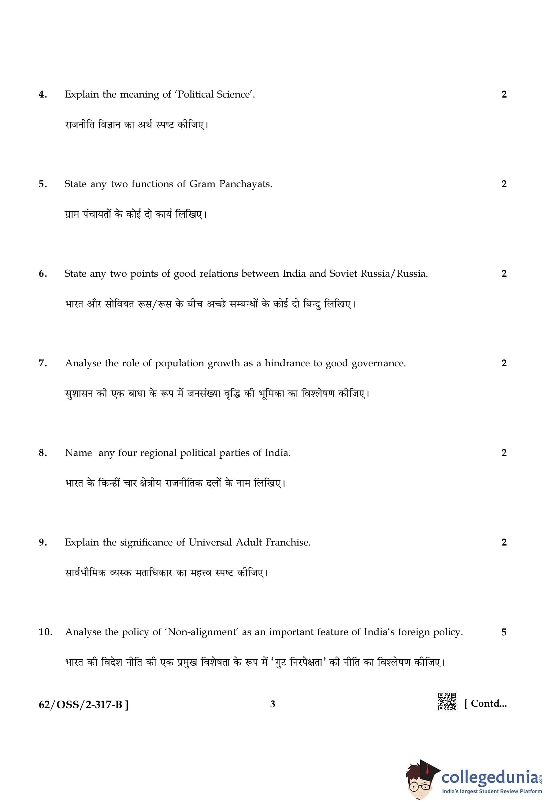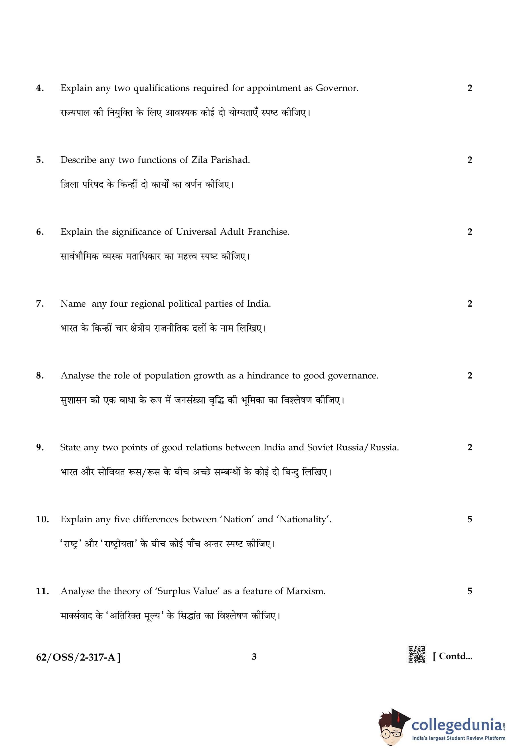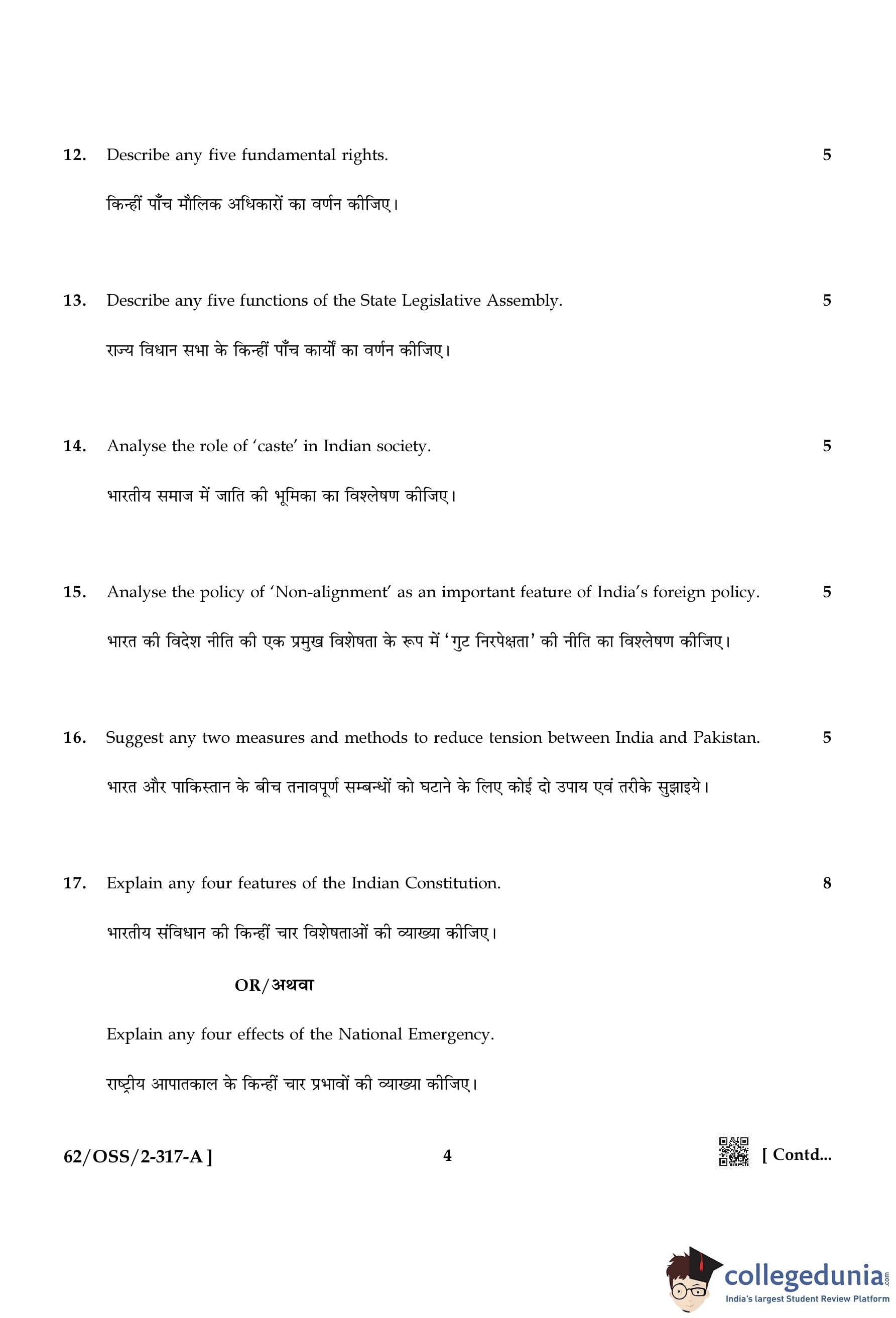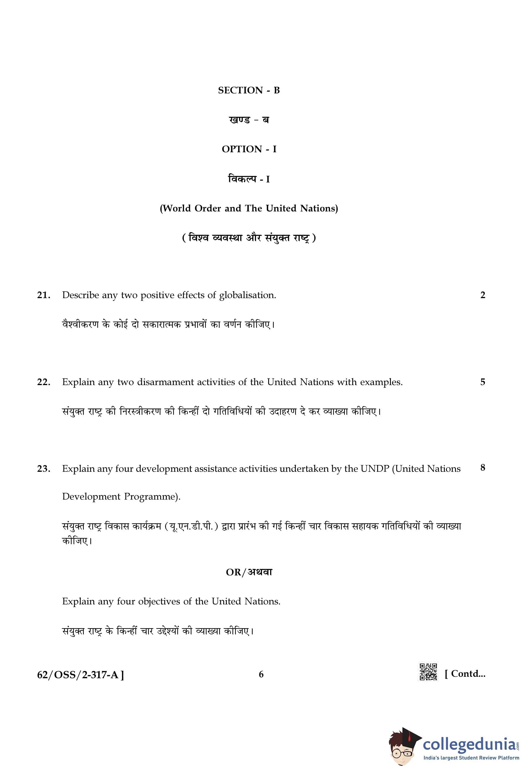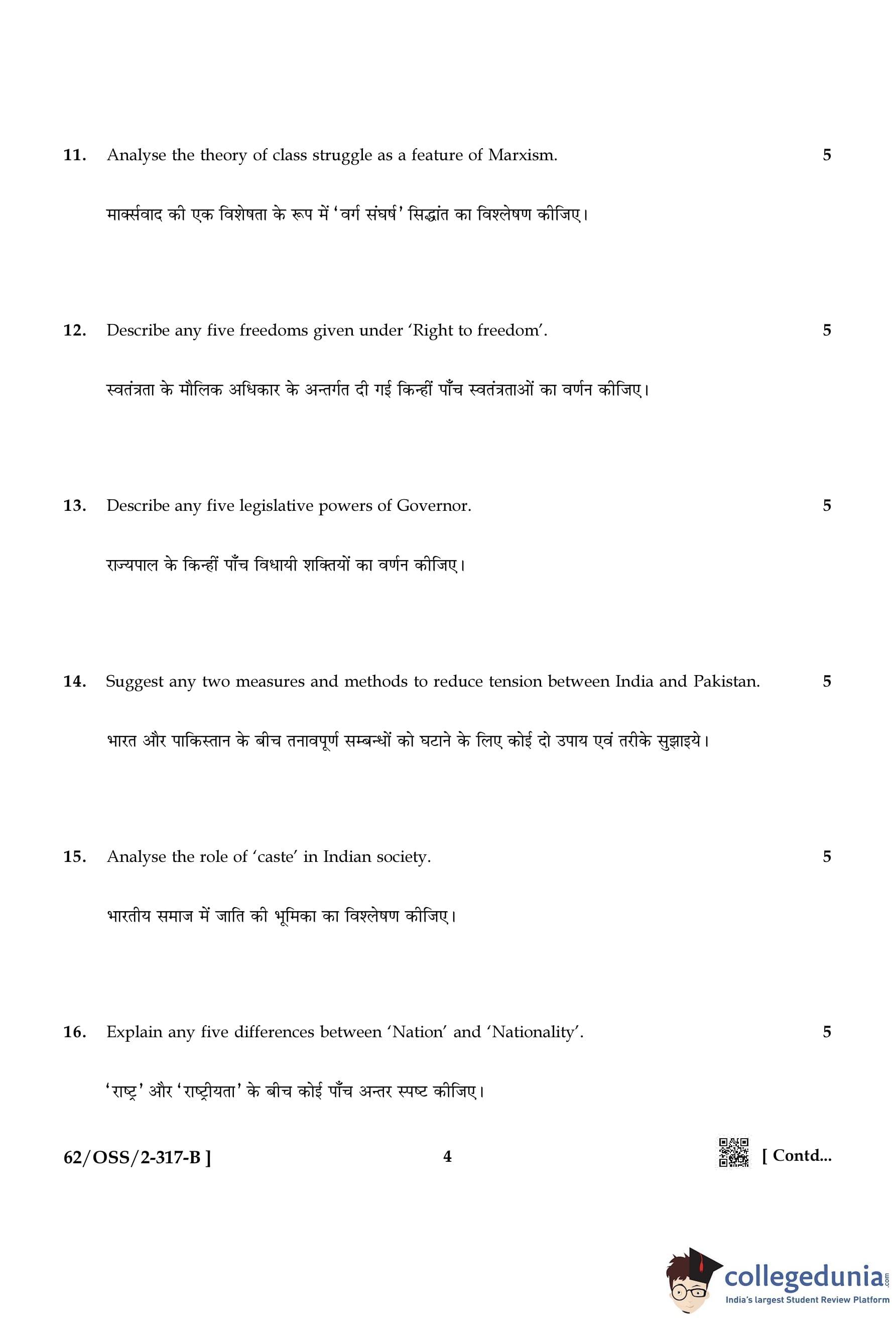 NIOS Class 12 Political Science Compartment Question Paper 2021 with Answer Key