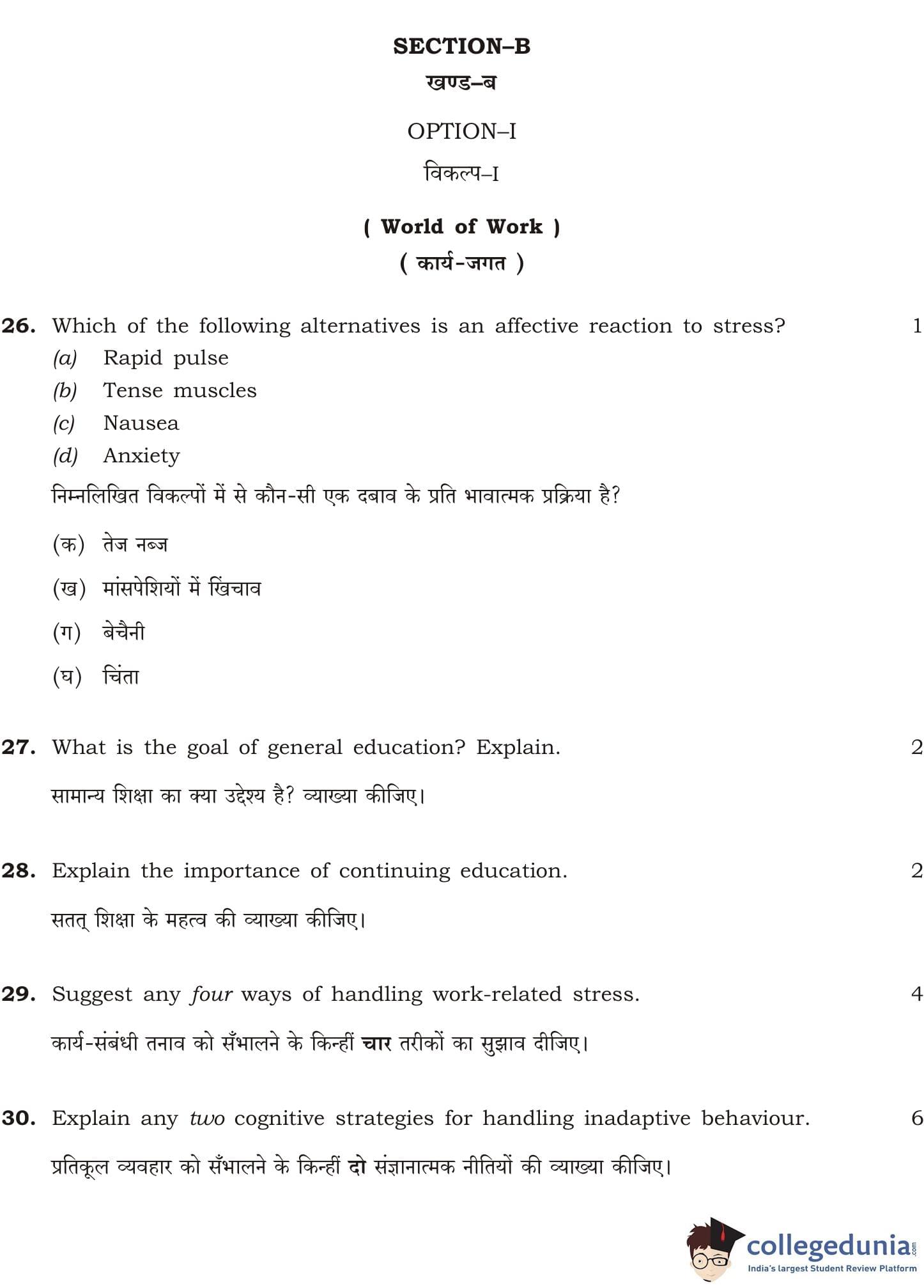 NIOS Class 12 Psychology Compartment Question Paper 2013 with Answer Key