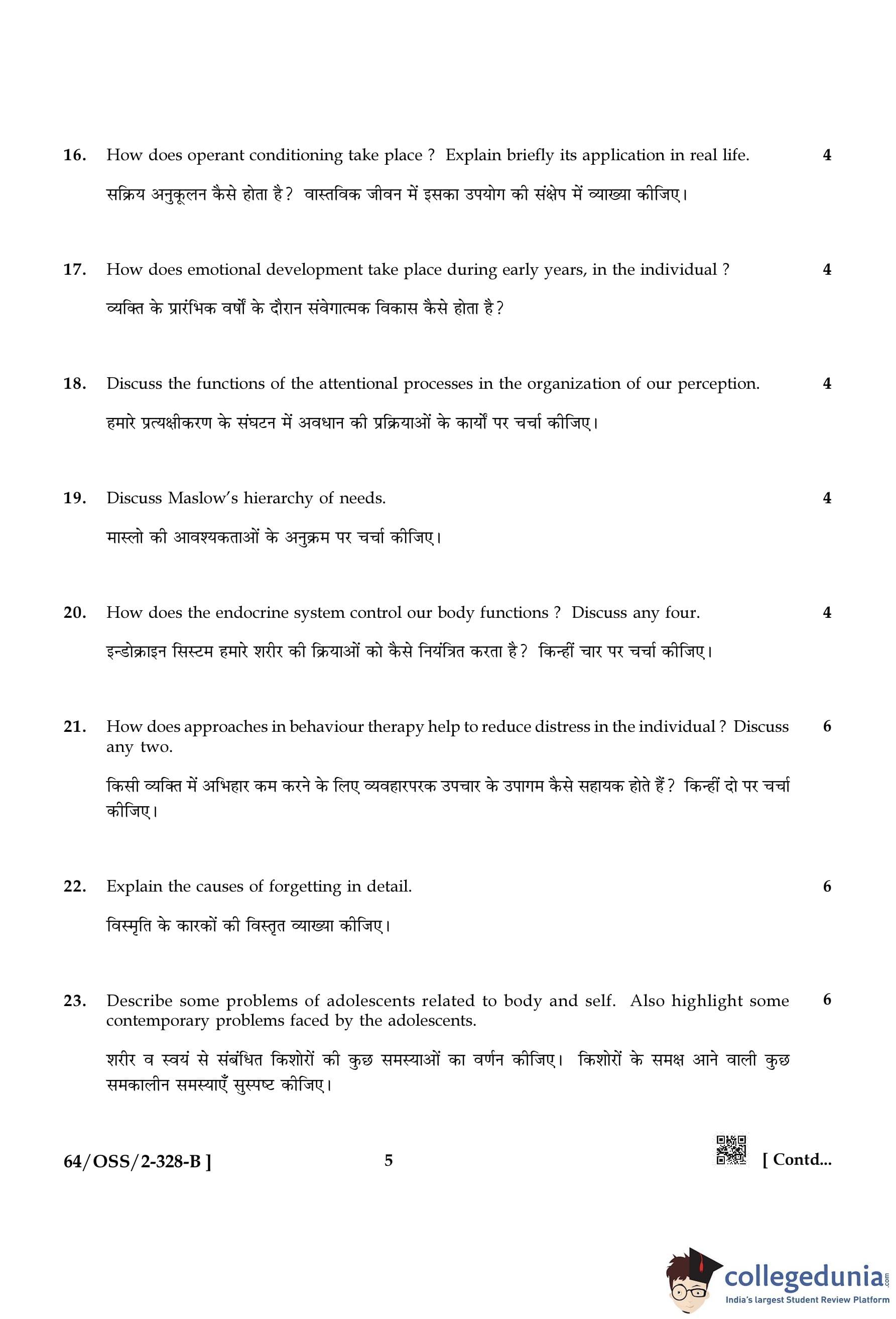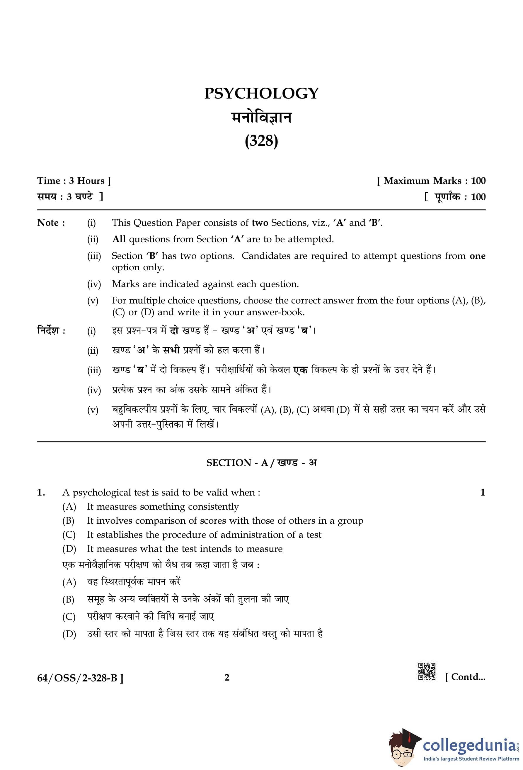 NIOS Class 12 Psychology Compartment Question Paper 2022 with Answer Key pdf (Set B) is available for download here. The exam was conducted by National Institute of Open Schooling on October 20, 2022 in the Afternoon Session 2:30 PM to 5:30 PM. The question paper comprised a total of 30 questions divided among 2 sections.