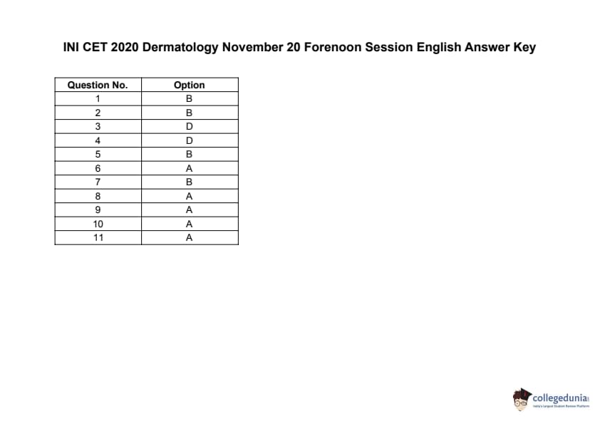 | INI CET 2020 Dermatology Question Paper PDF | INI CET 2020 Dermatology Answer Key PDF |