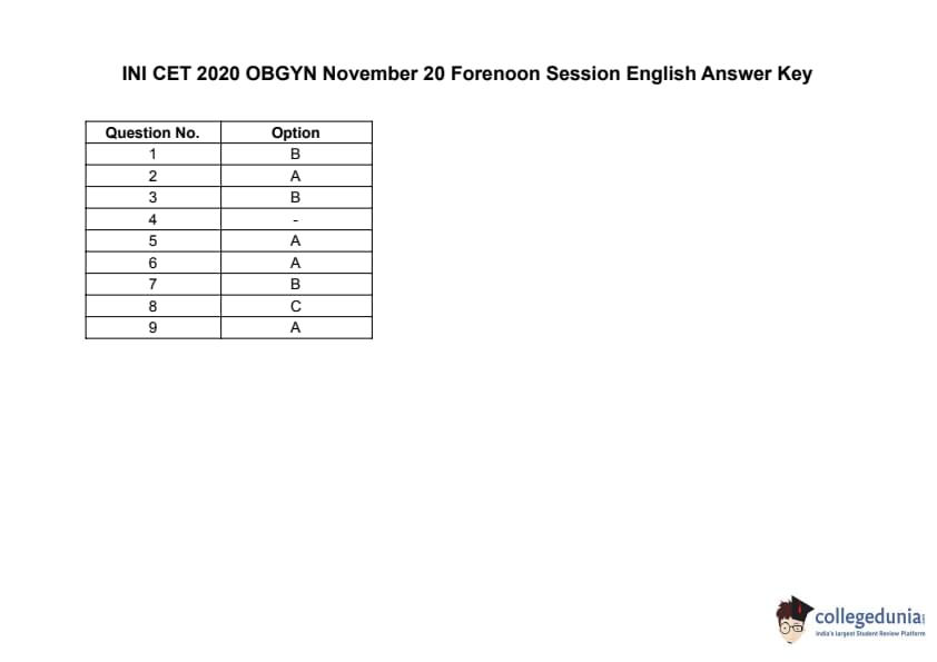 | INI CET 2020 OBGYN Question Paper PDF | INI CET 2020 OBGYN Answer Key PDF |