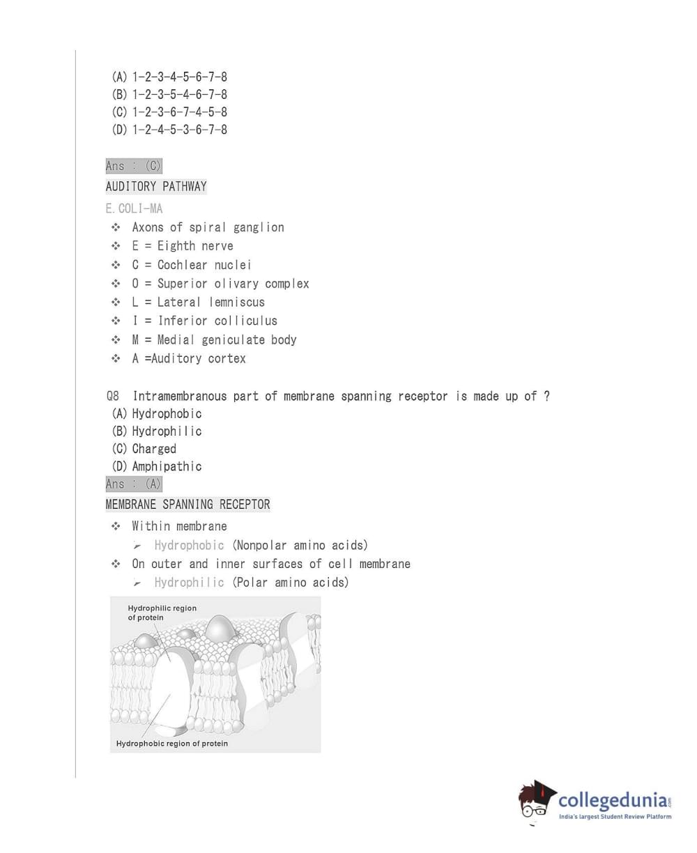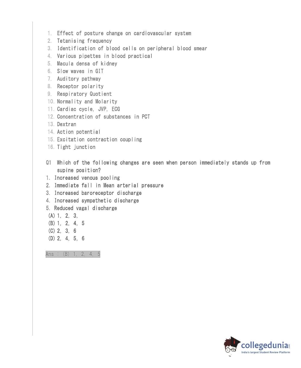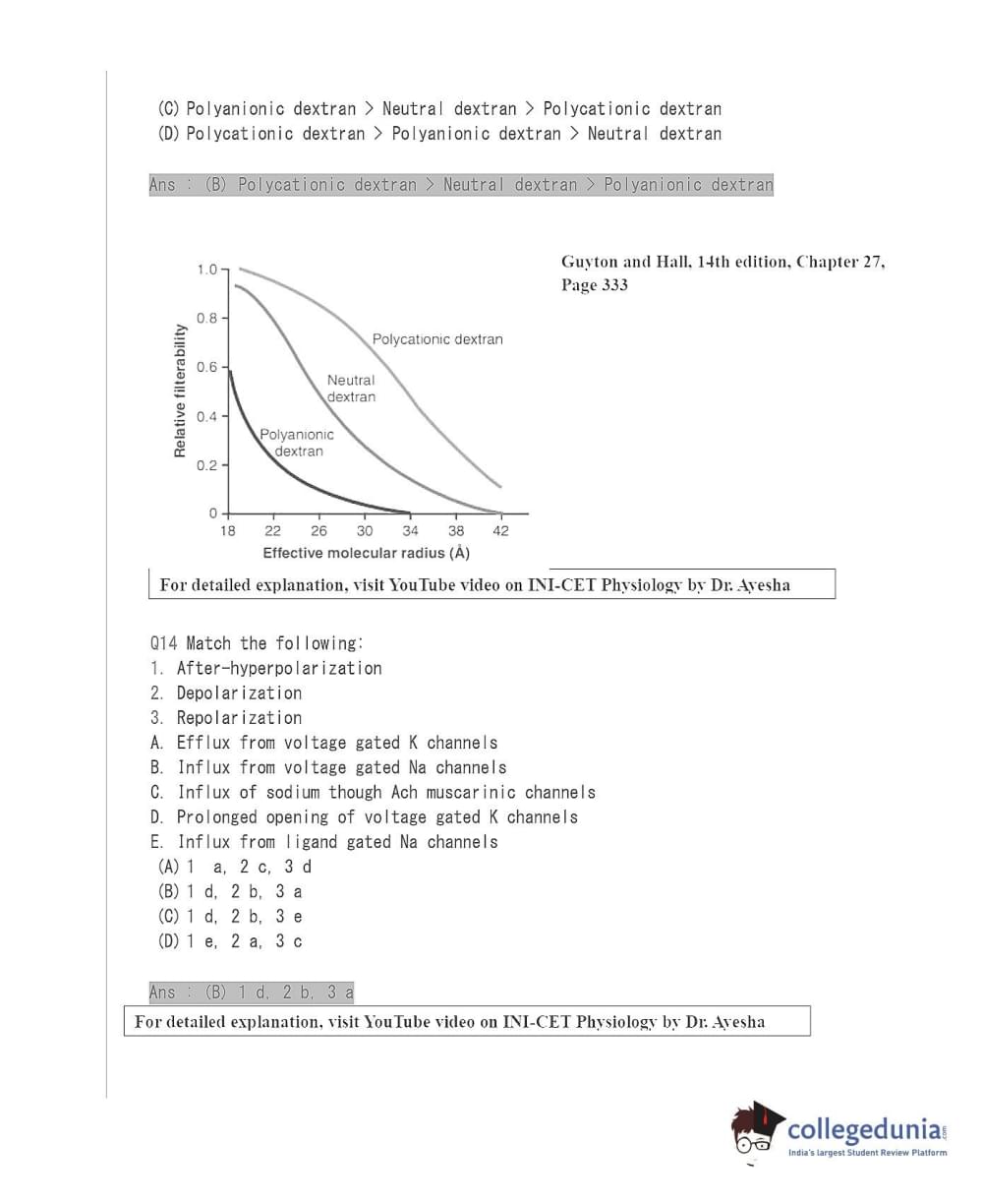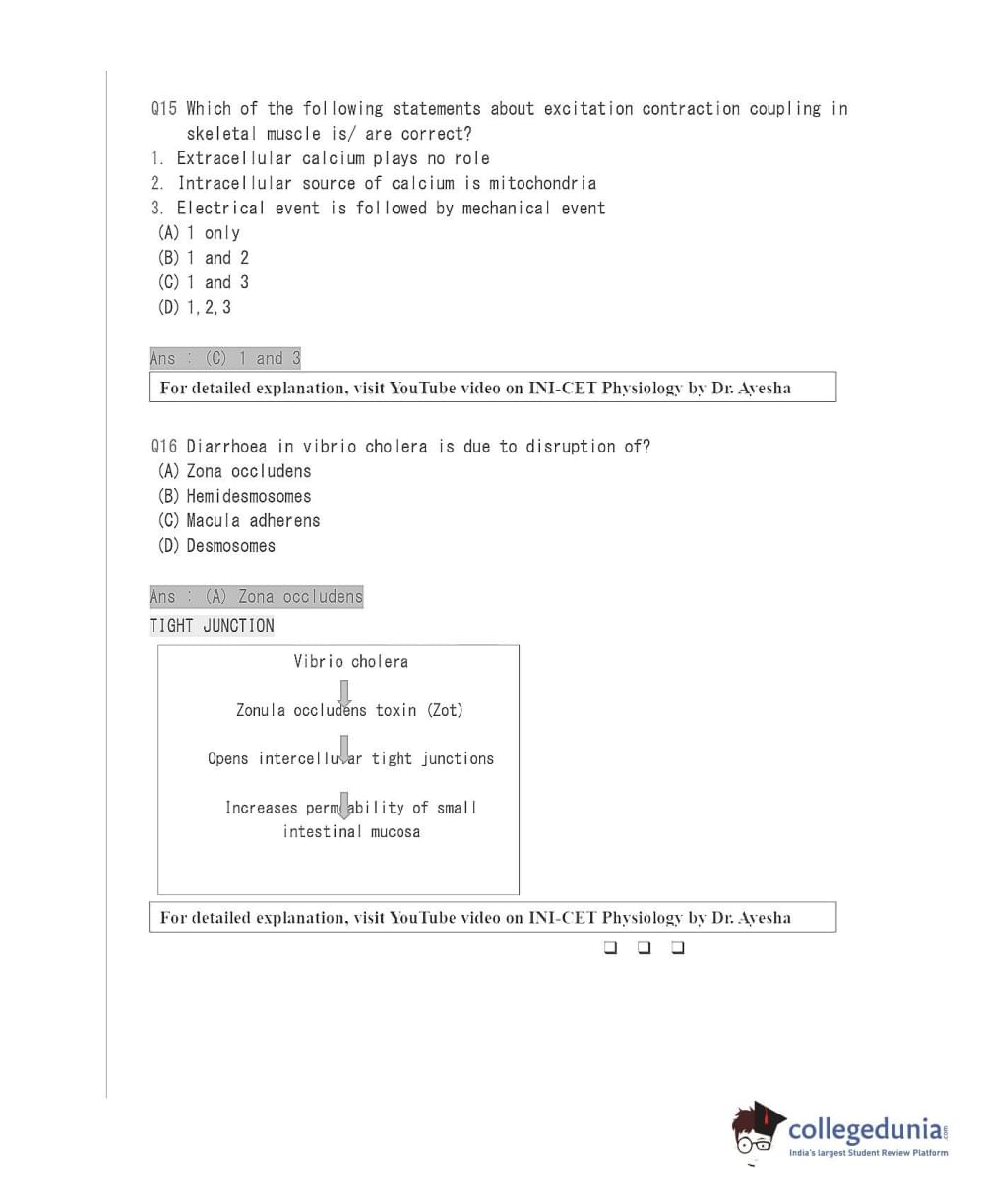 INI CET 2020 Physiology Question Paper with Answer Key PDFs Forenoon Session