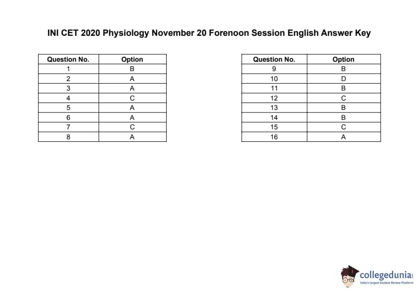 | INI CET 2020 Physiology Question Paper PDF | INI CET 2020 Physiology Answer Key PDF |