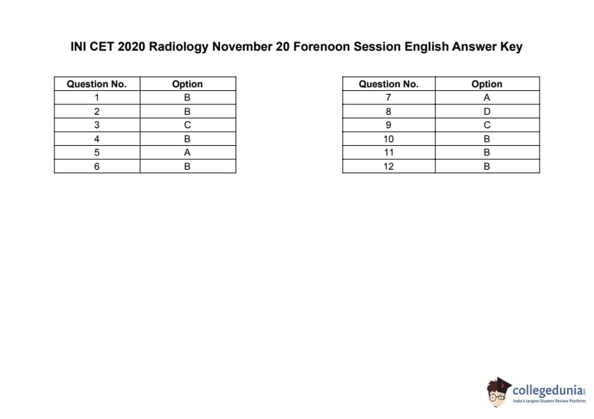 | INI CET 2020 Radiology Question Paper PDF | INI CET 2020 Radiology Answer Key PDF |