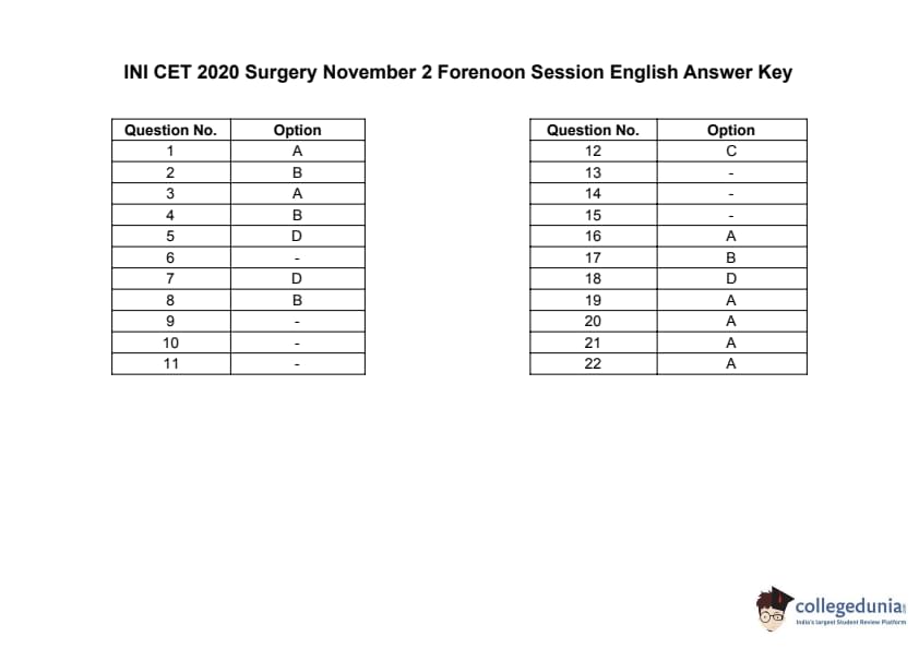 | INI CET 2020 Surgery Question Paper PDF | INI CET 2020 Surgery Answer Key PDF |