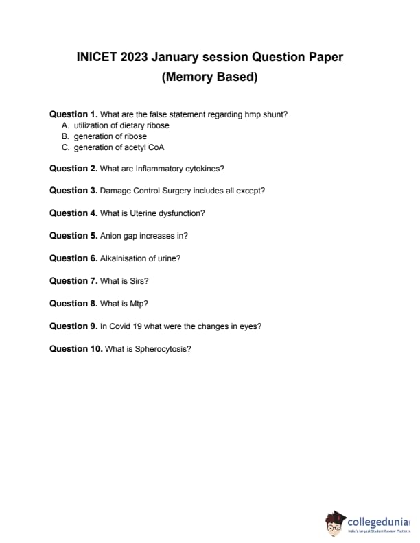 | INI CET 2023 Question Paper | INI CET 2023 Answer Key |