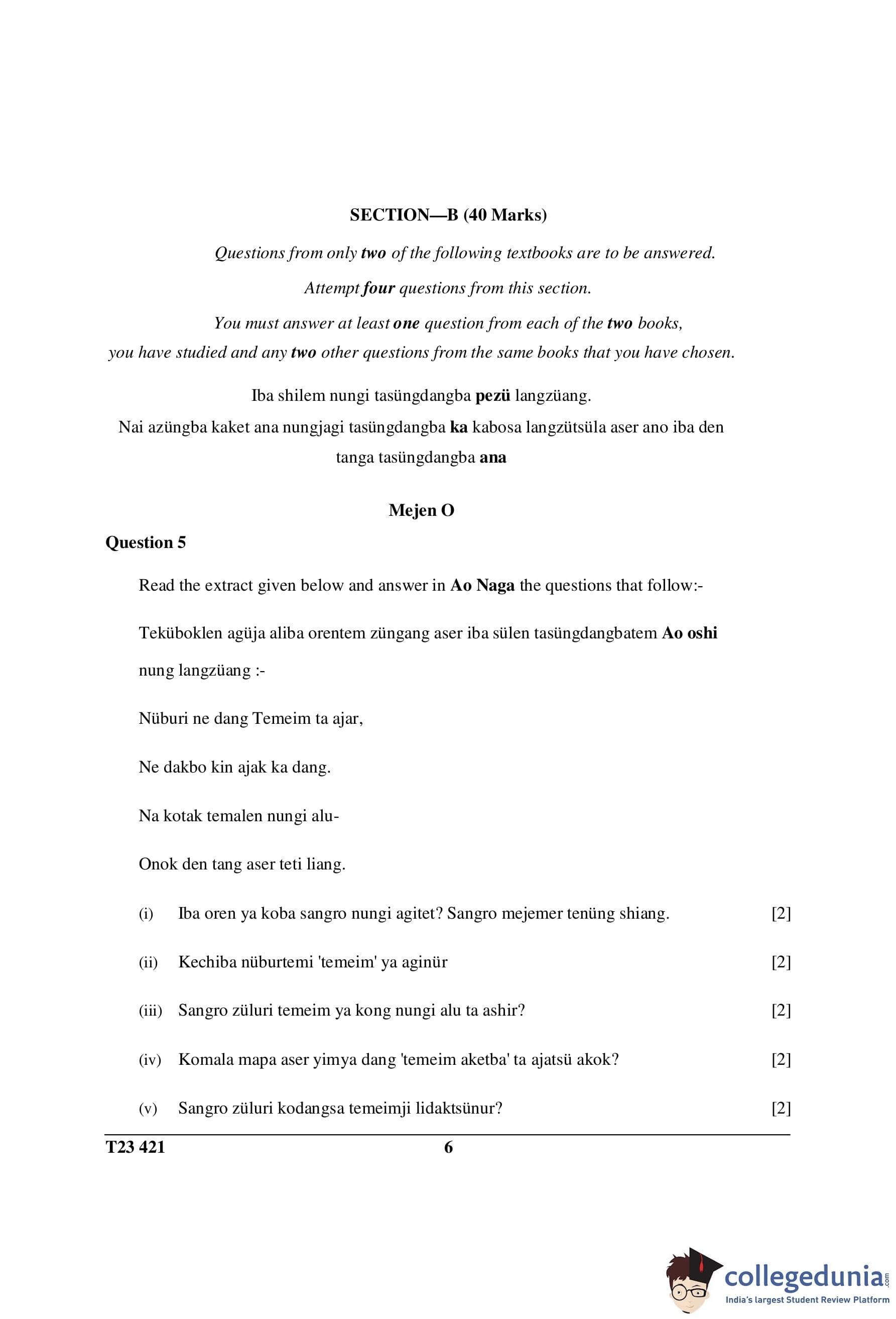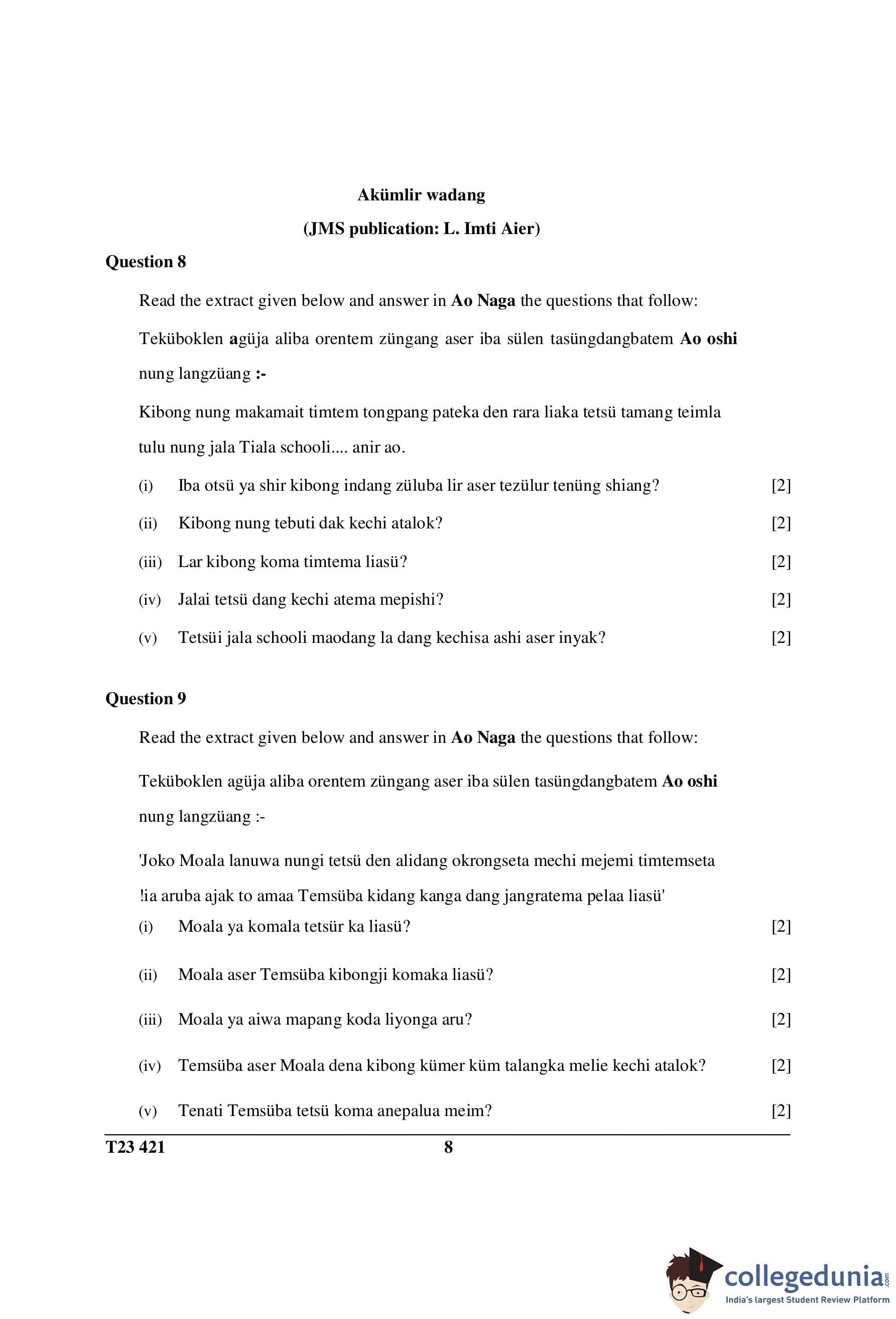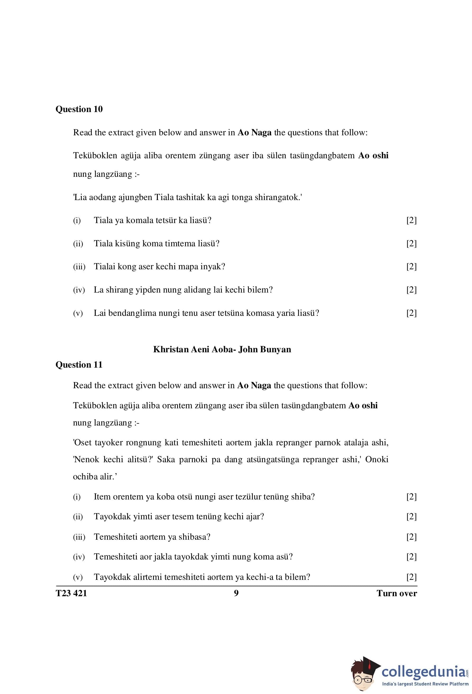 ICSE Class 10 Ao Naga Question Paper 2023 with Answer Key
