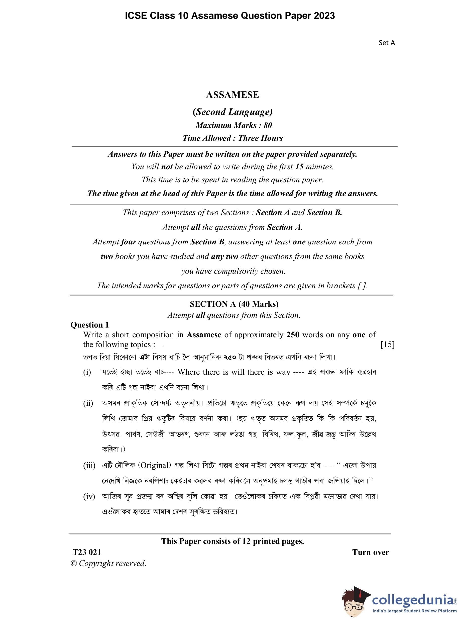 | ICSE Class 10 Assamese Question Paper 2023 PDF | ICSE Class 10 Assamese Answer Key 2023 PDF |