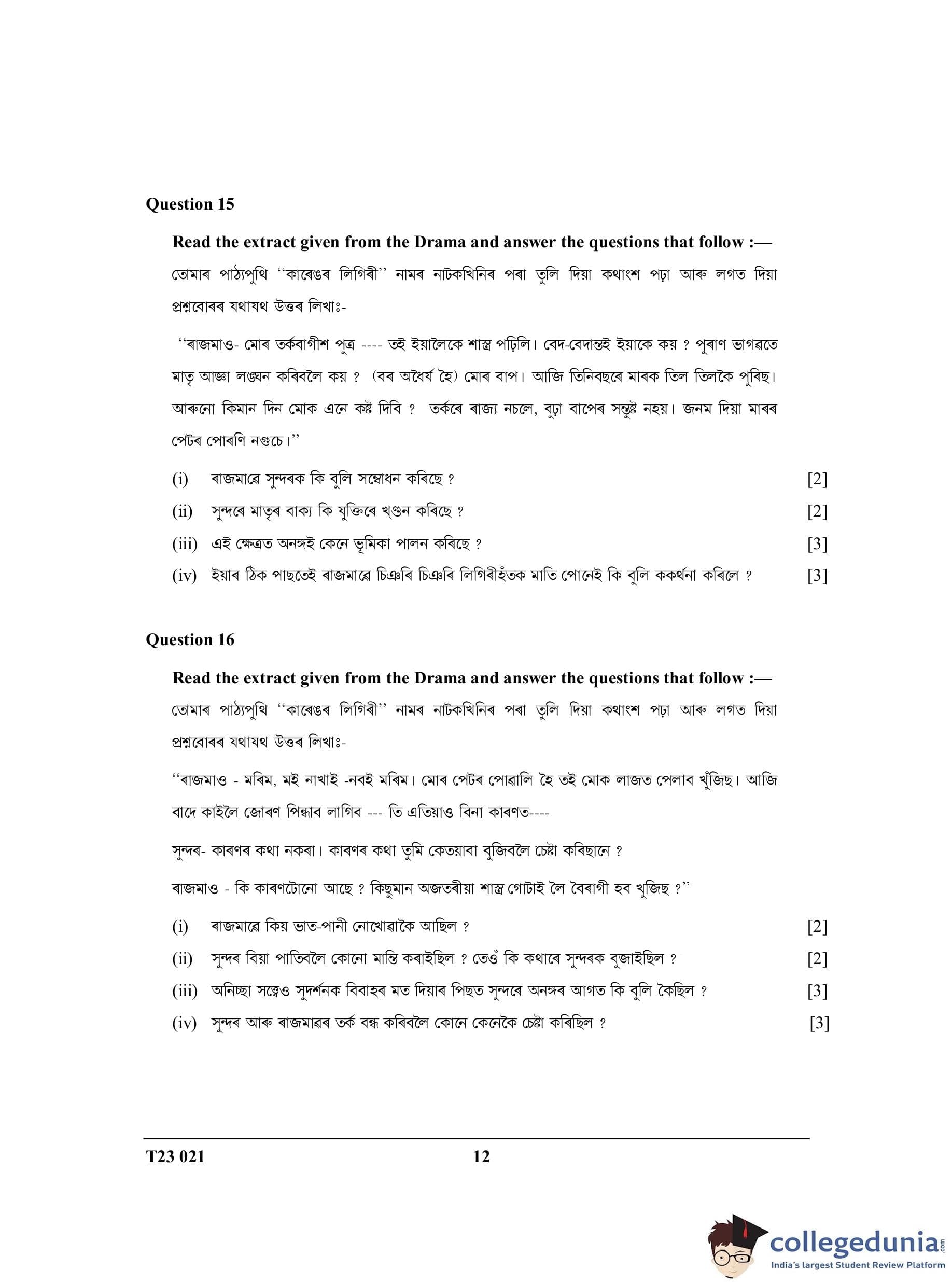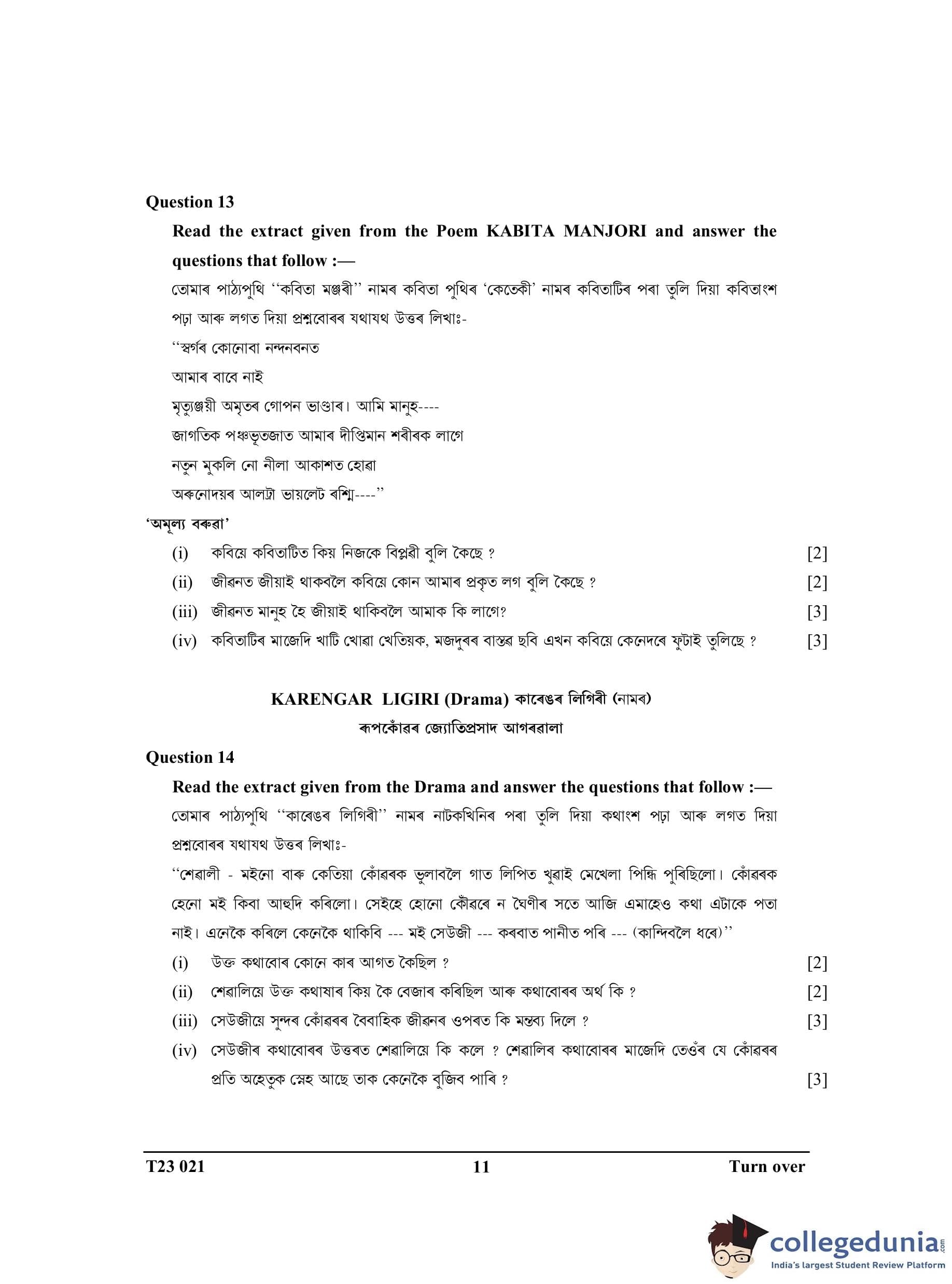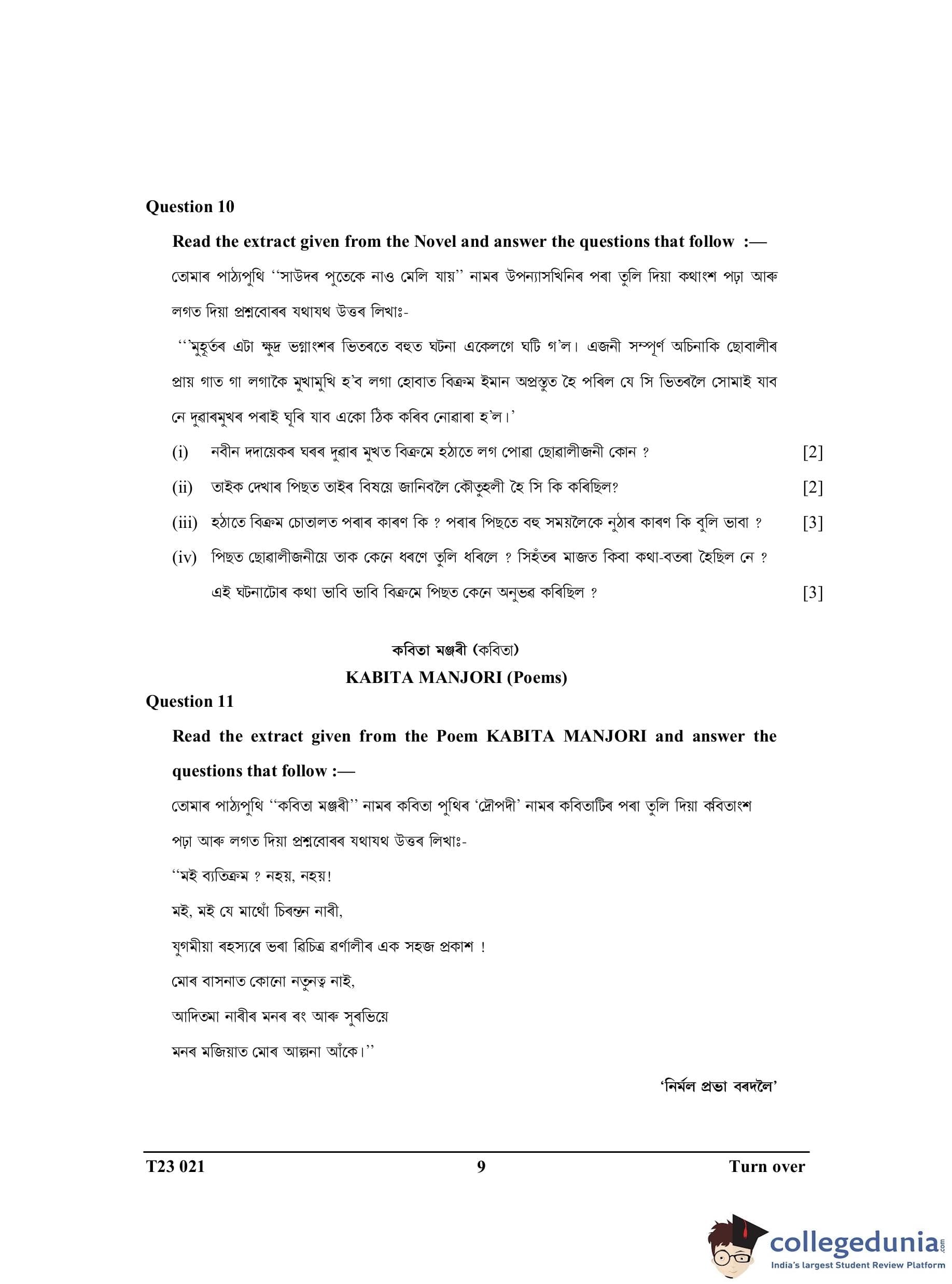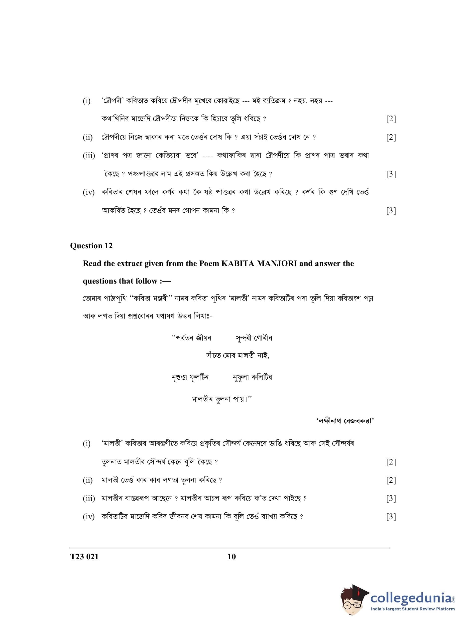 ICSE Class 10 Assamese Question Paper 2023 with Answer Key