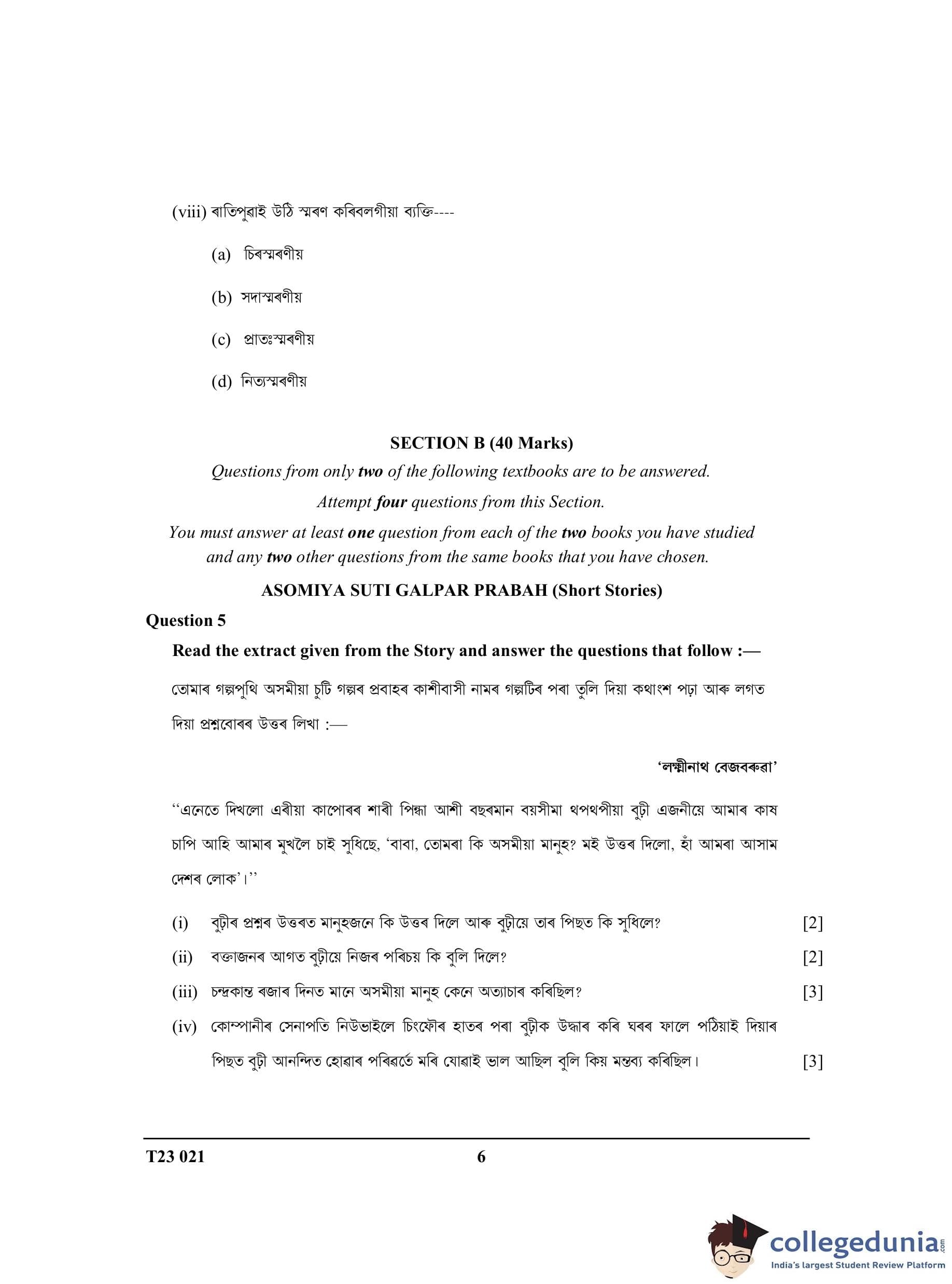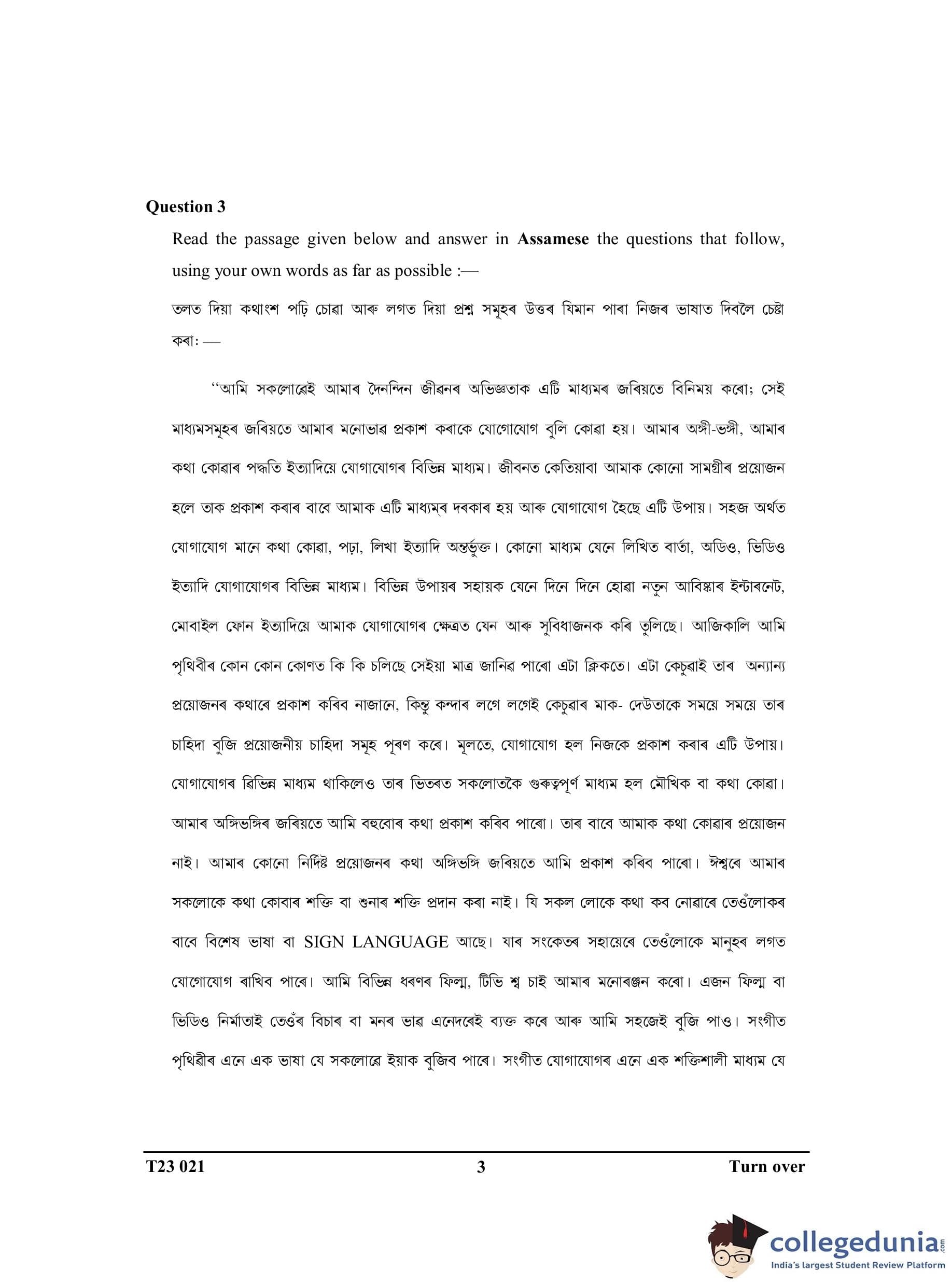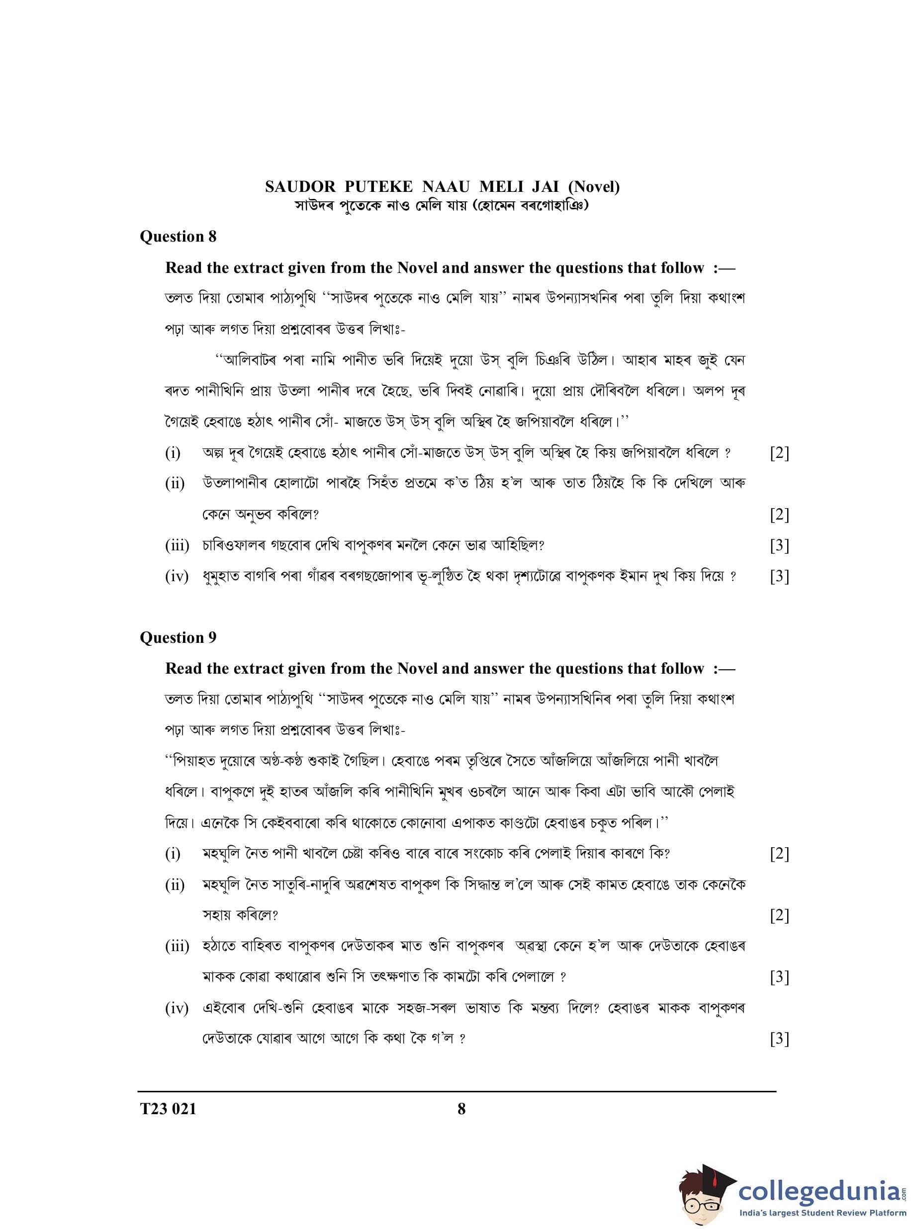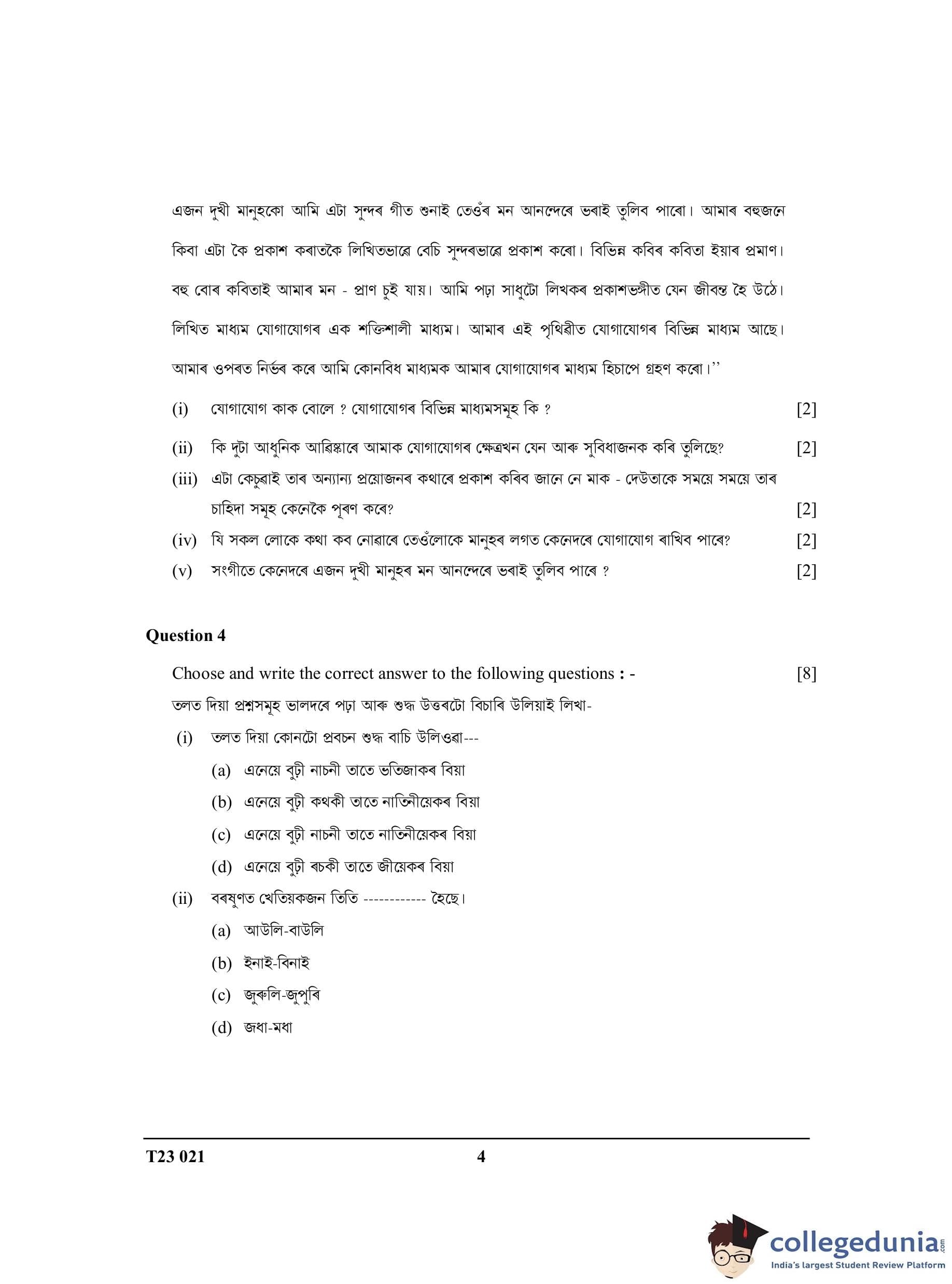 ICSE Class 10 Assamese Question Paper 2023 with Answer Key