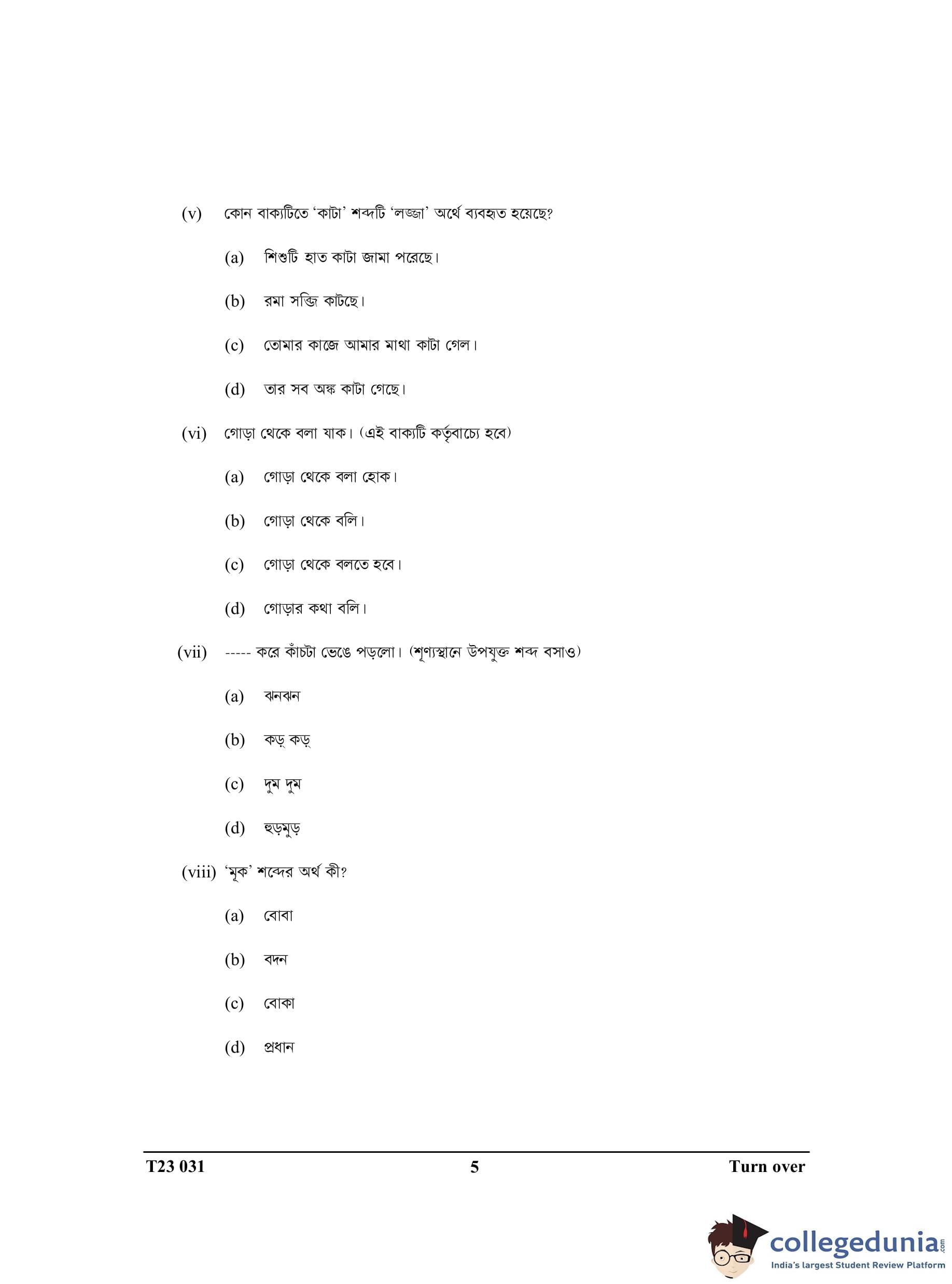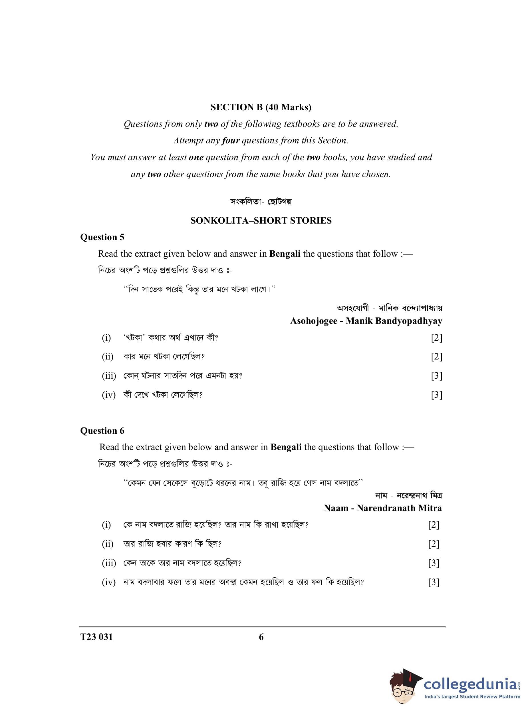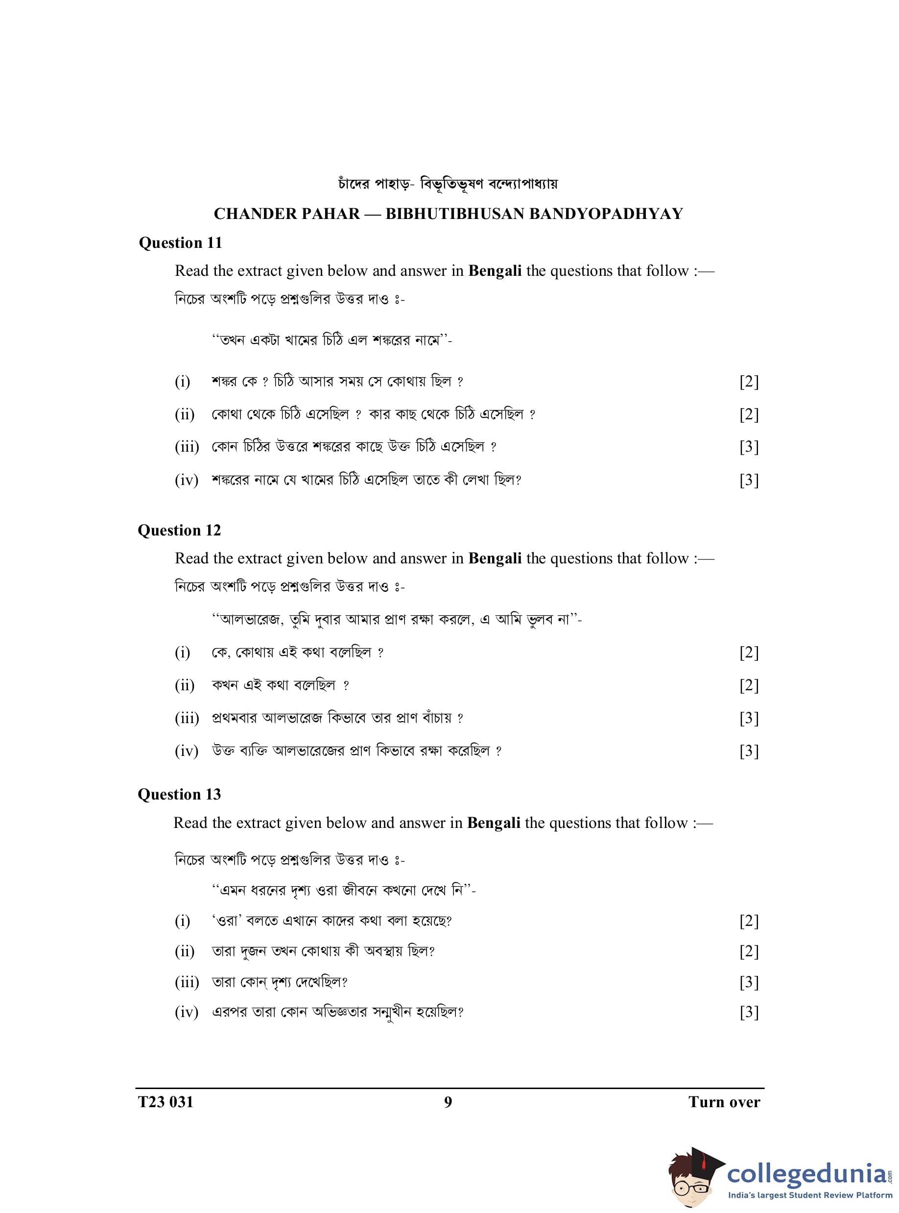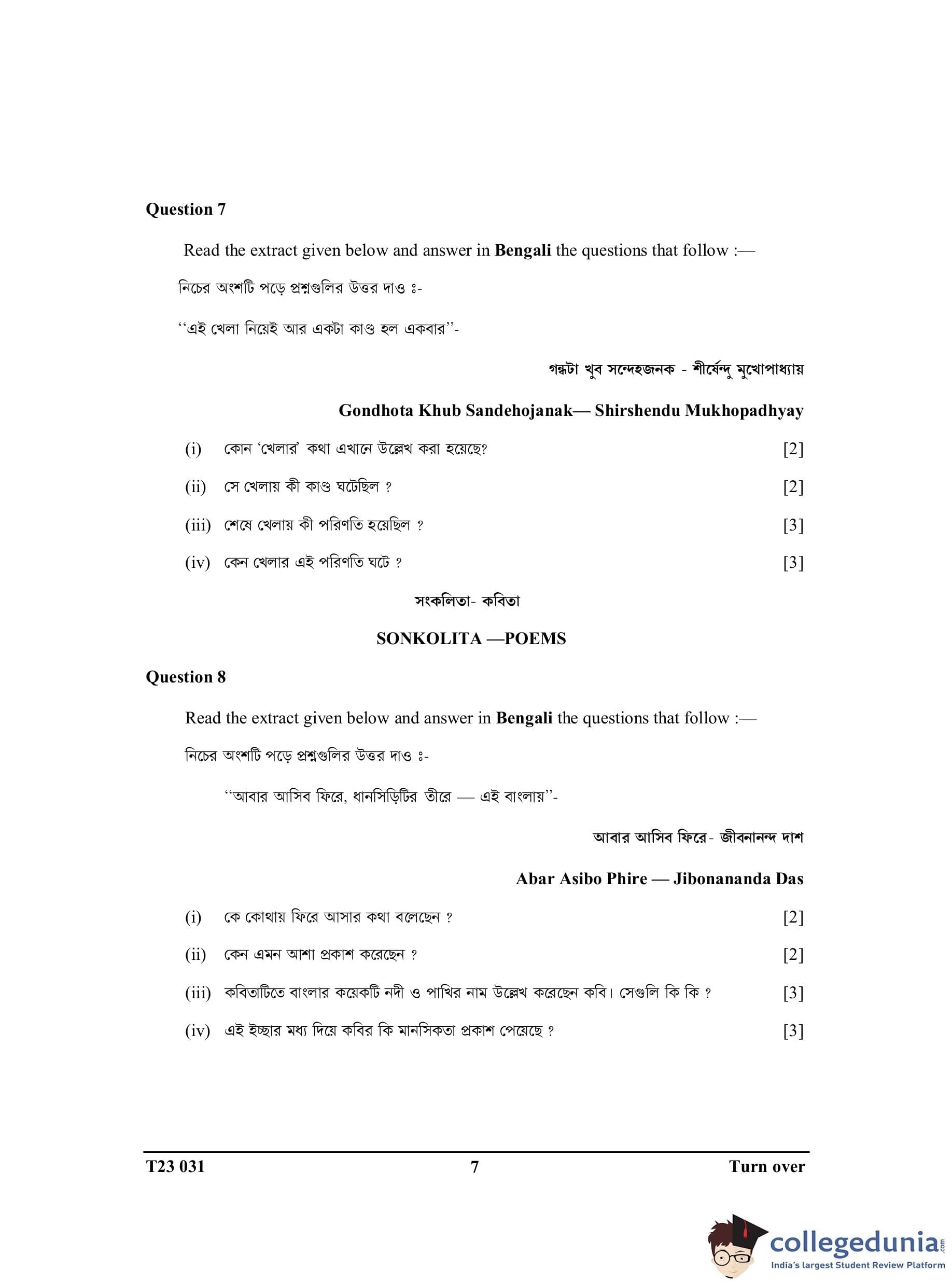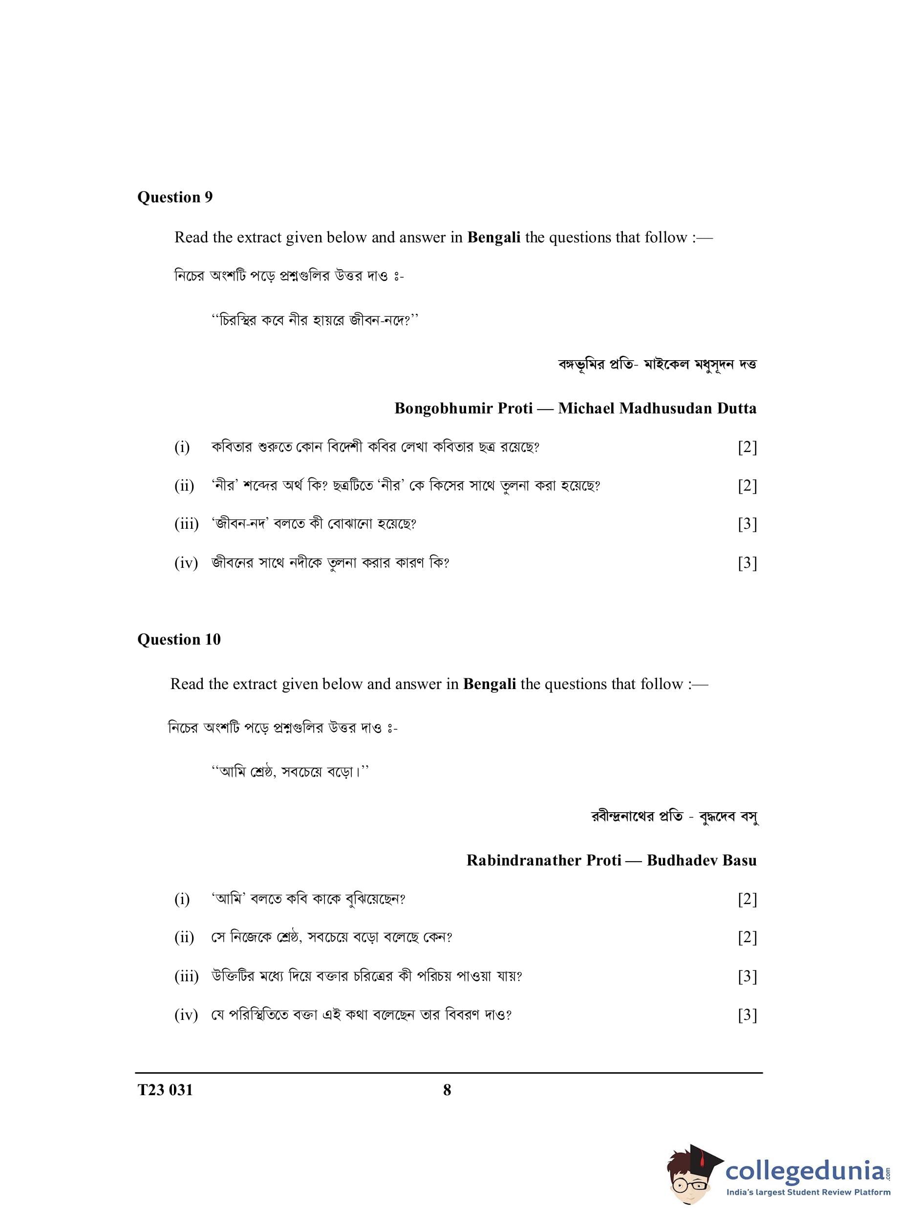 ICSE Class 10 Bengali Question Paper 2023 with Answer Key