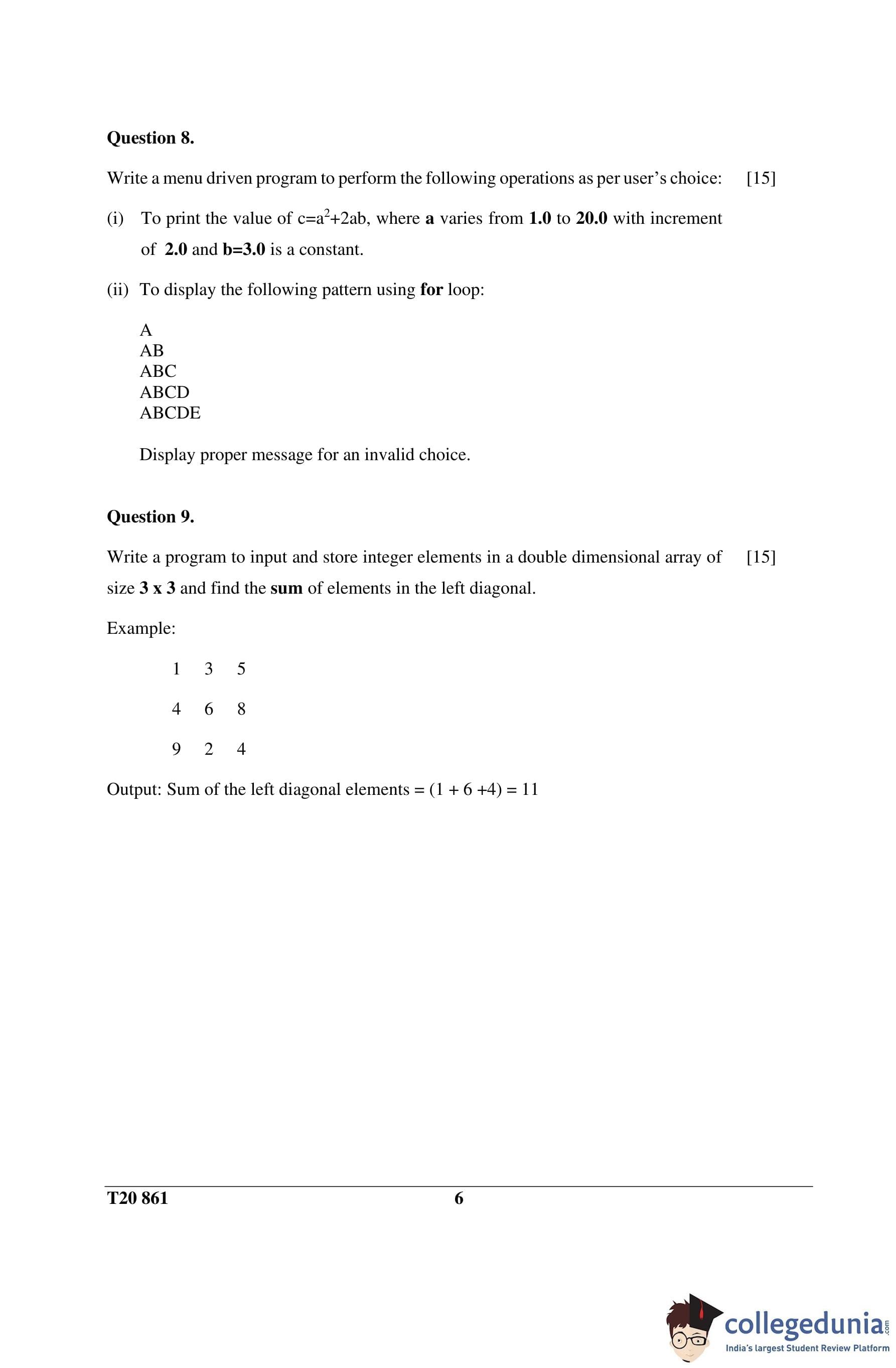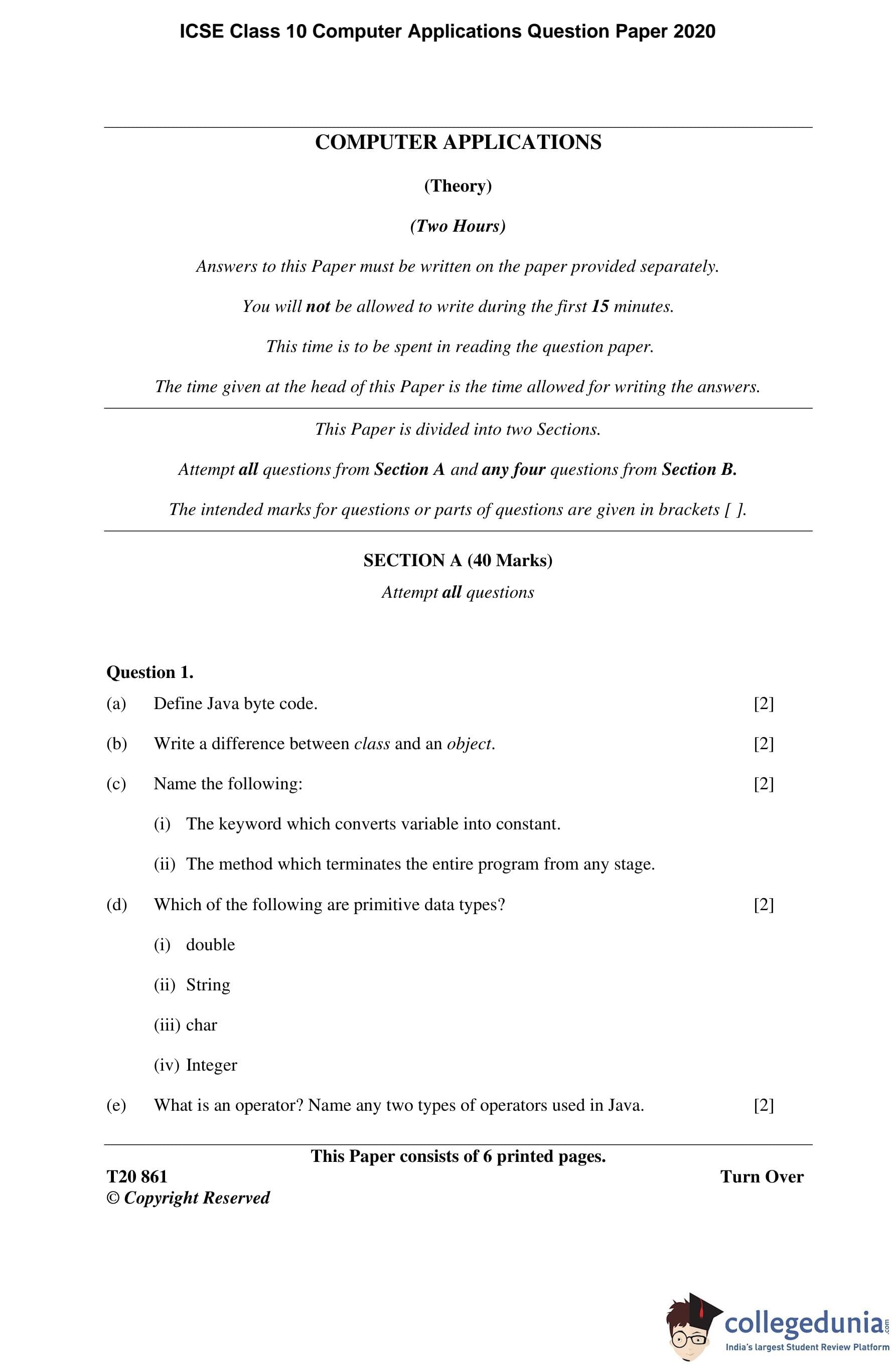 ICSE Class 10 Computer Applications Question Paper 2020 with Answer Key