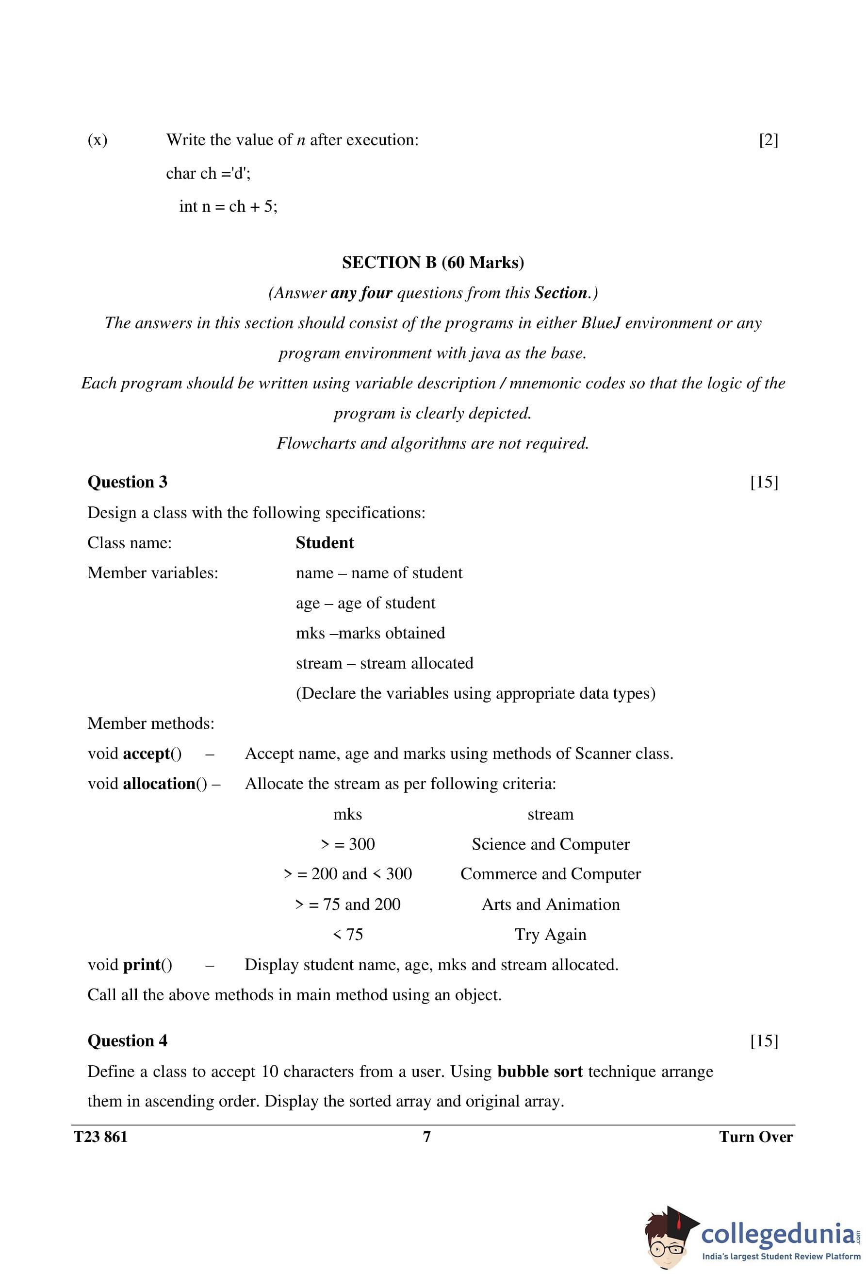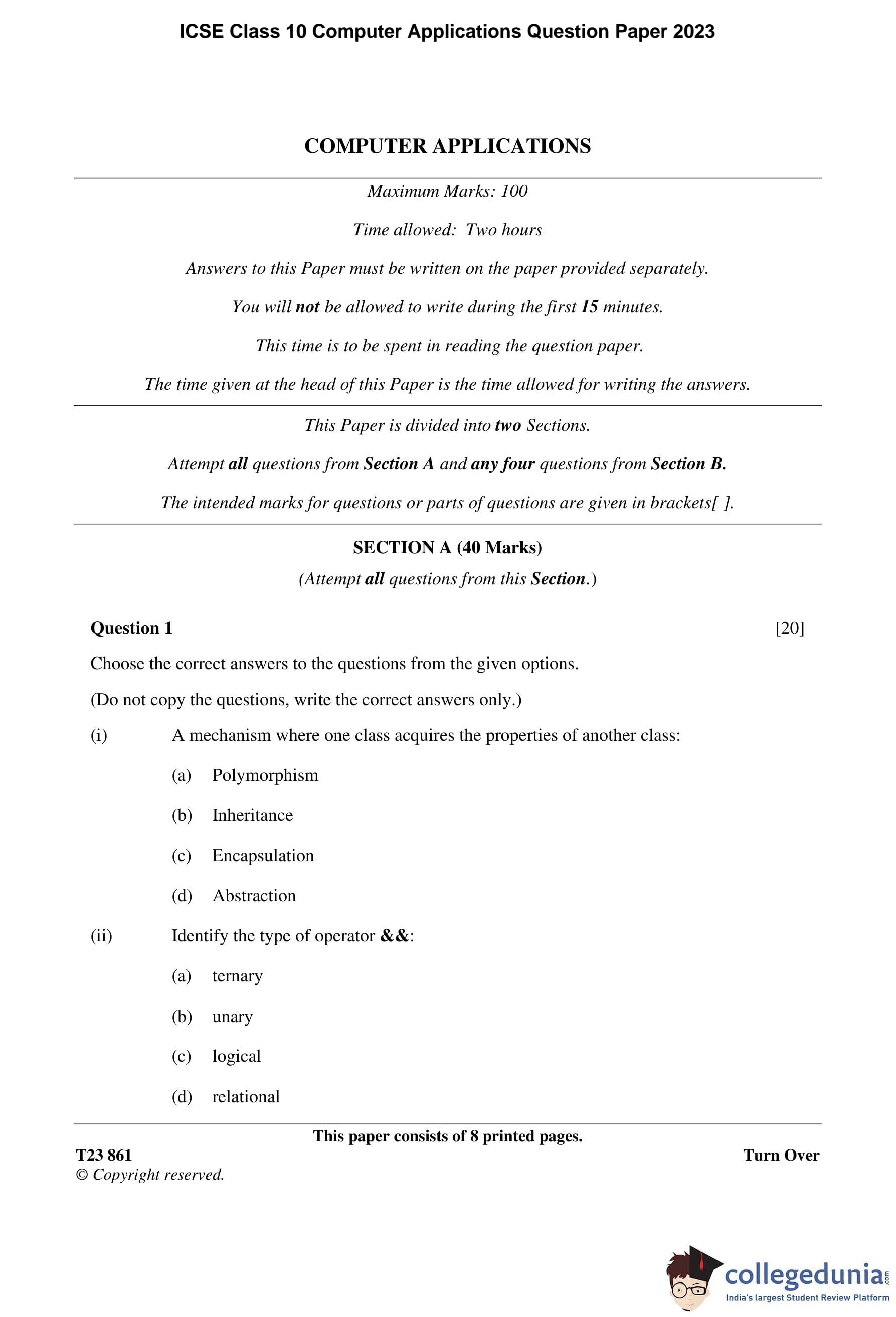 ICSE Class 10 Computer Applications Question Paper 2023 with Answer Key