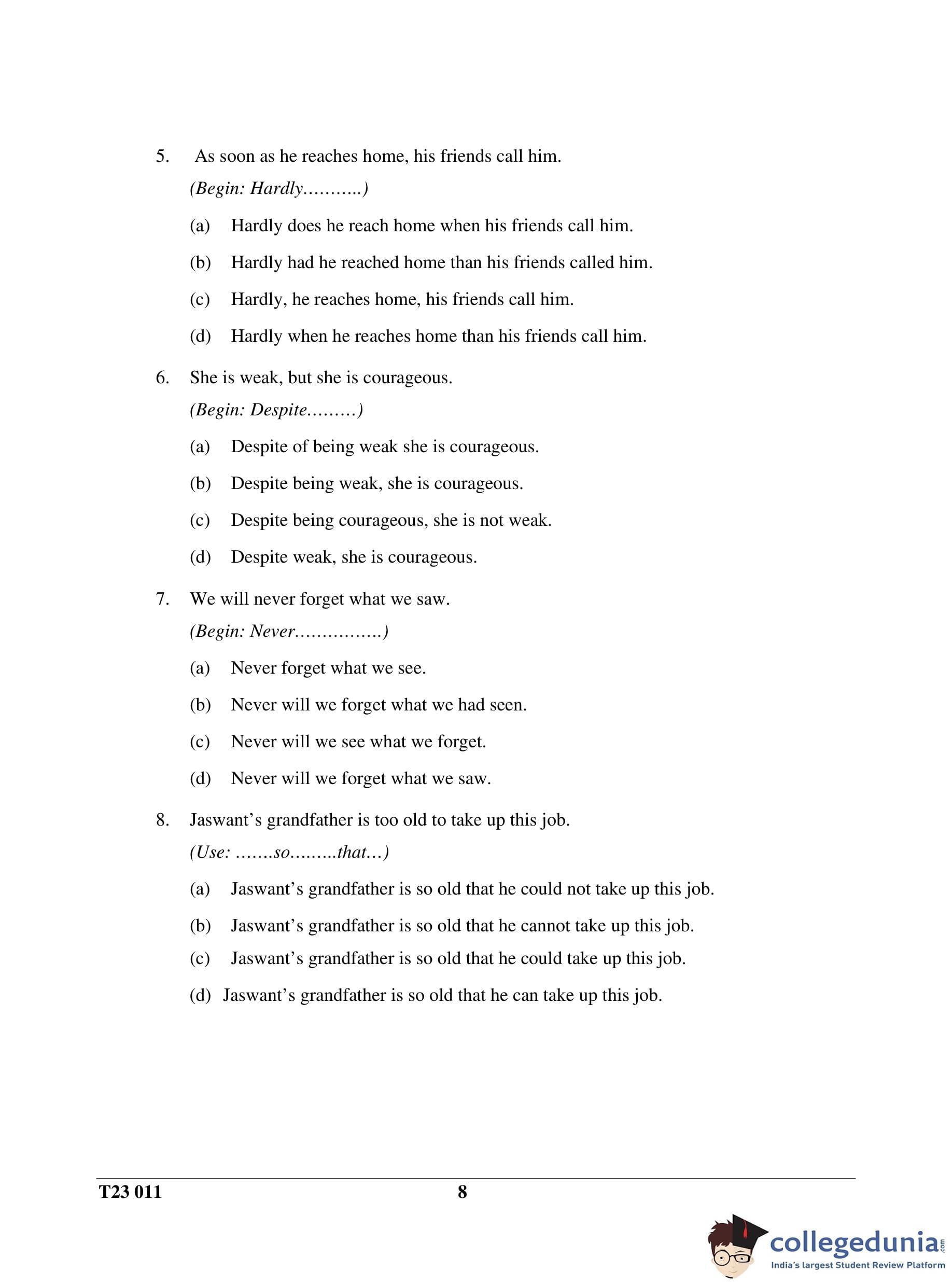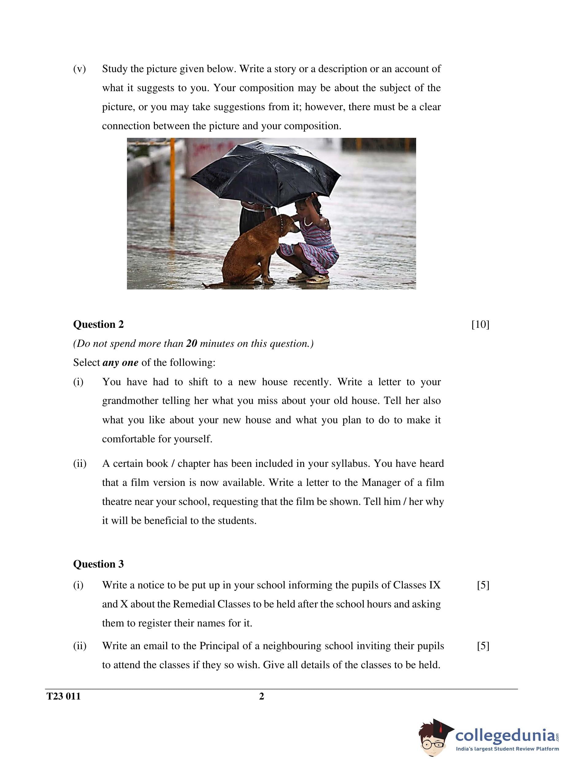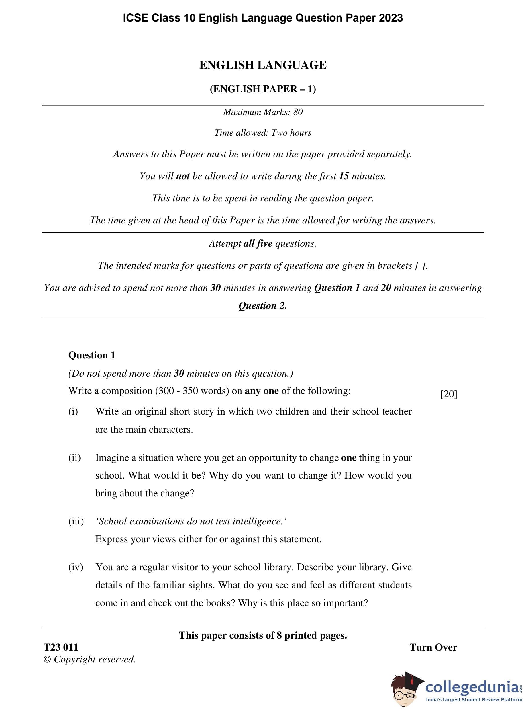 ICSE Class 10 English Language Question Paper 2023 with Answer Key pdf is available for download here. The exam was conducted by Council for the Indian School Certificate Examinations (CISCE) on February 27, 2023 in the Morning Session 11 AM to 1 PM. In terms of difficulty level, ICSE Class 10 English Language was Moderate. The question paper comprised a total of 5 questions.