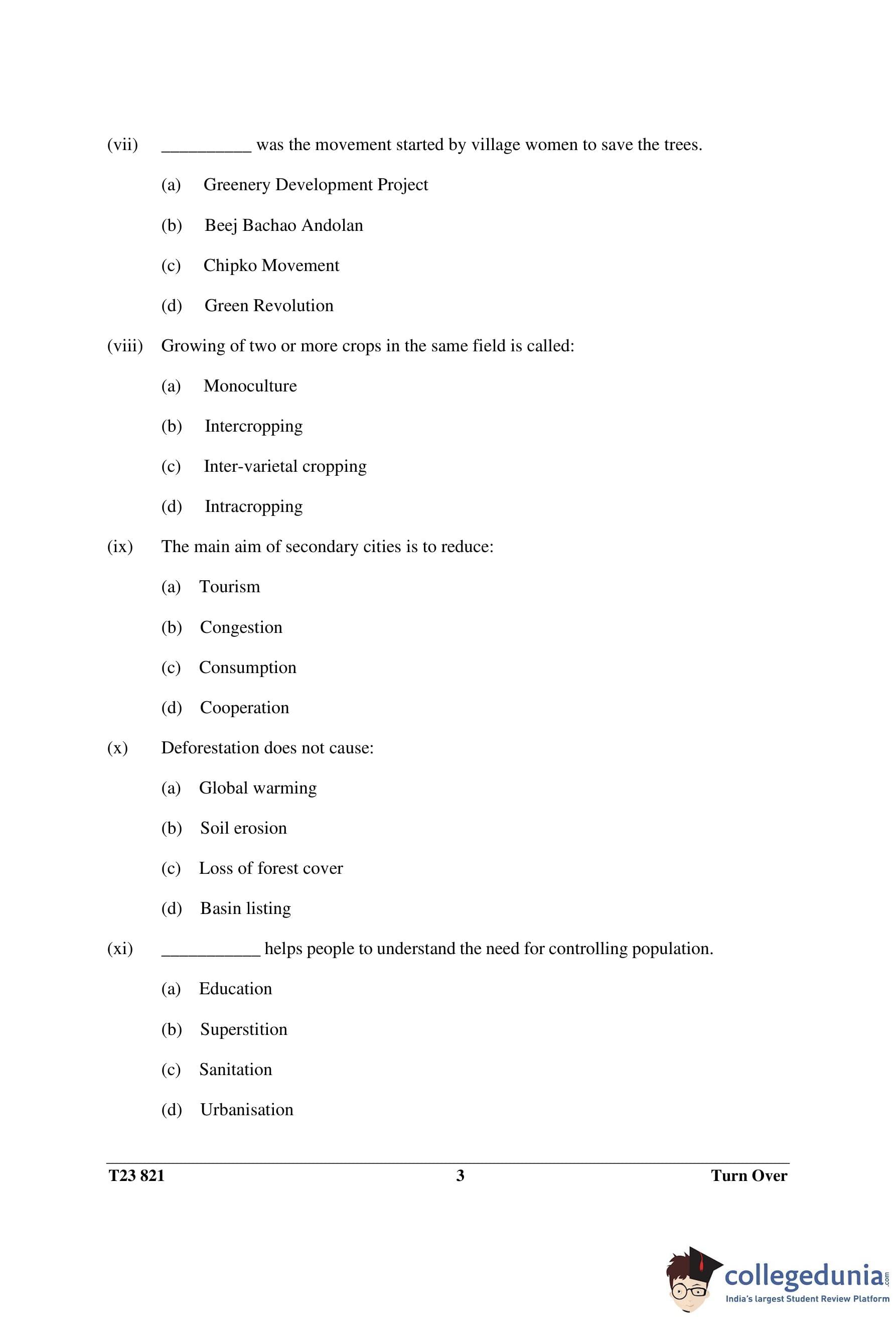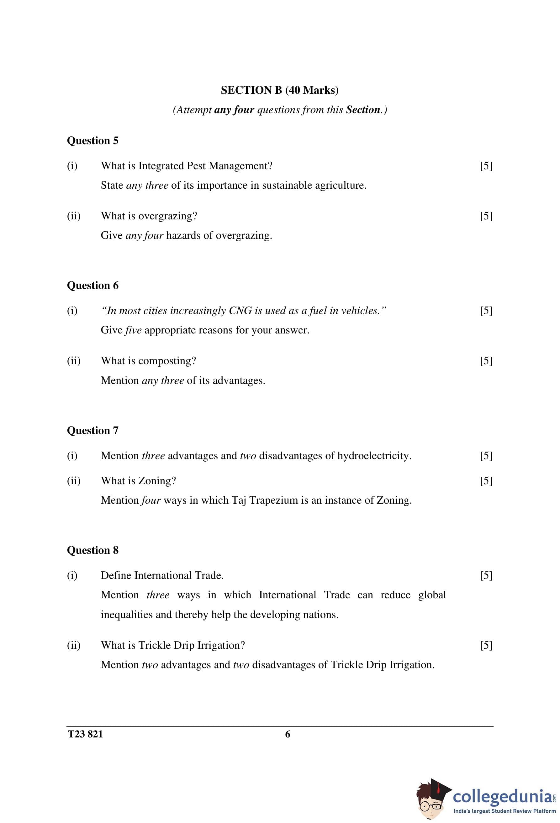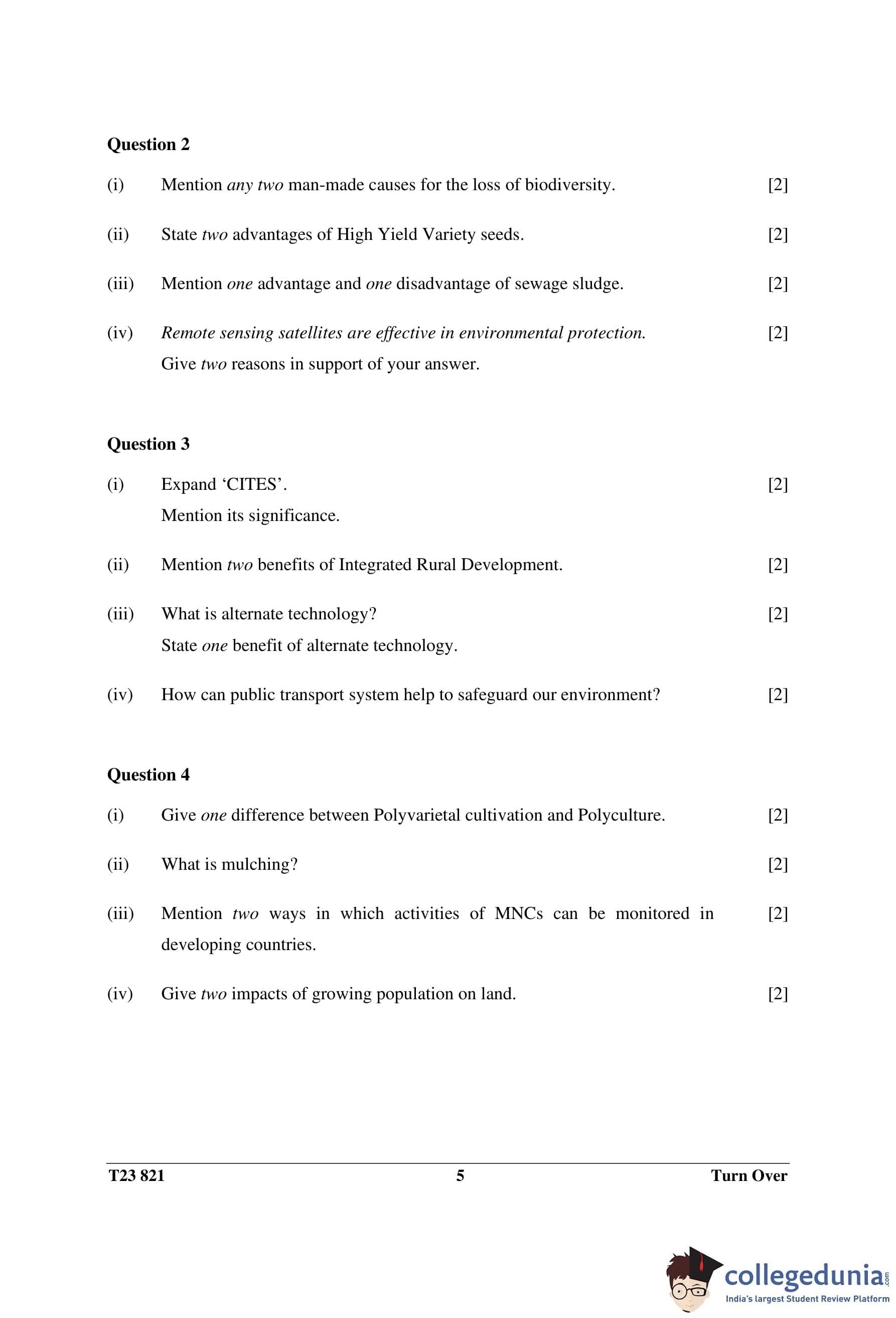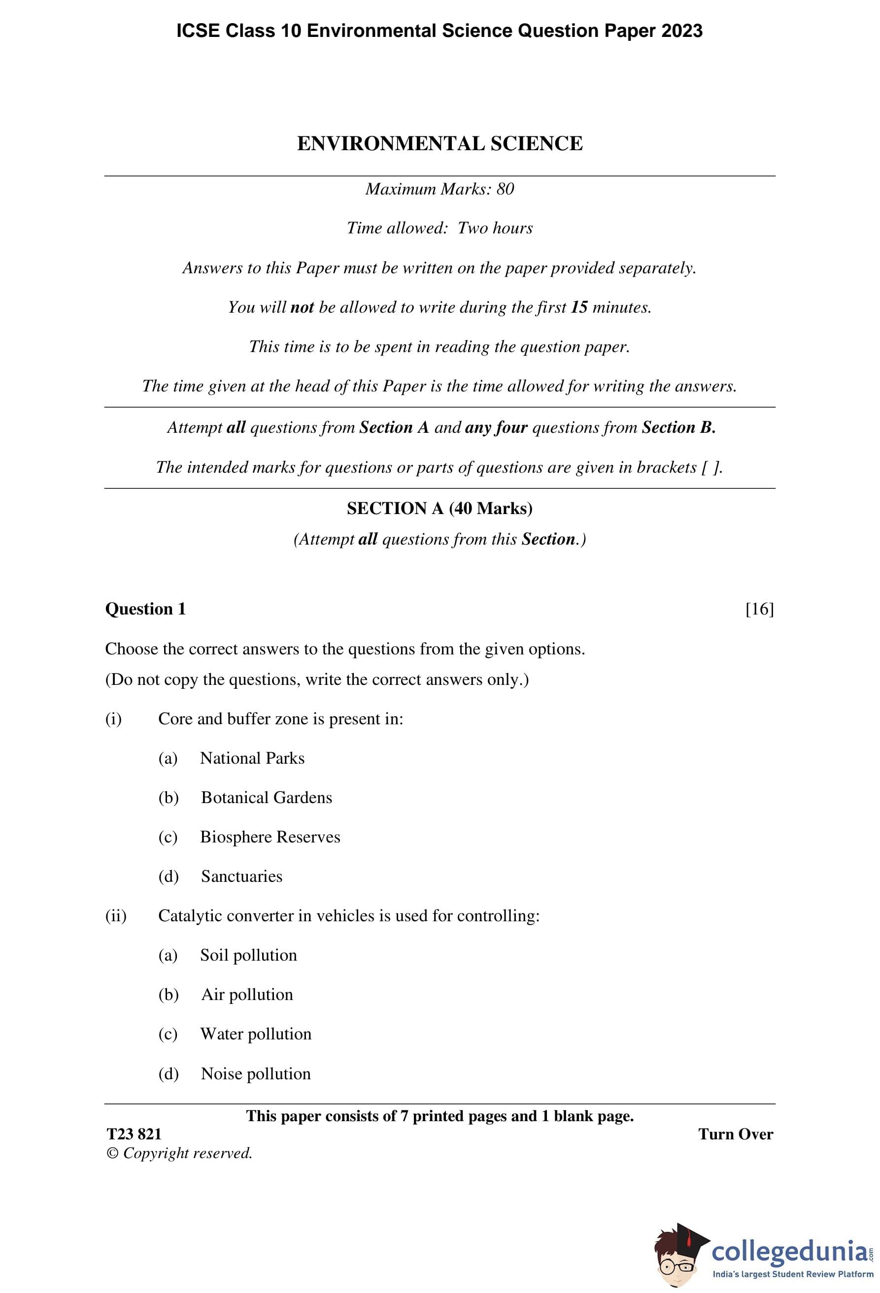 ICSE Class 10 Environmental Science Question Paper 2023 with Answer Key