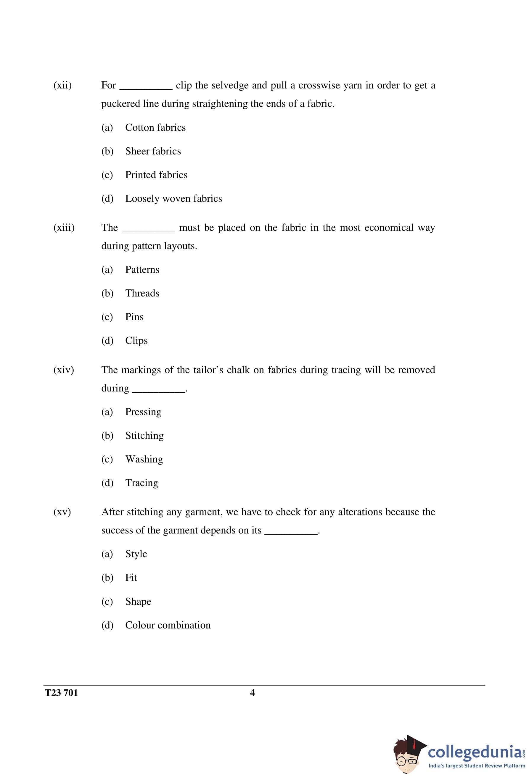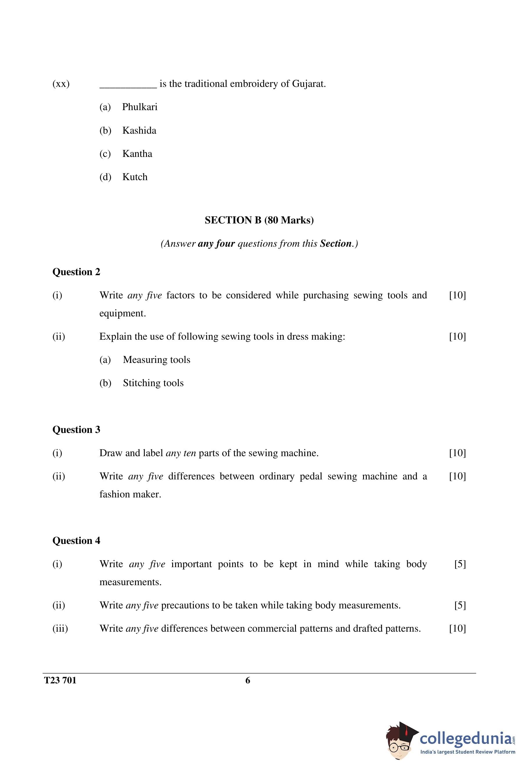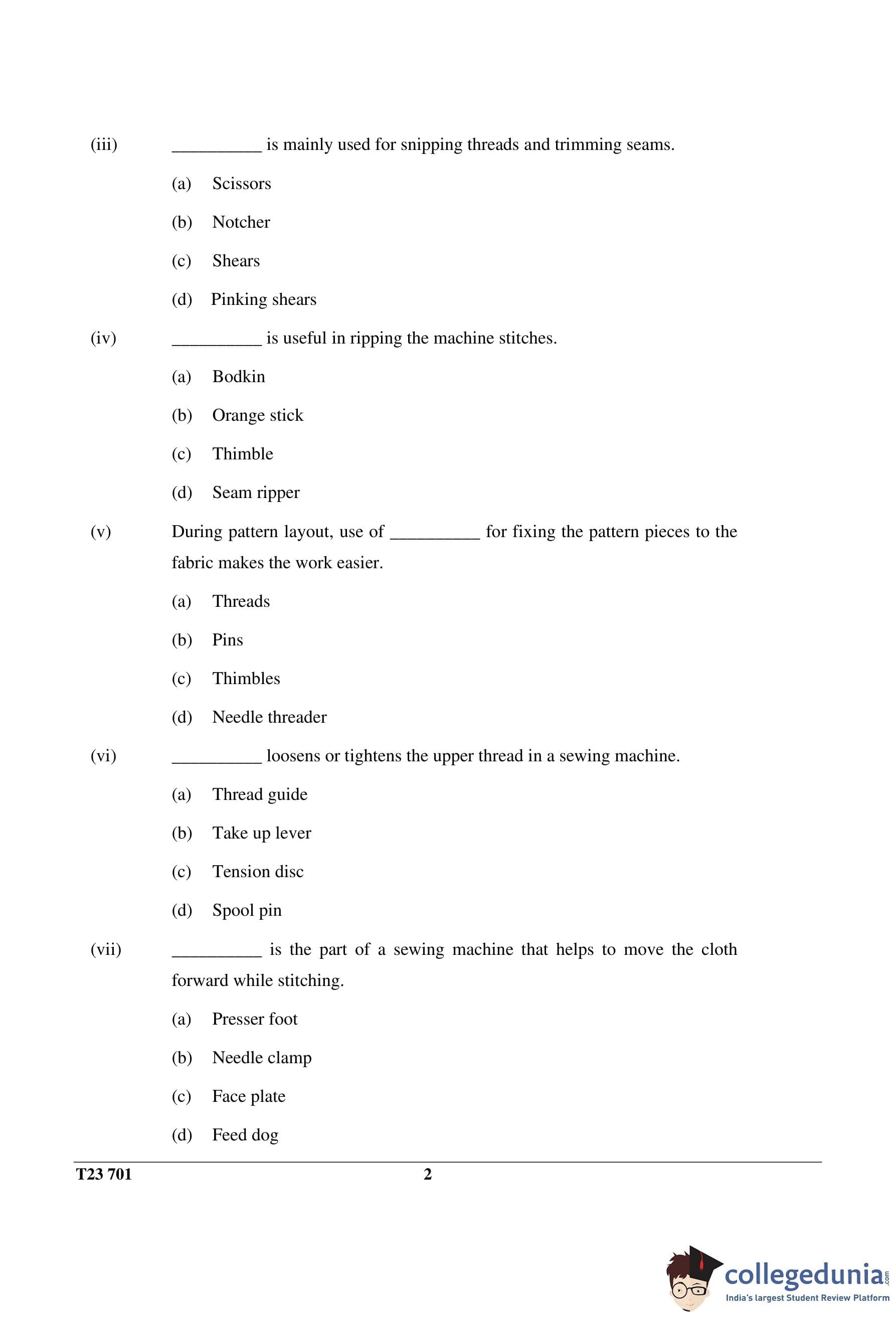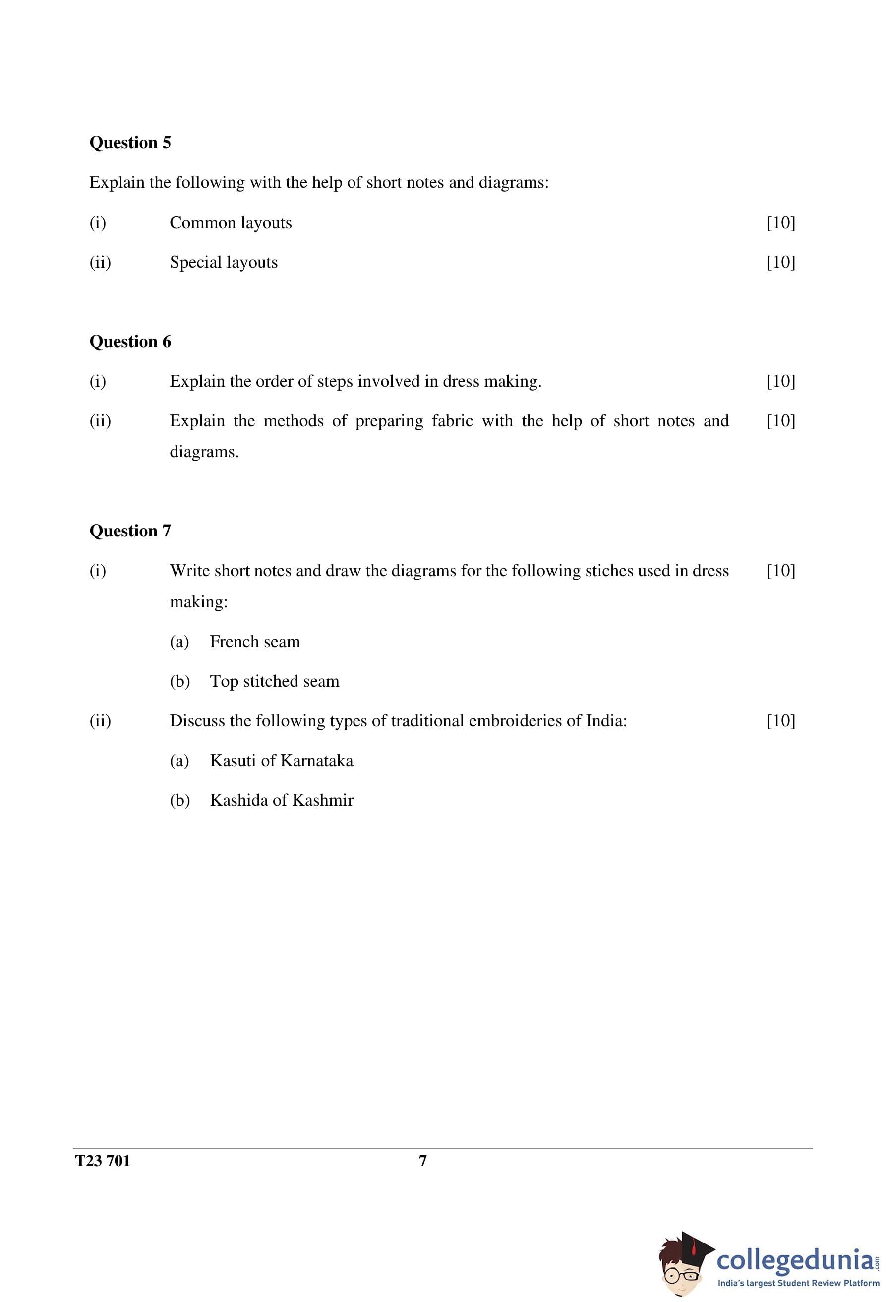 ICSE Class 10 Fashion Designing Question Paper 2023 with Answer Key