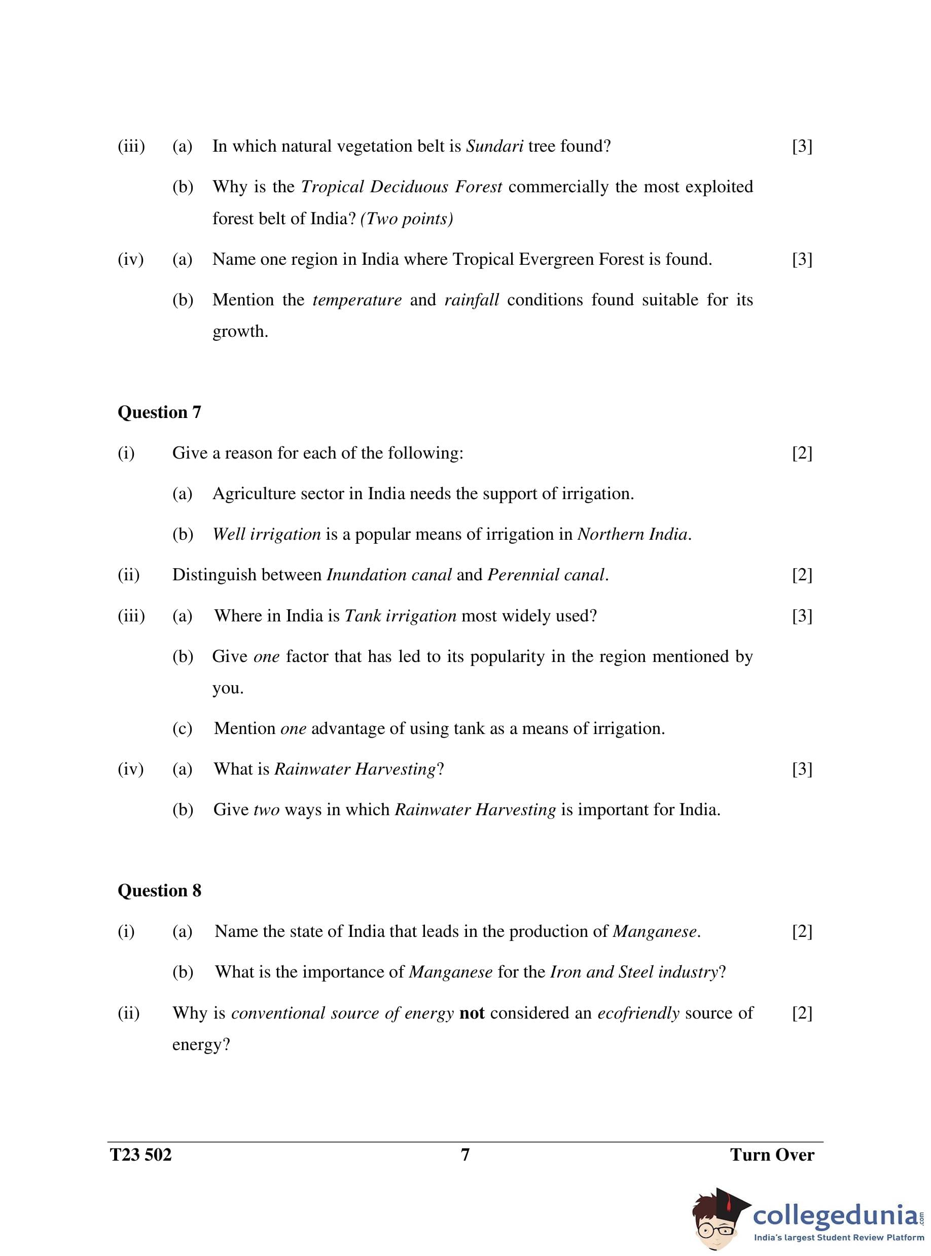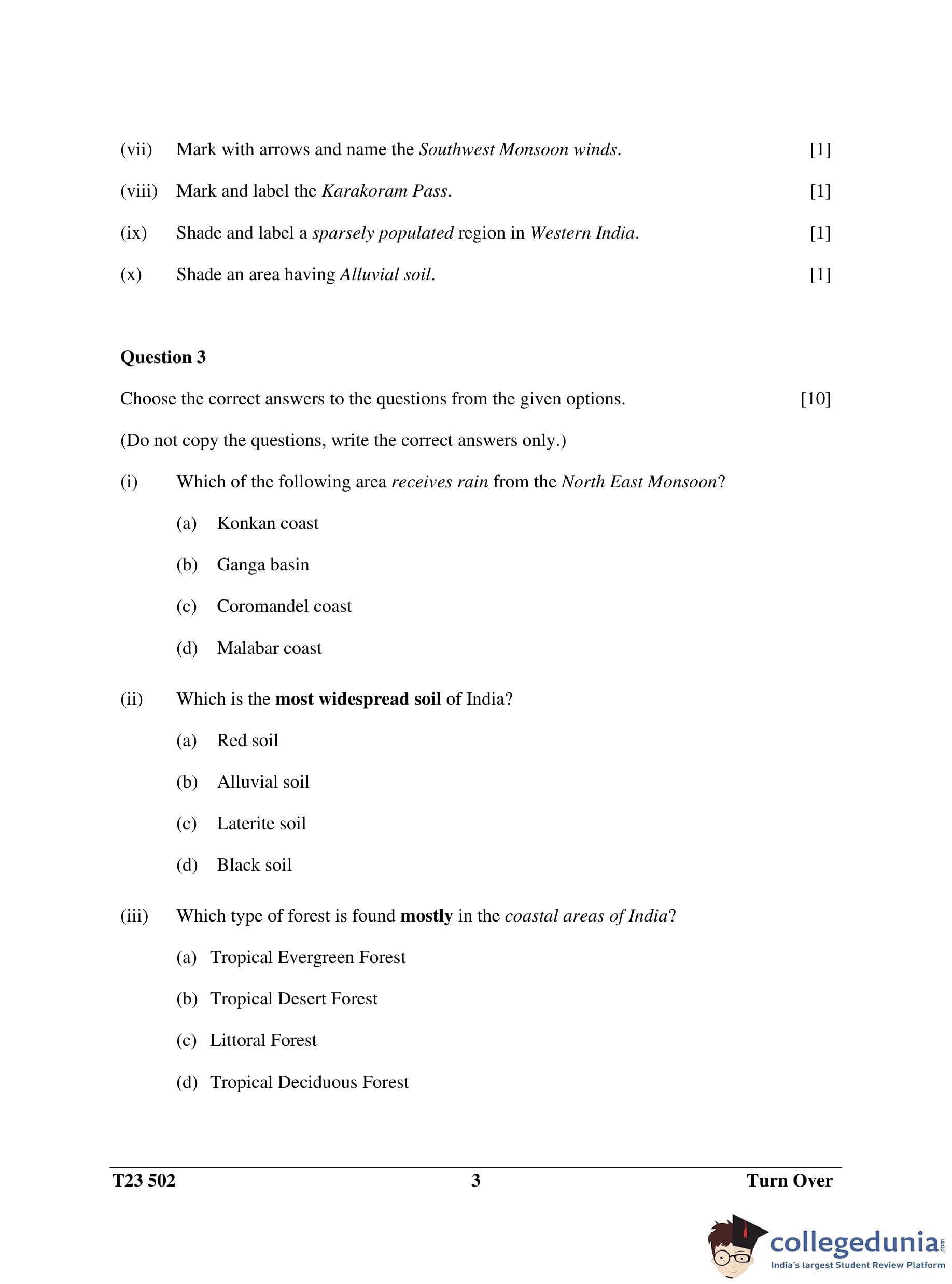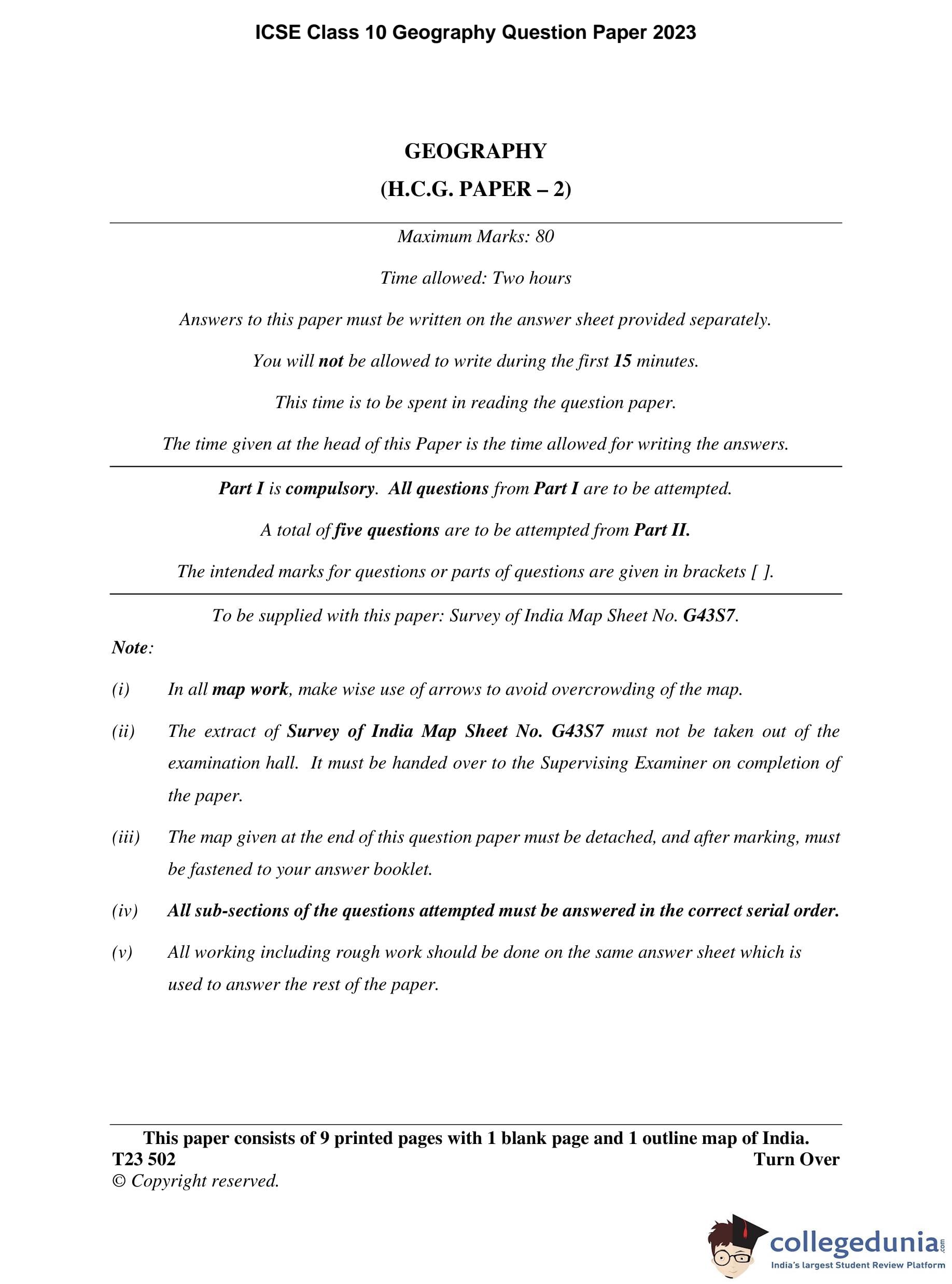 ICSE Class 10 Geography Question Paper 2023 with Answer Key