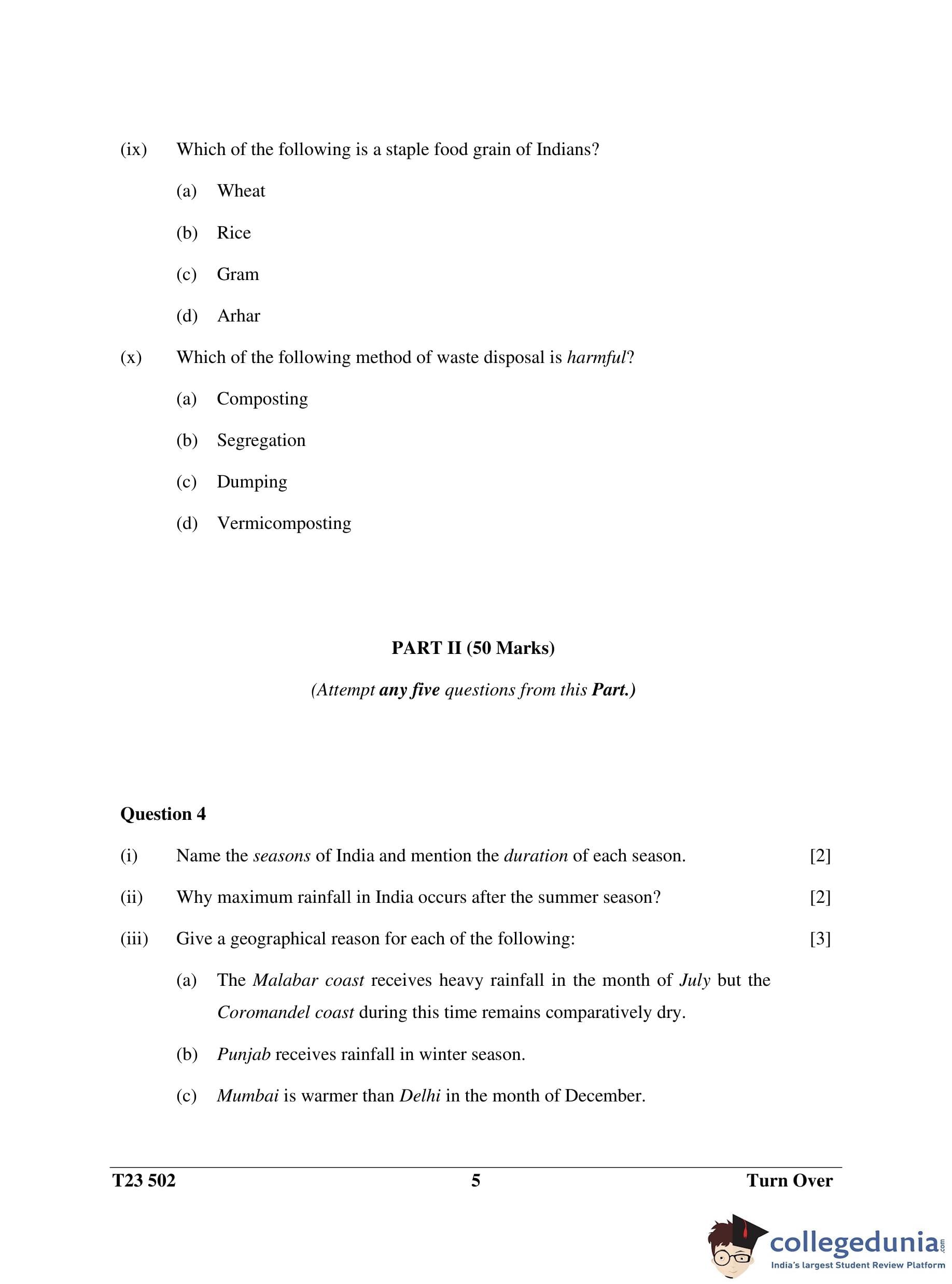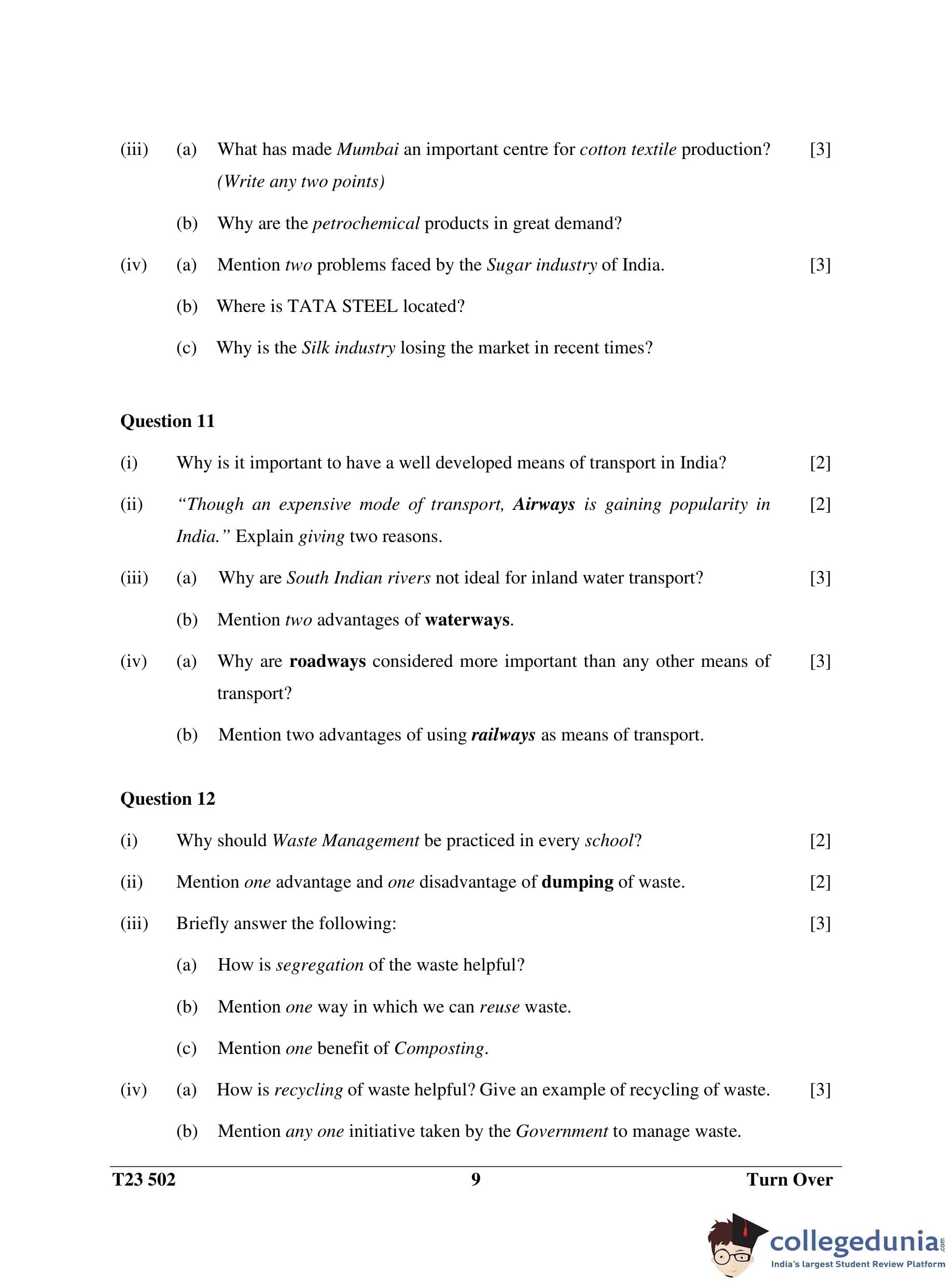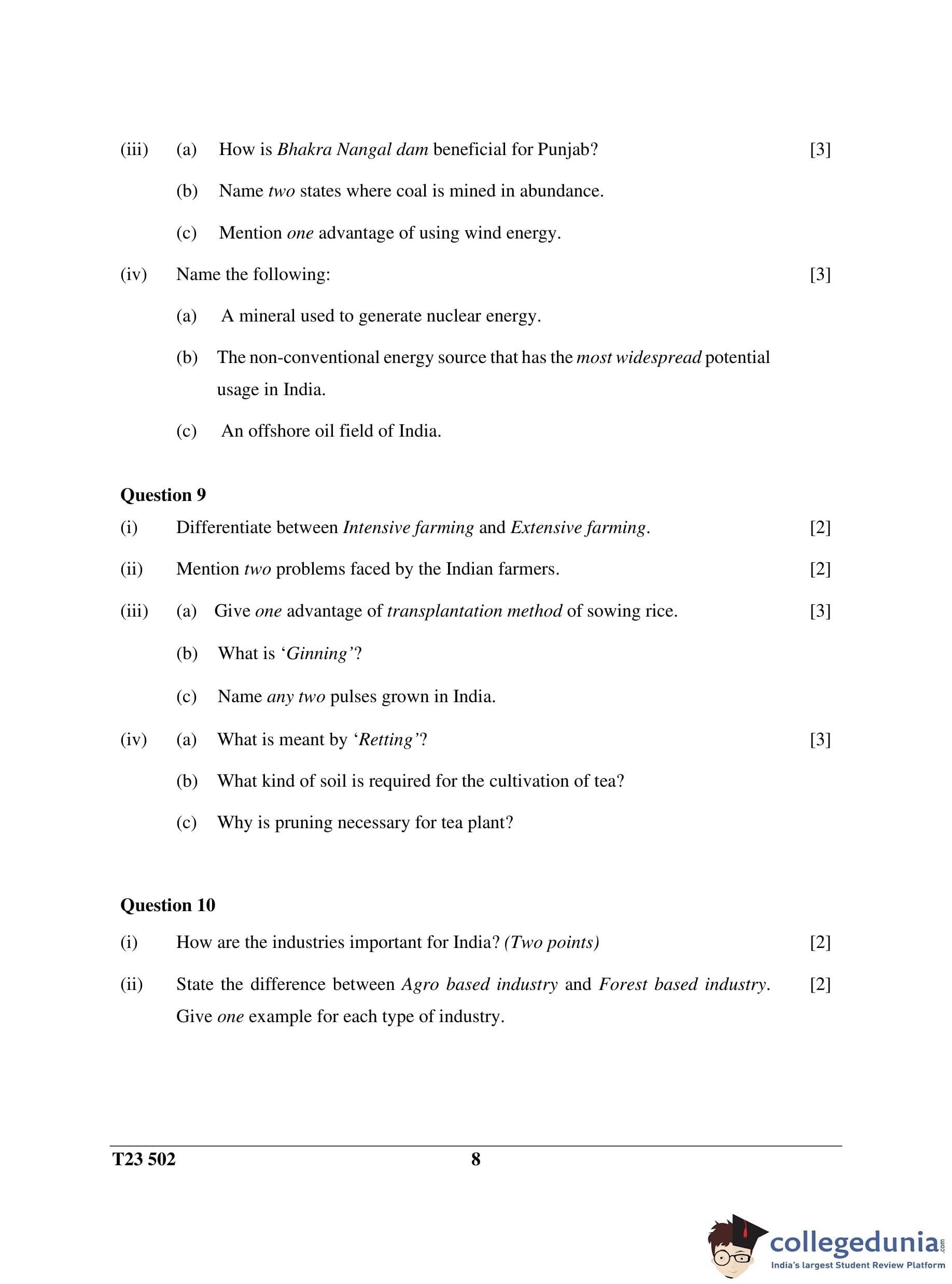 ICSE Class 10 Geography Question Paper 2023 with Answer Key