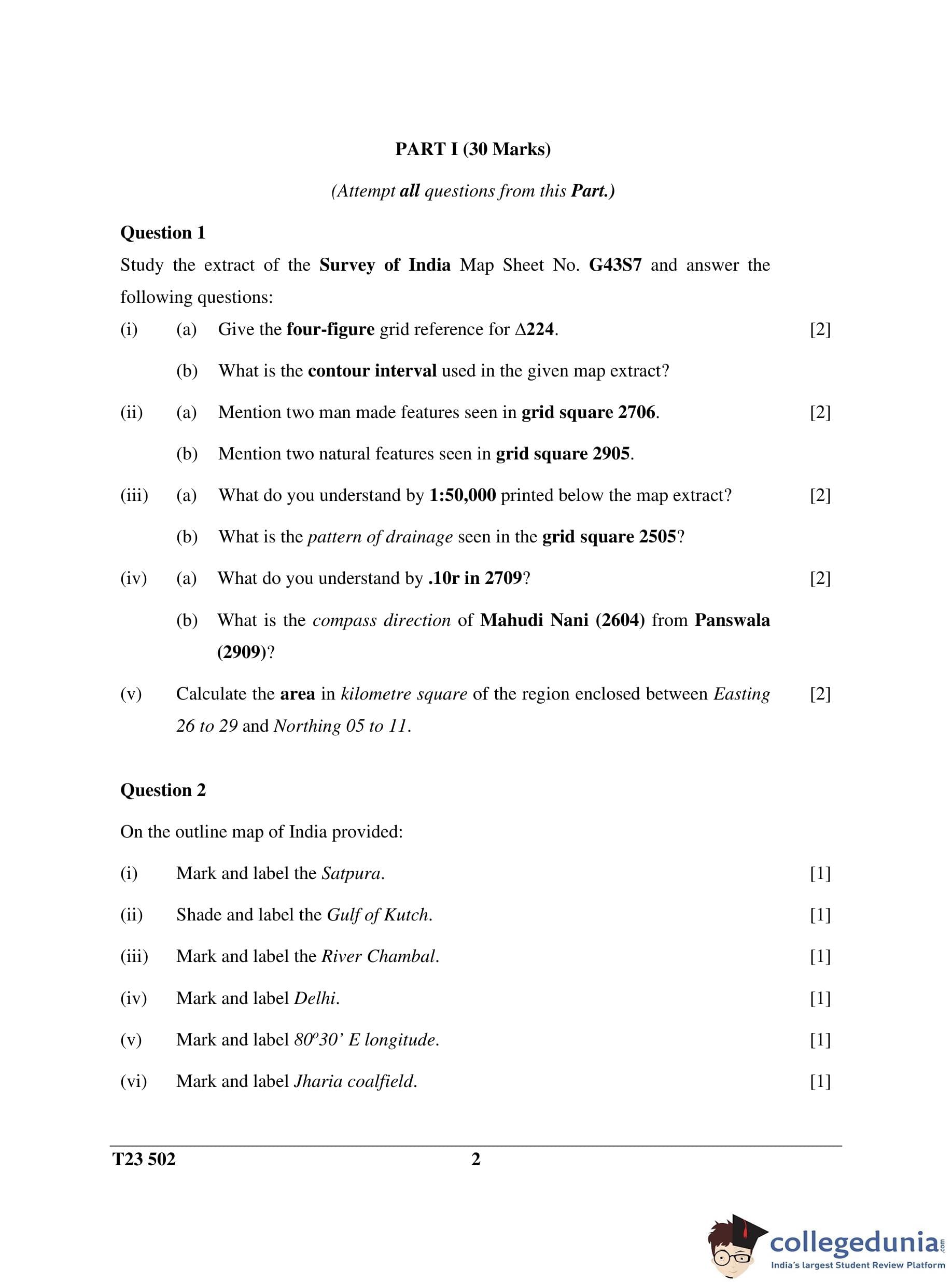 ICSE Class 10 Geography Question Paper 2023 with Answer Key pdf is available for download here. The exam was conducted by Council for the Indian School Certificate Examinations (CISCE) on March 13, 2023 in the Morning Session 11 AM to 1 PM. In terms of difficulty level, ICSE Class 10 Geography was Easy to Moderate. The question paper comprised a total of 12 questions divided among 2 sections.