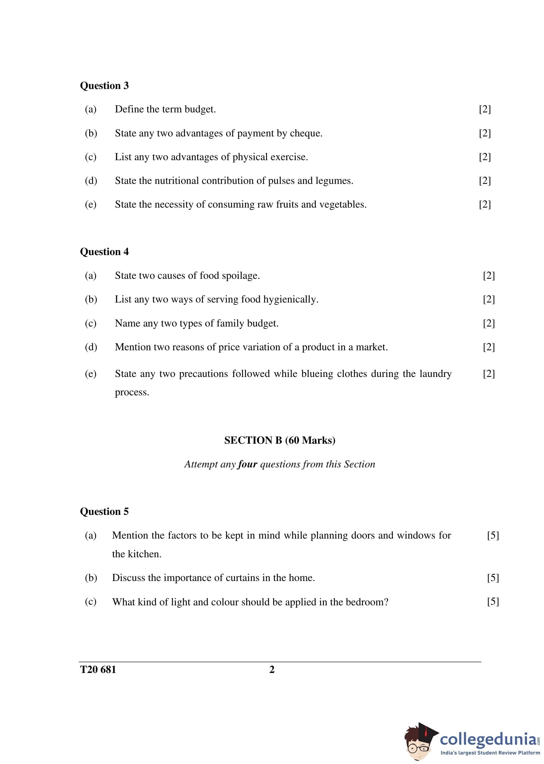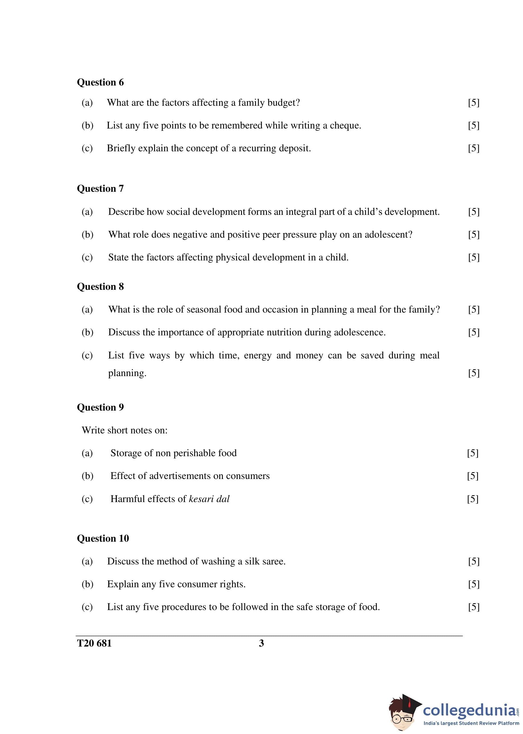 ICSE Class 10 Home Science Question Paper 2020 with Answer Key