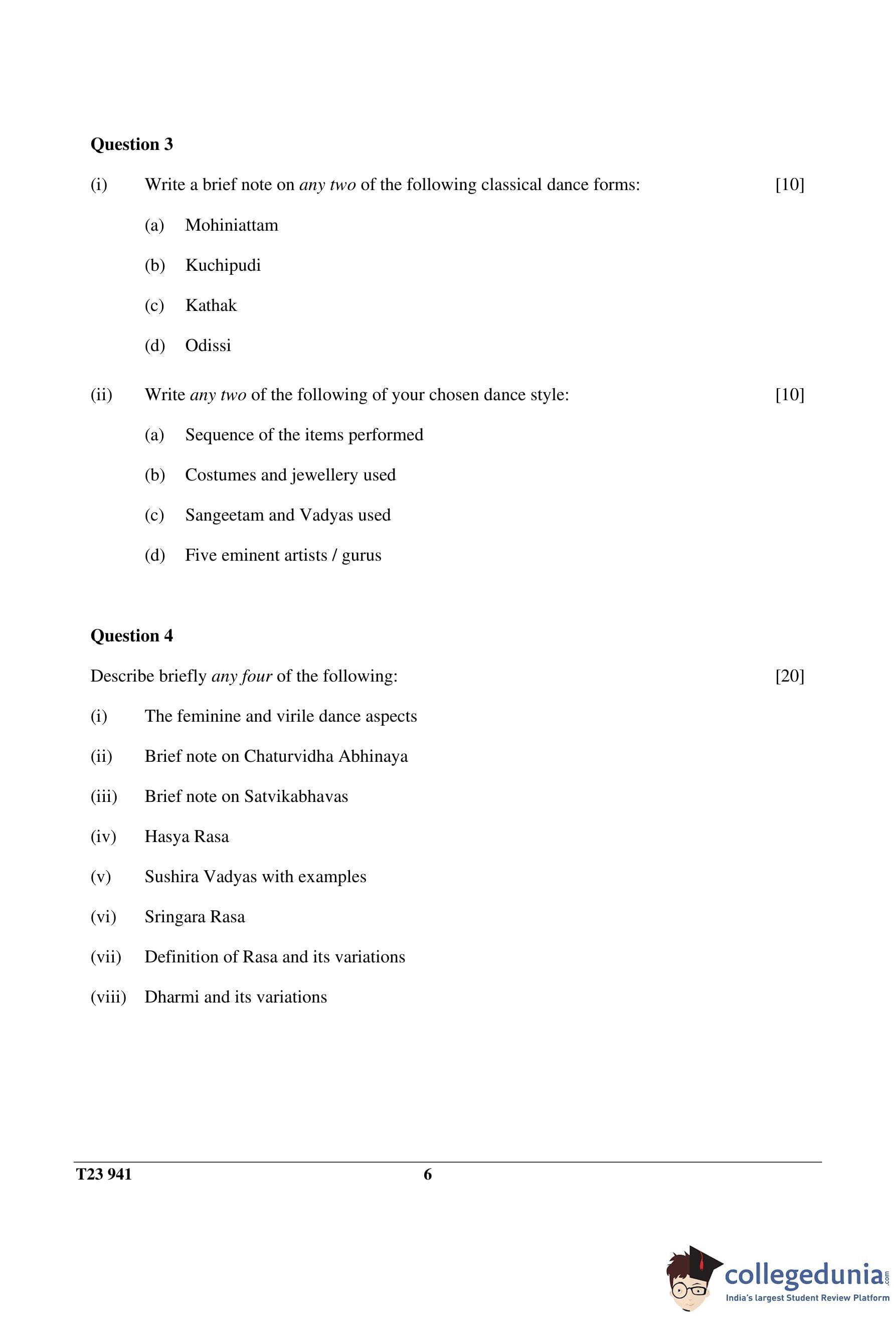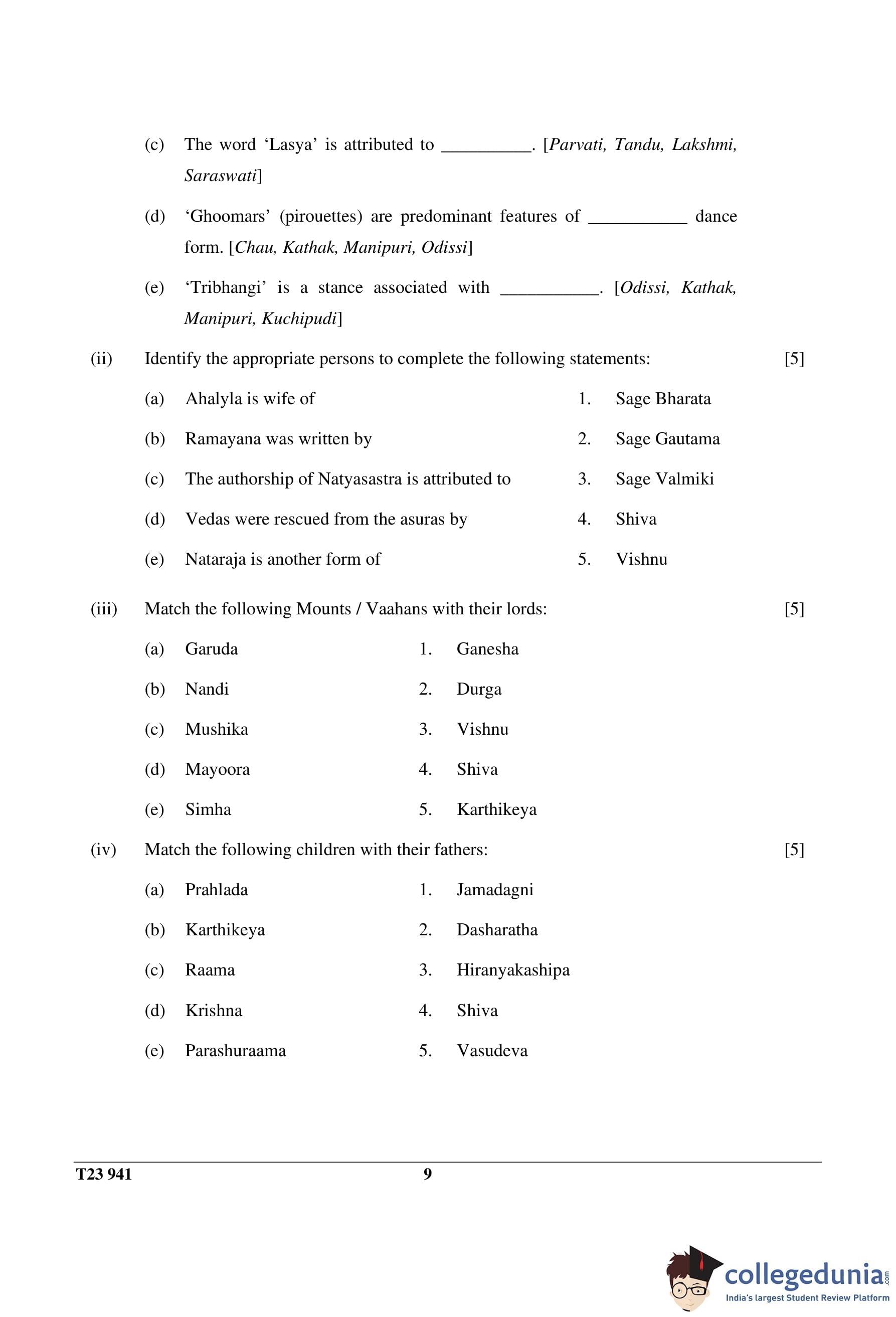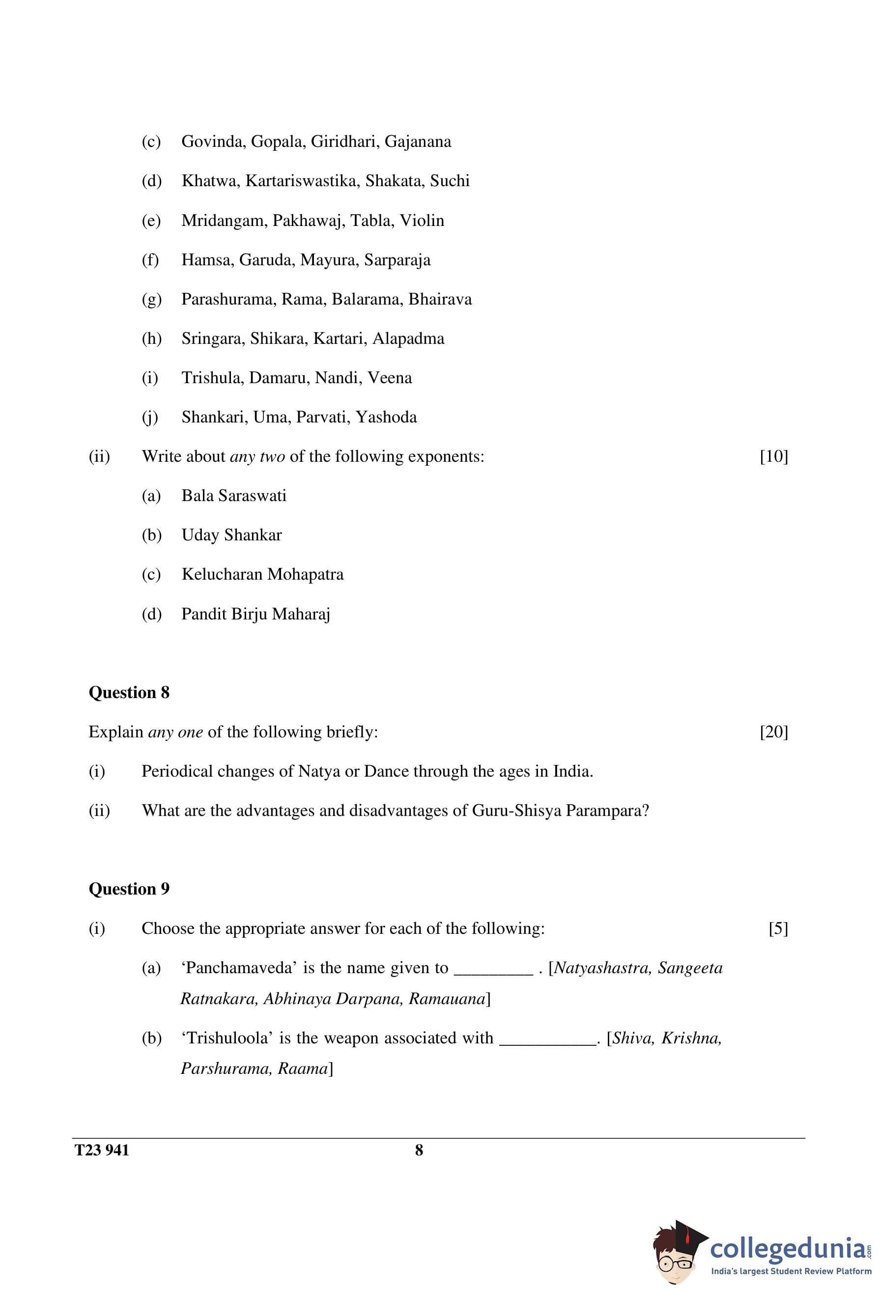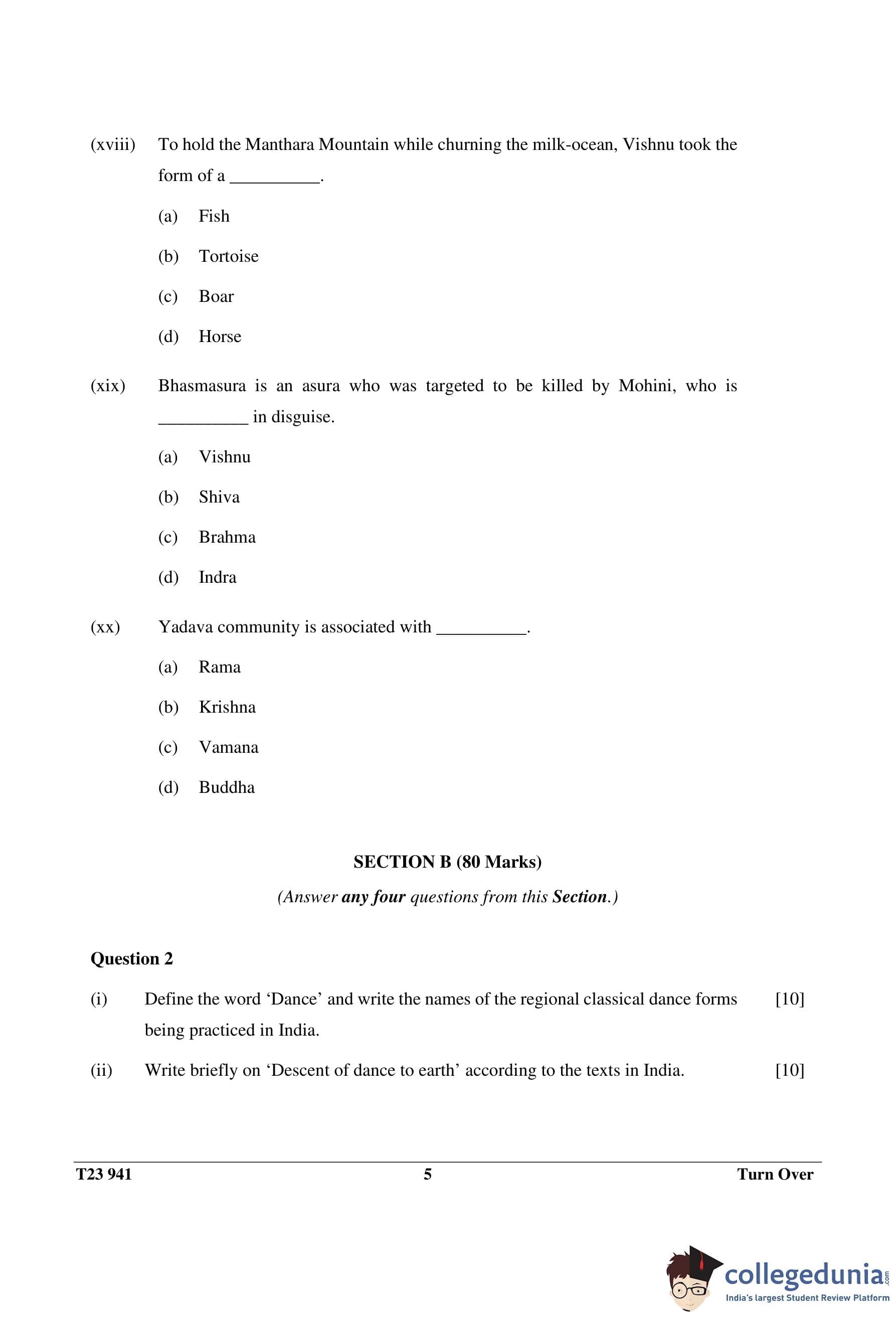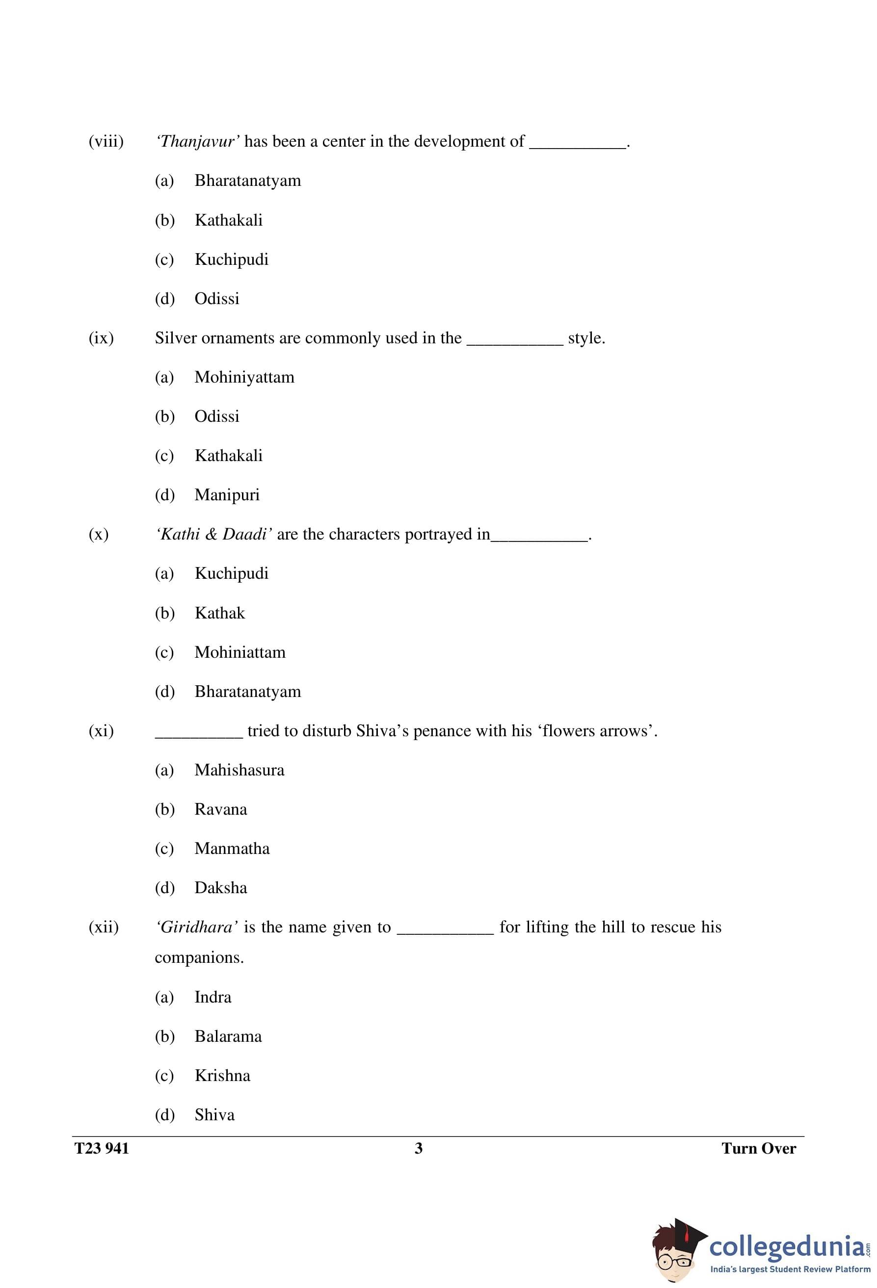 ICSE Class 10 Indian Dance Question Paper 2023 with Answer Key