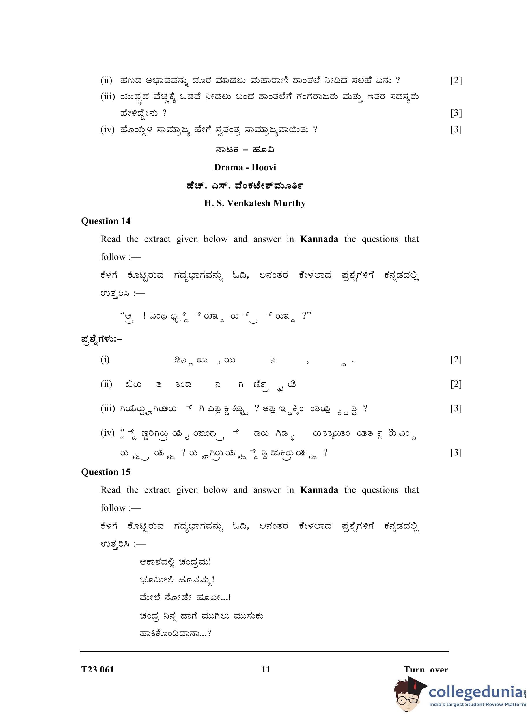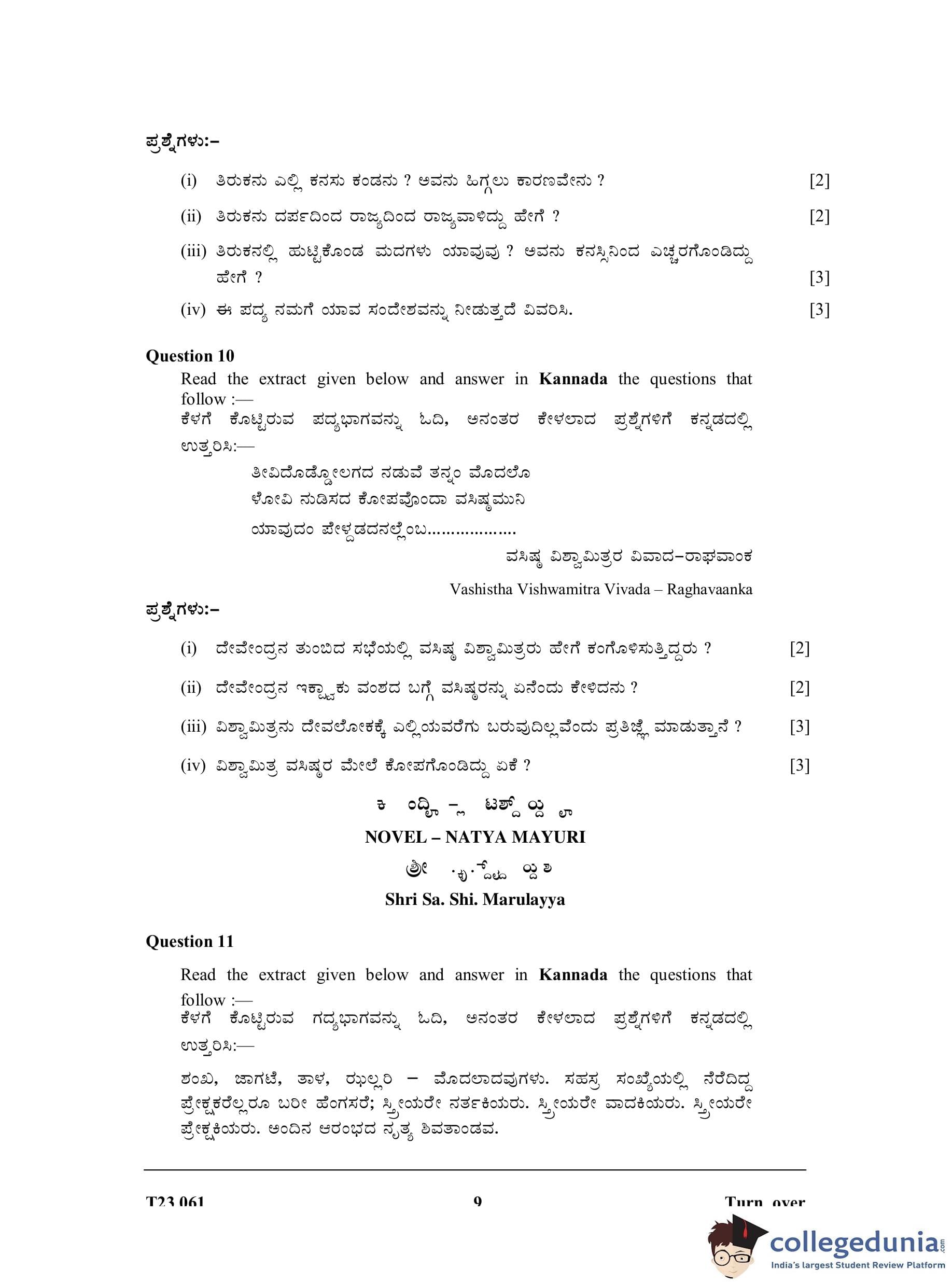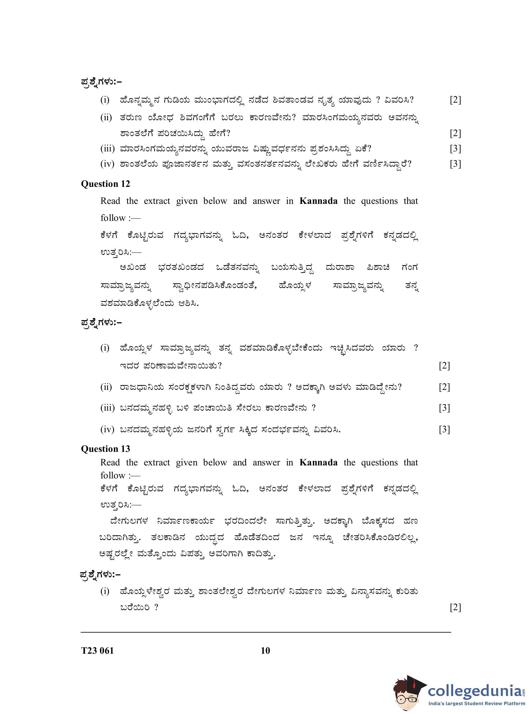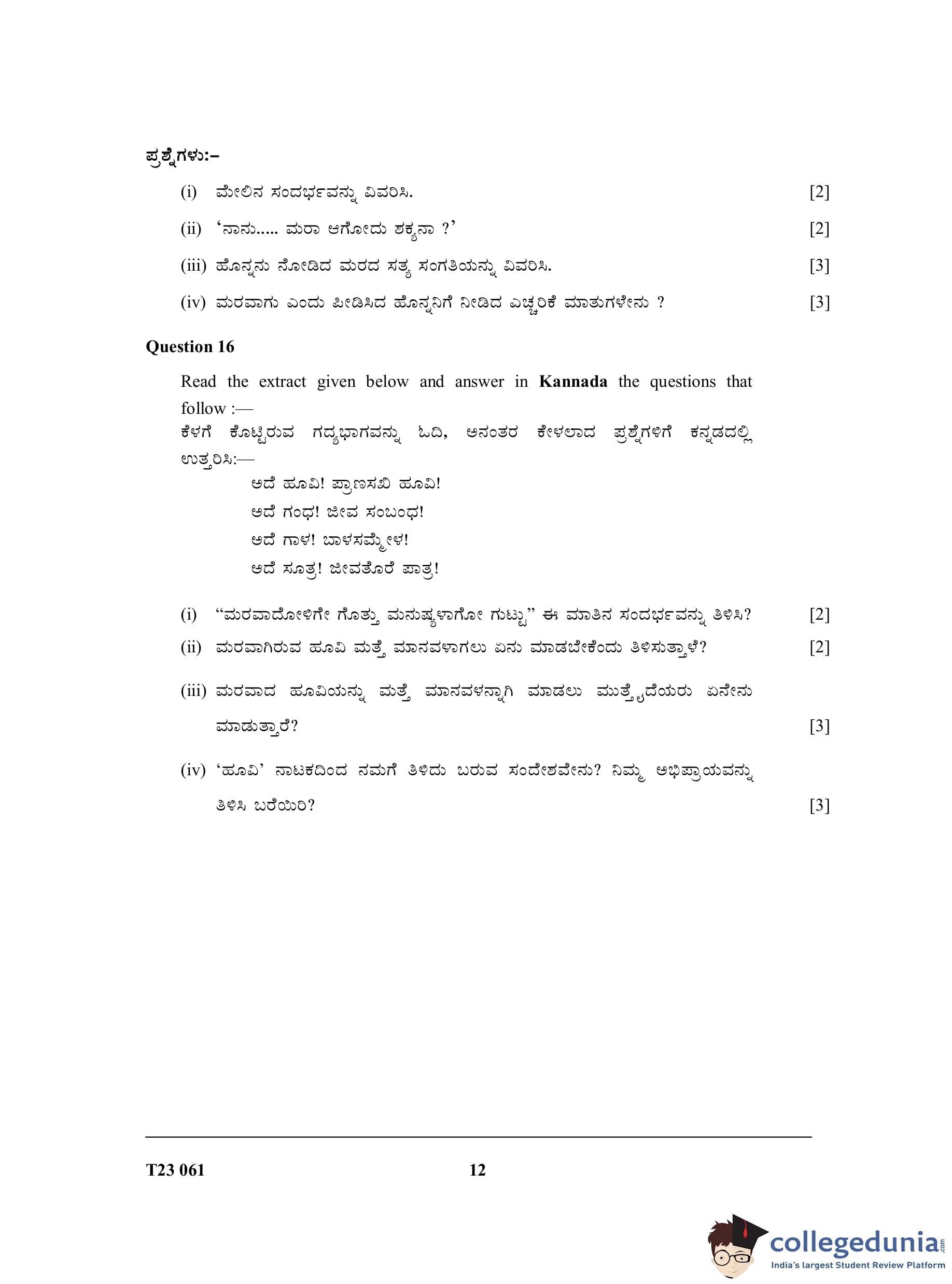 ICSE Class 10 Kannada Question Paper 2023 with Answer Key