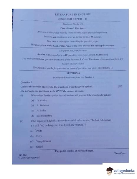 ICSE Class 10 Literature in English Question Paper 2024 with Answer Key is available for download here. ICSE Class 10 Literature in English Exam was conducted on February 23, 2024 from 11 AM to 1 PM. As per the students, the exam difficulty level was reported to be moderate.