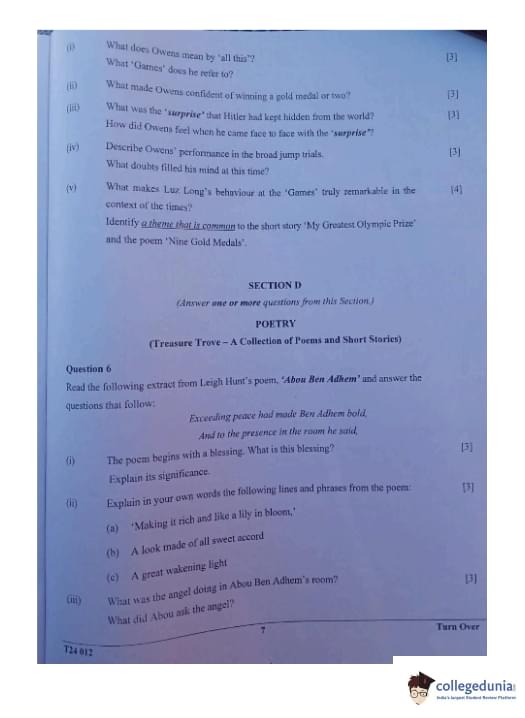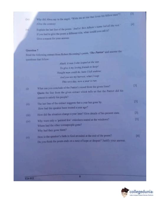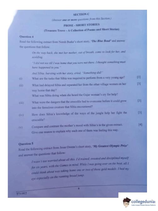 ICSE Class 10 Literature in English Question Paper 2024 with Answer Key