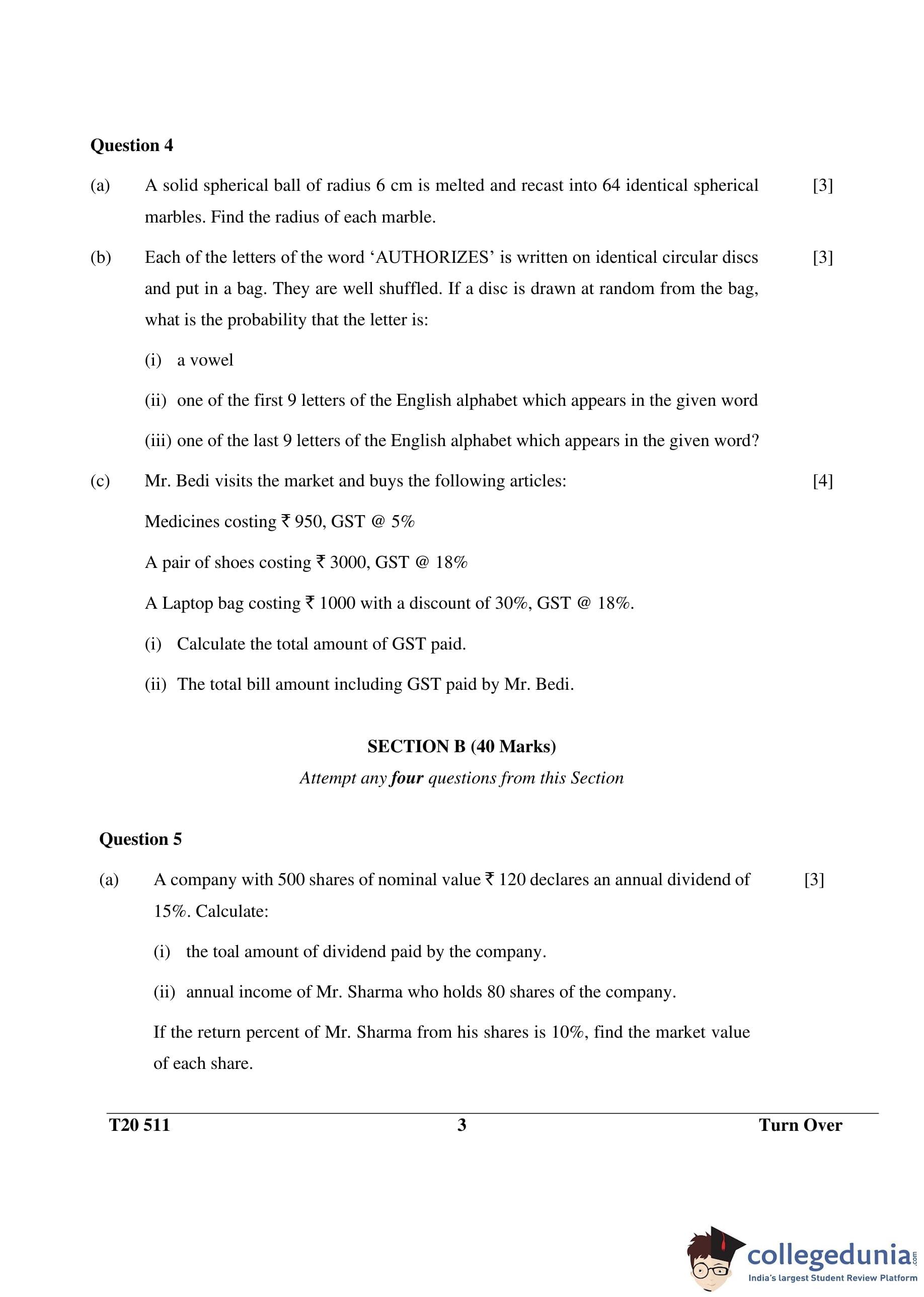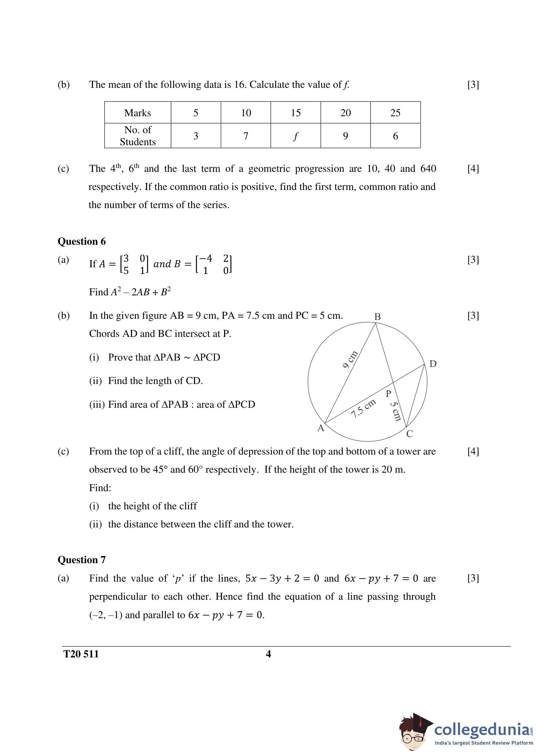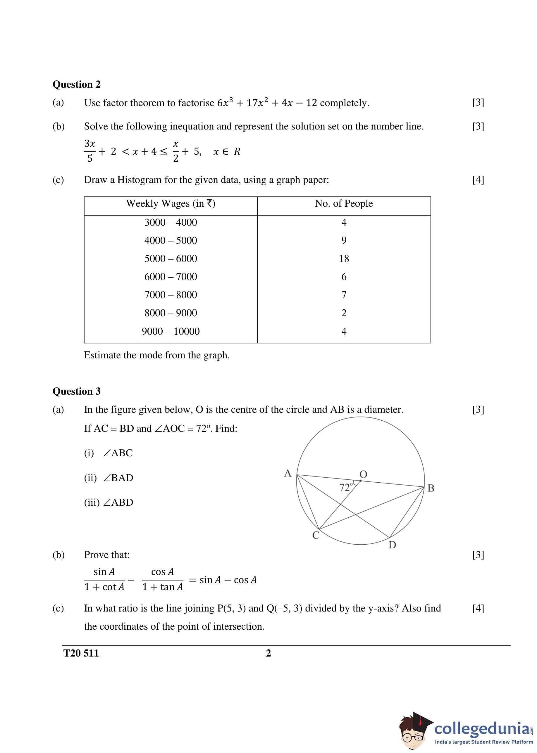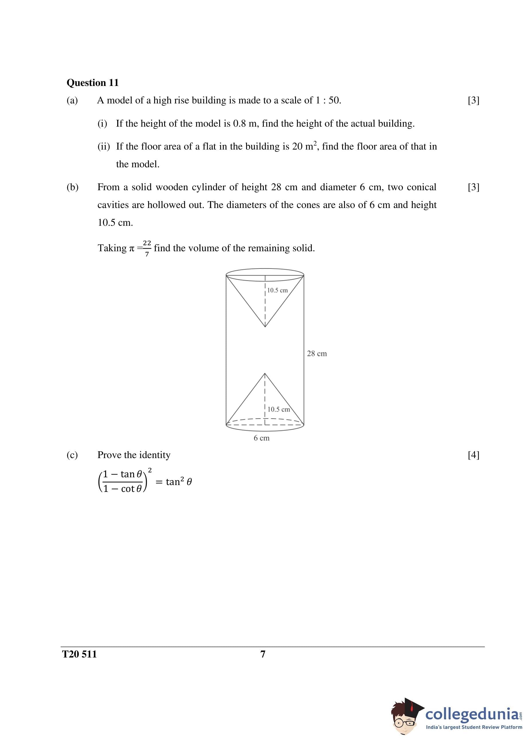 ICSE Class 10 Mathematics Question Paper 2020 with Answer Key