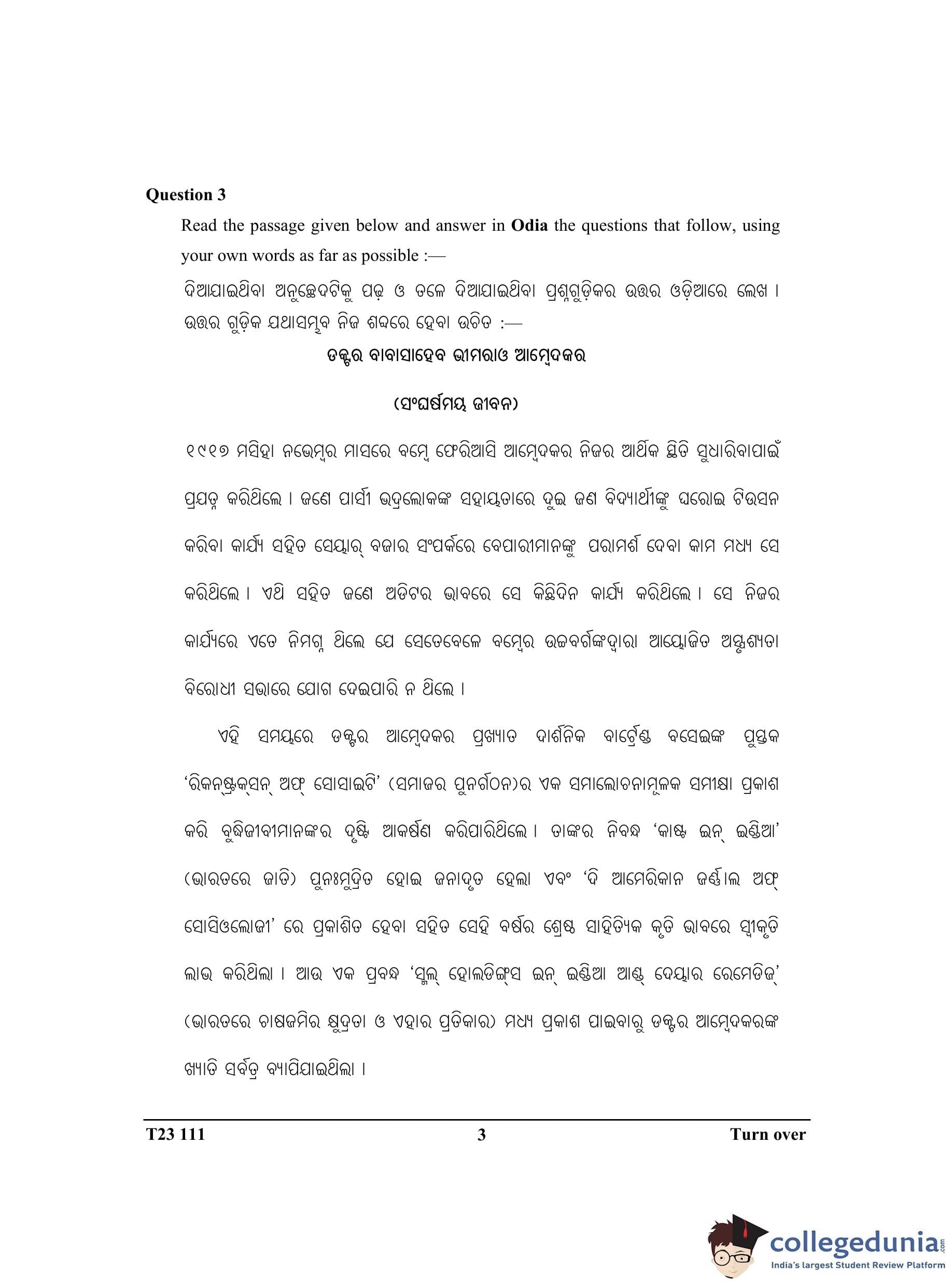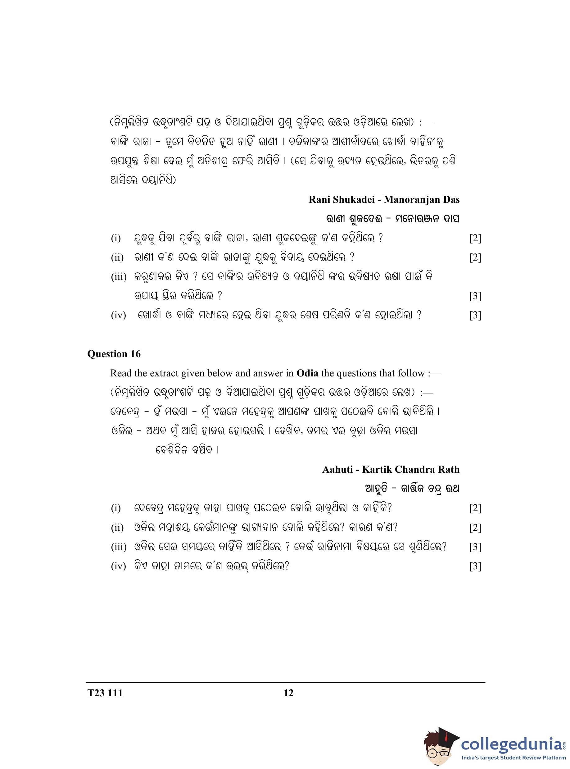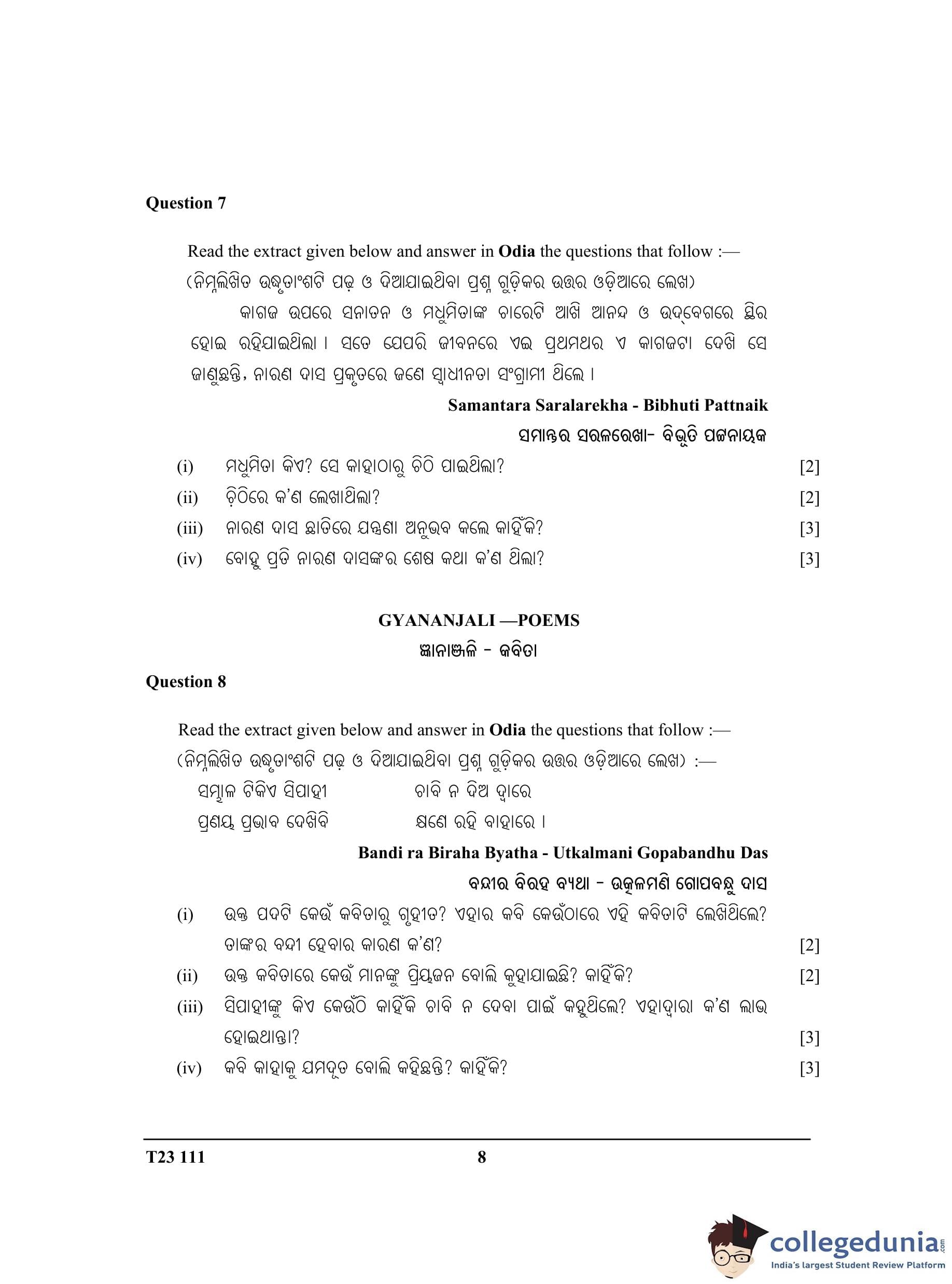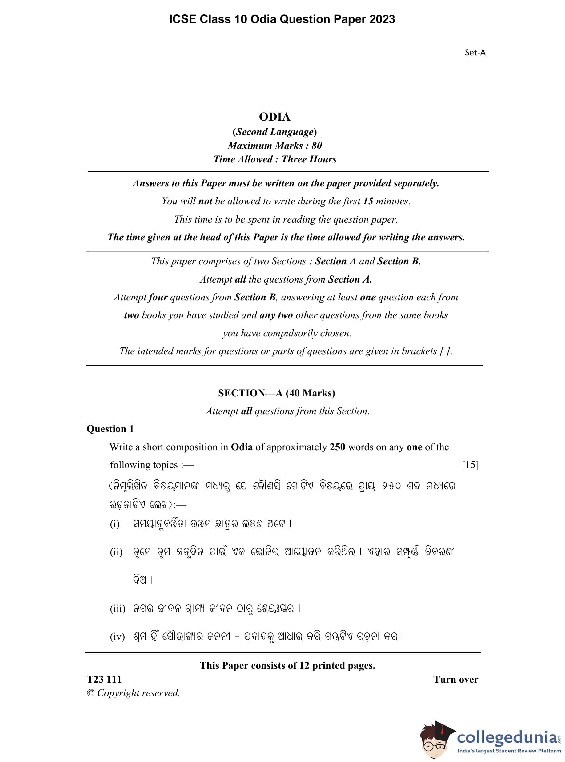 ICSE Class 10 Odia Question Paper 2023 with Answer Key pdf is available for download here. The exam was conducted by Council for the Indian School Certificate Examinations (CISCE) on March 15, 2023 in the Morning Session 11 AM to 2 PM. The question paper comprised a total of 16 questions divided among 2 sections.