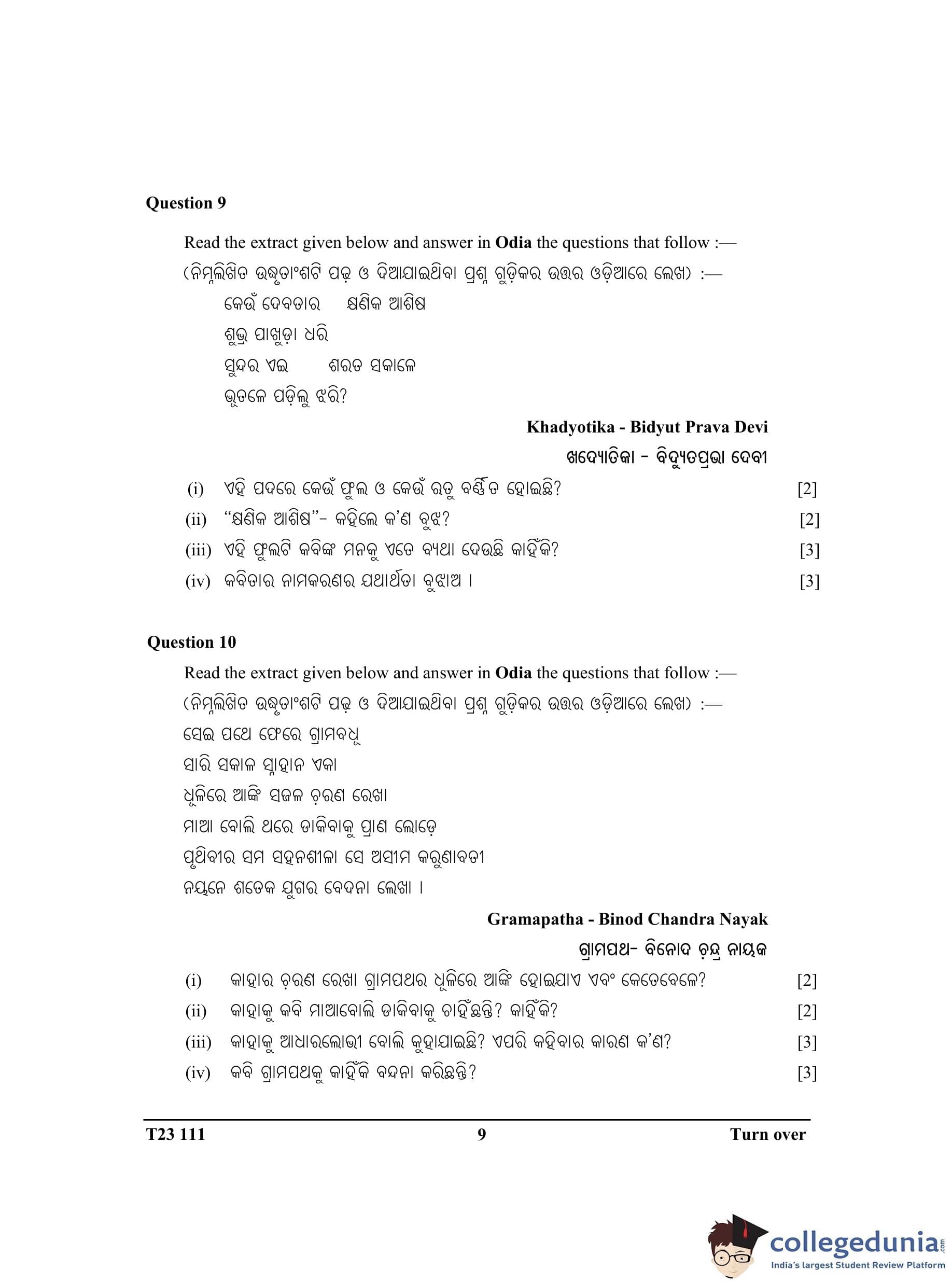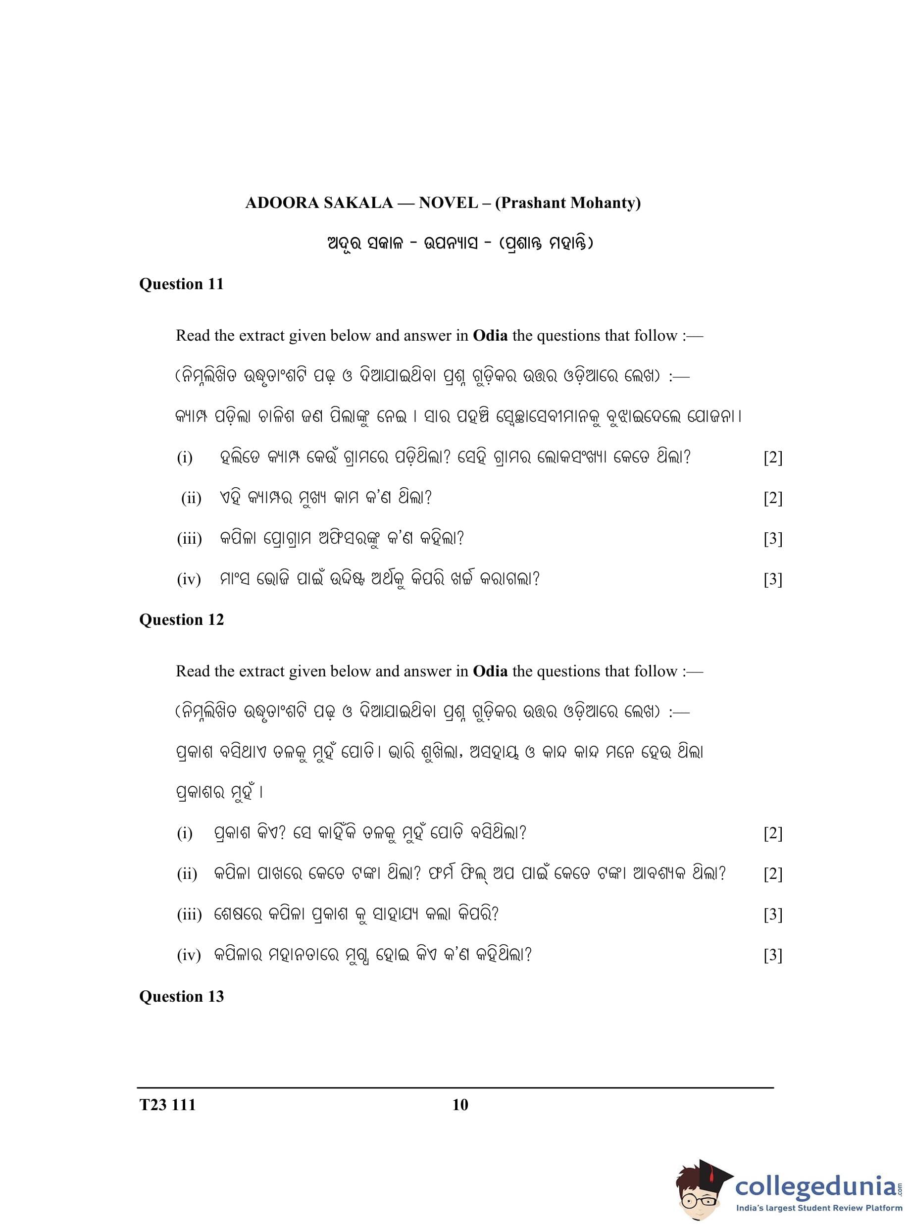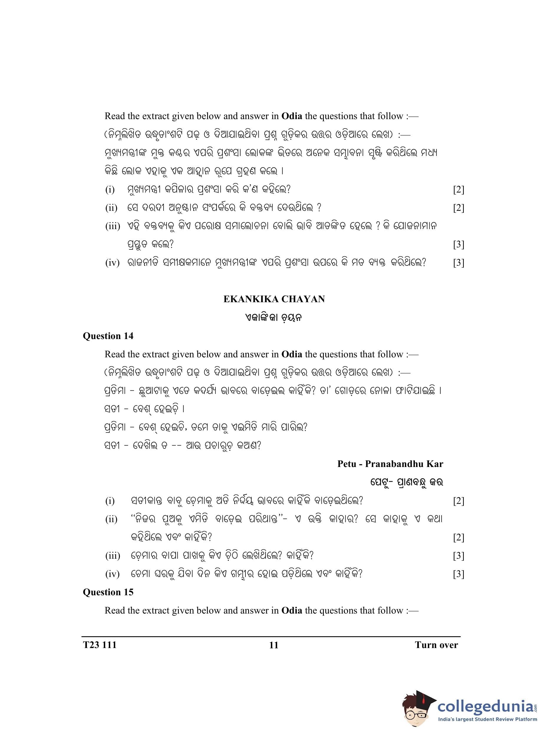 ICSE Class 10 Odia Question Paper 2023 with Answer Key