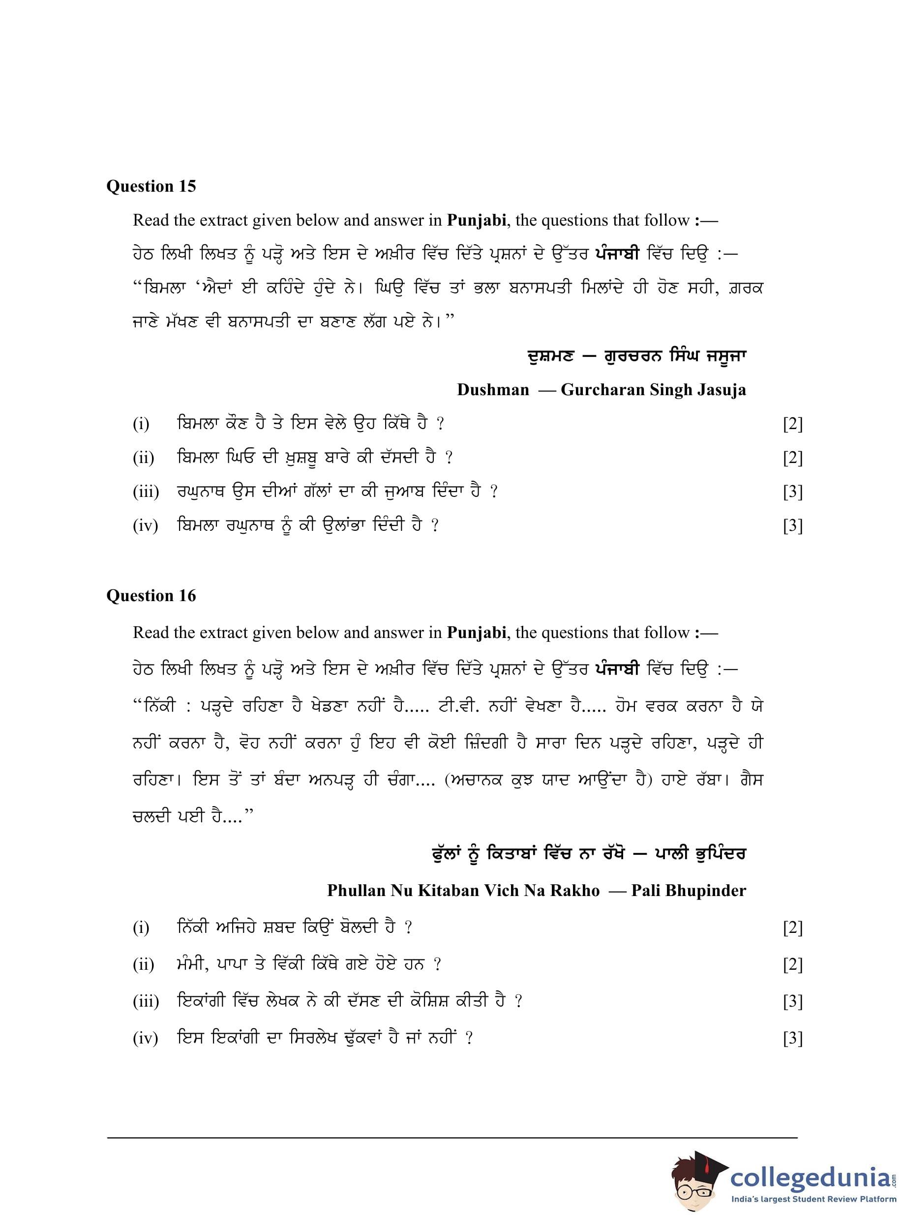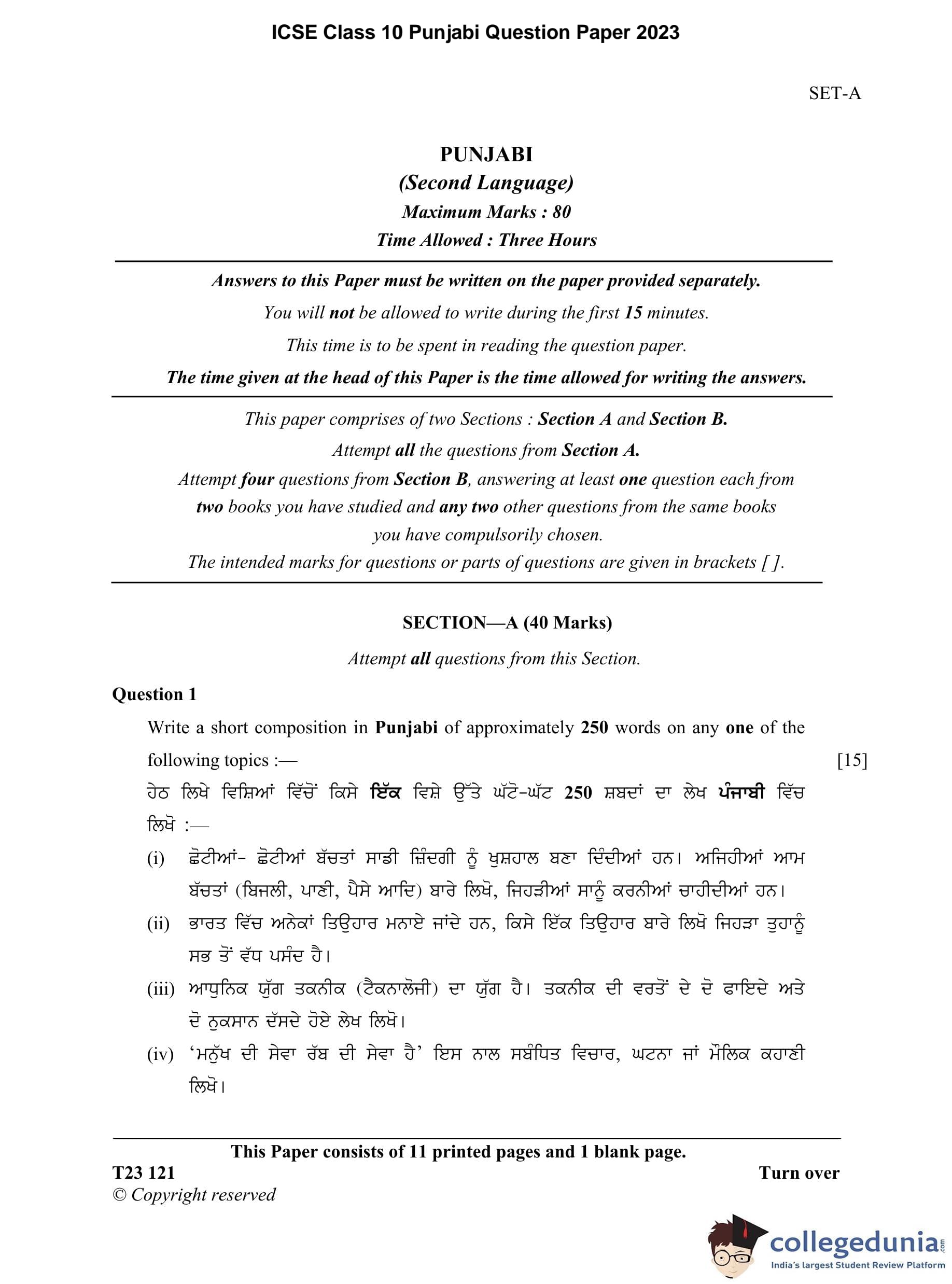 ICSE Class 10 Punjabi Question Paper 2023 with Answer Key pdf is available for download here. The exam was conducted by Council for the Indian School Certificate Examinations (CISCE) on March 15, 2023 in the Morning Session 11 AM to 2 PM. The question paper comprised a total of 16 questions divided among 2 sections.