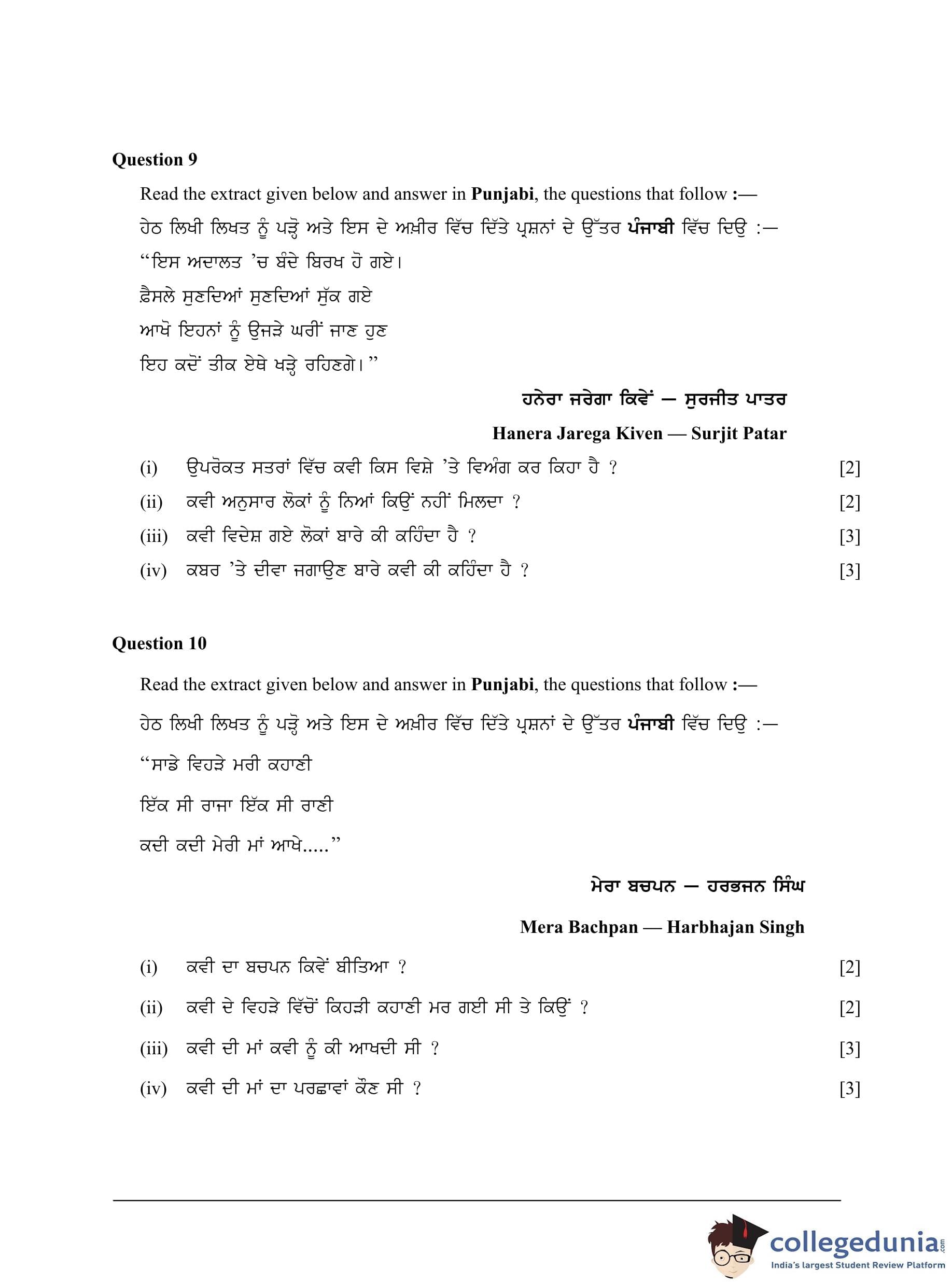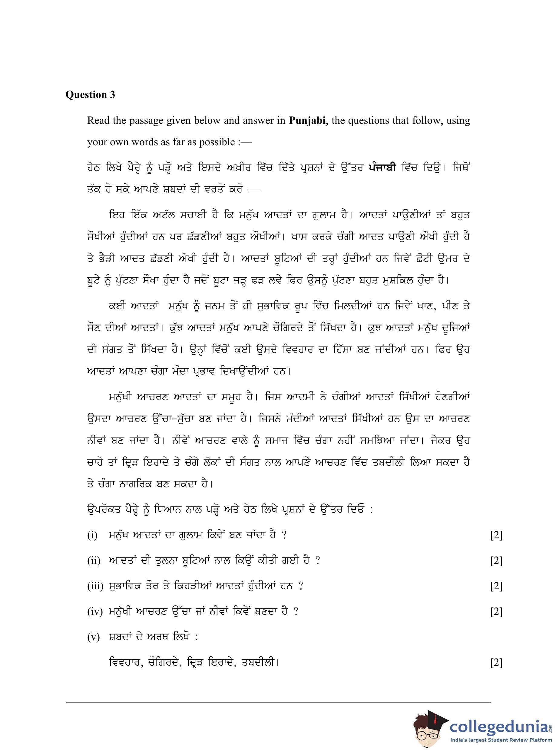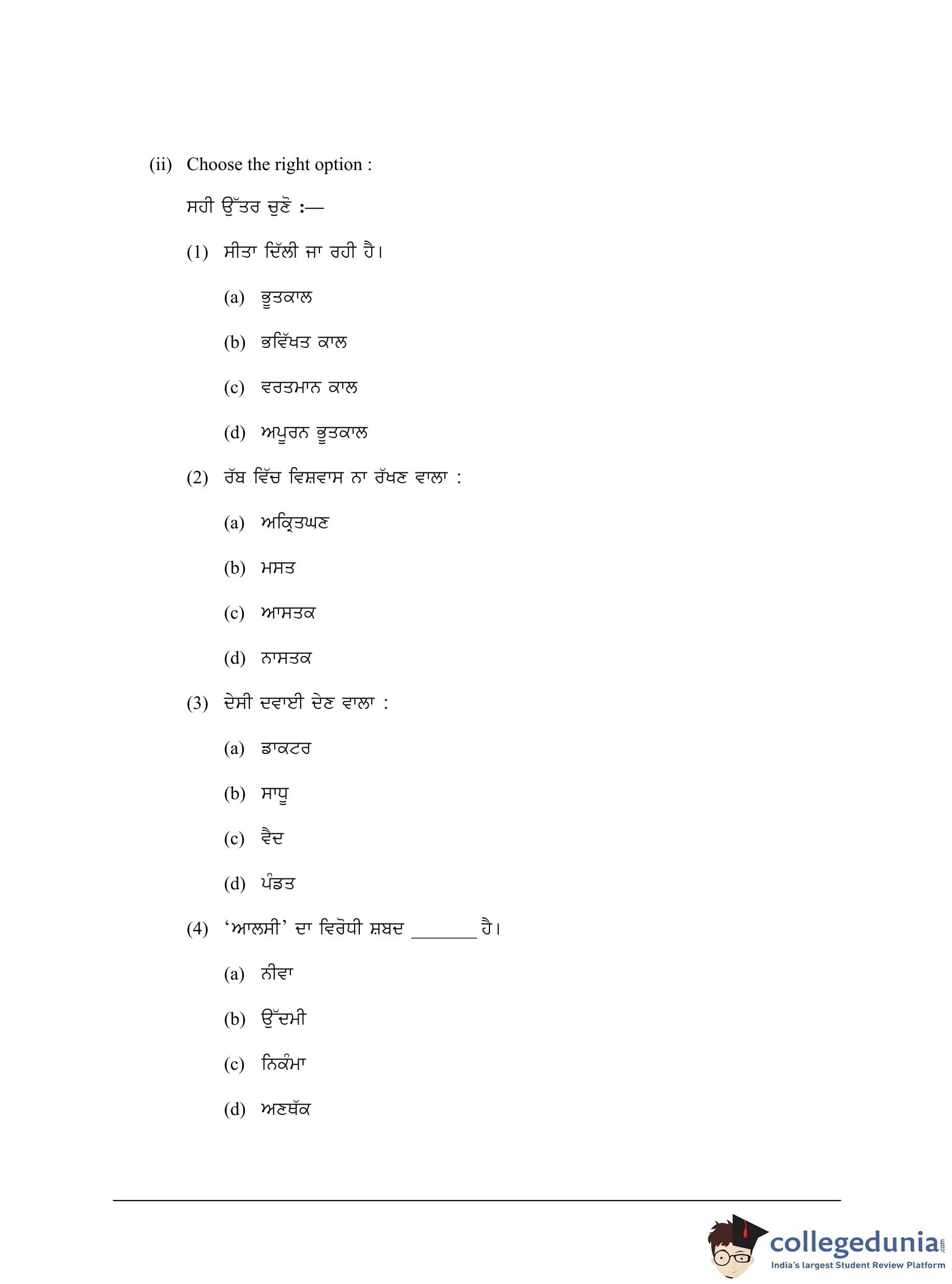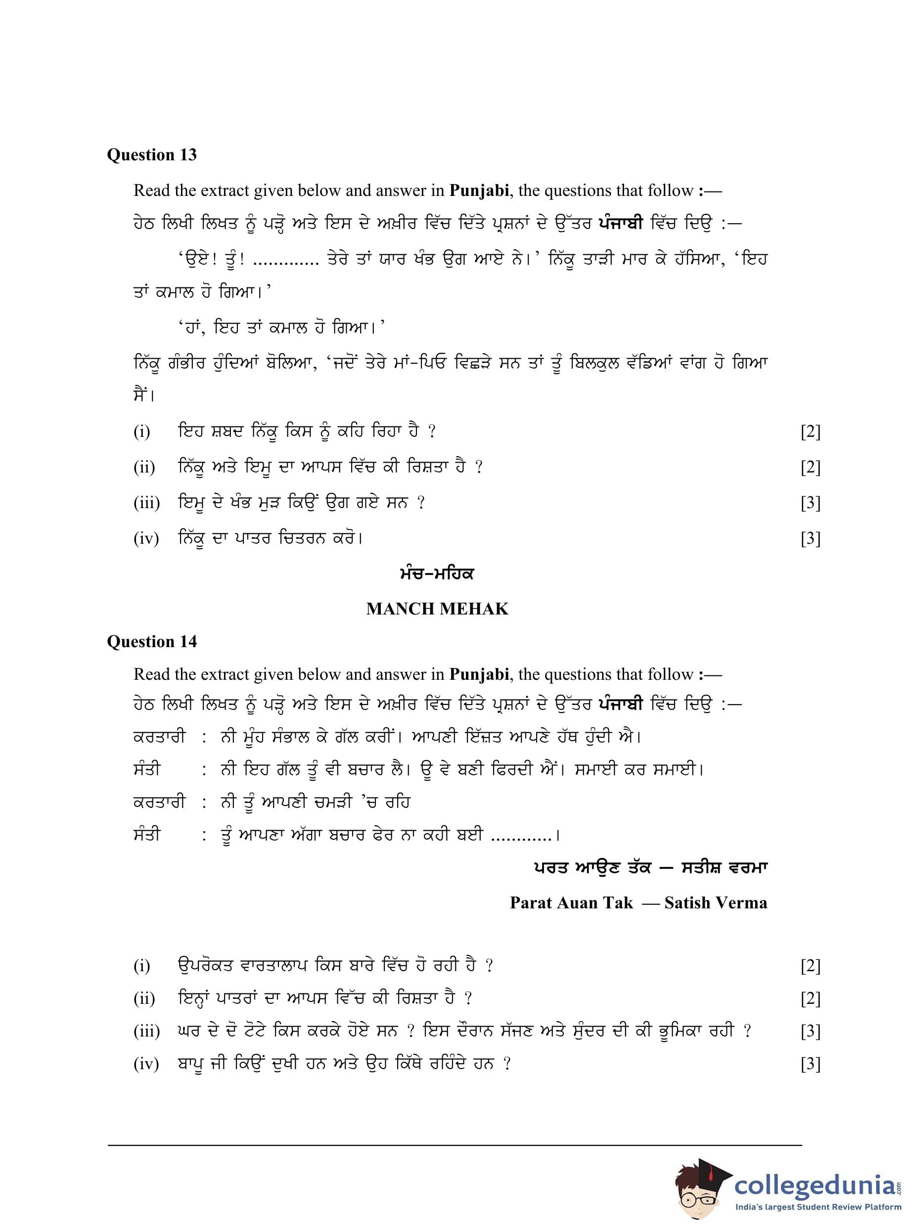 ICSE Class 10 Punjabi Question Paper 2023 with Answer Key