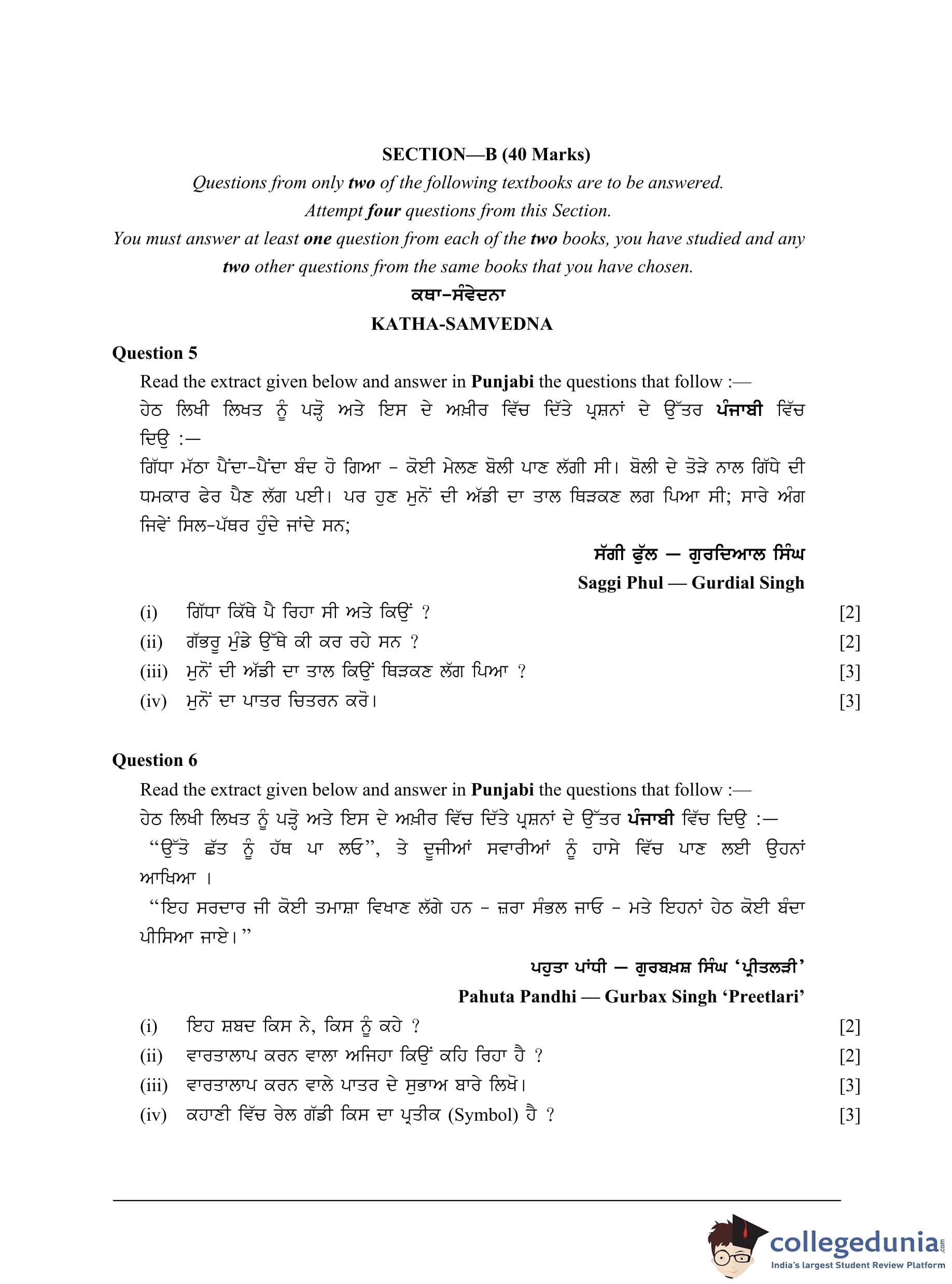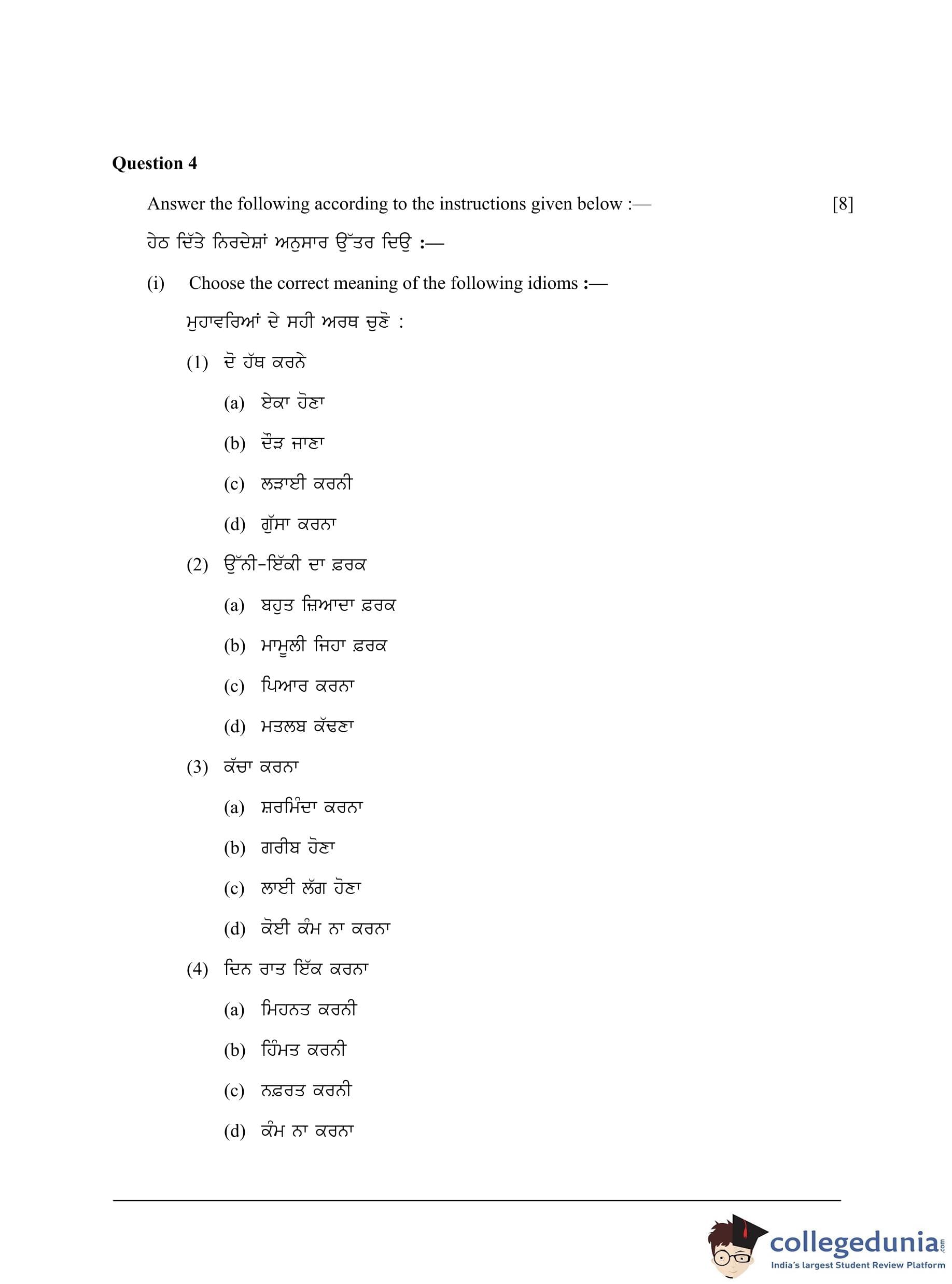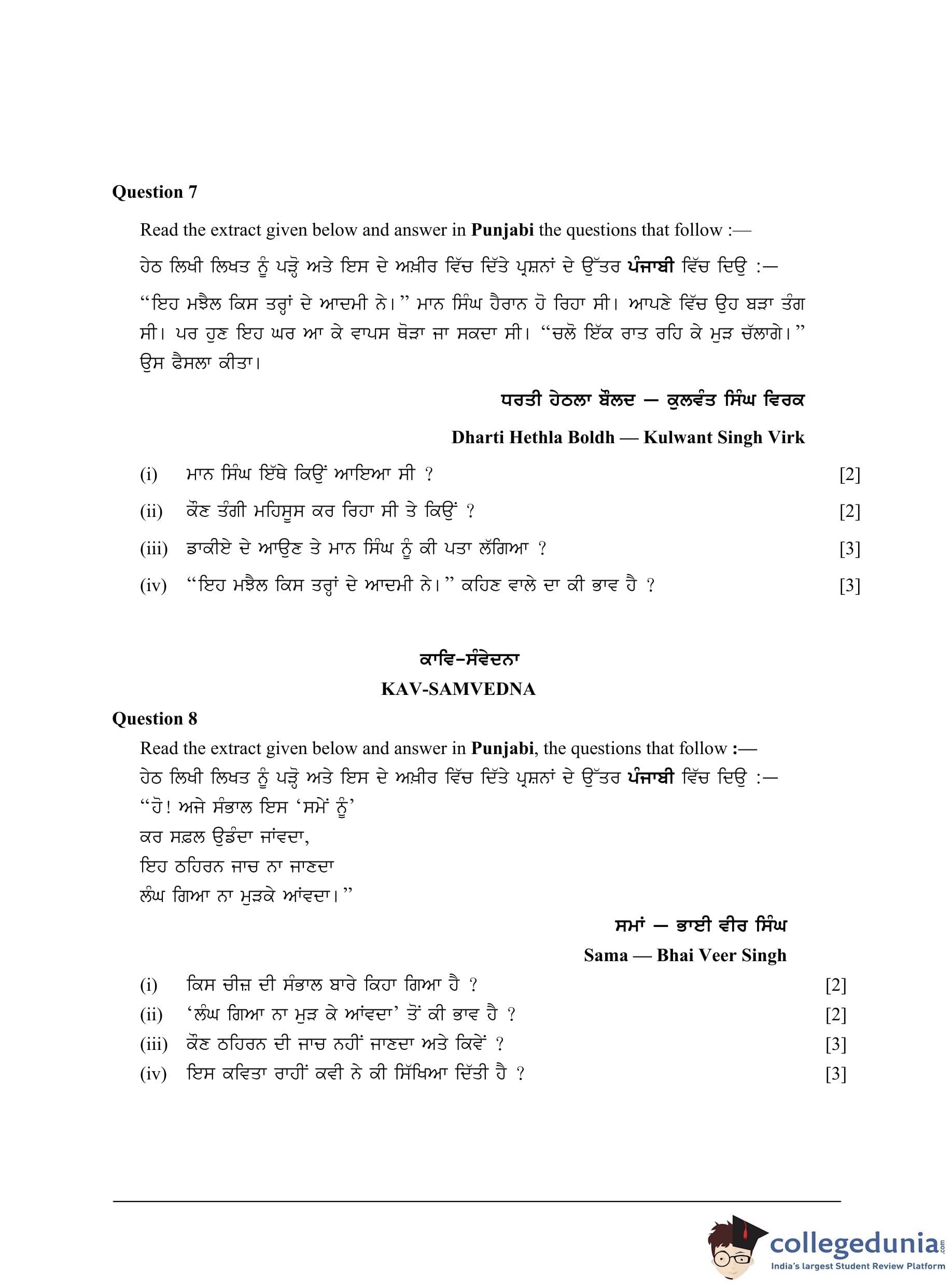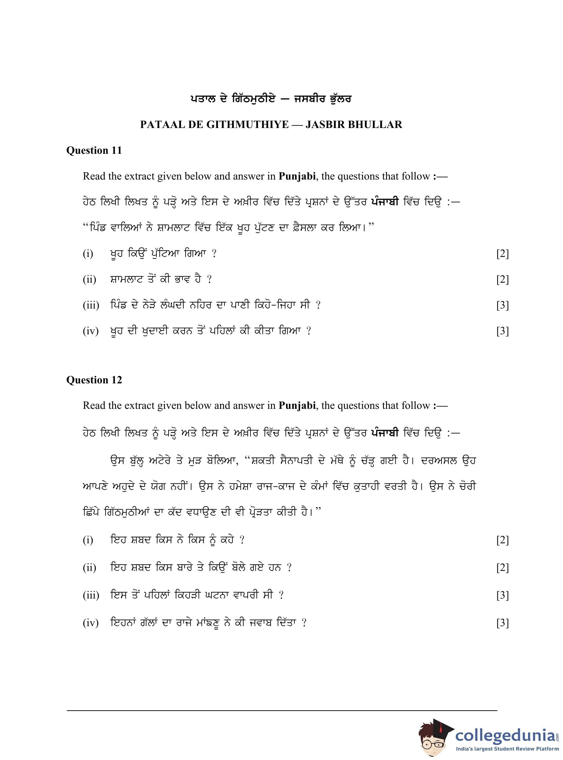 ICSE Class 10 Punjabi Question Paper 2023 with Answer Key