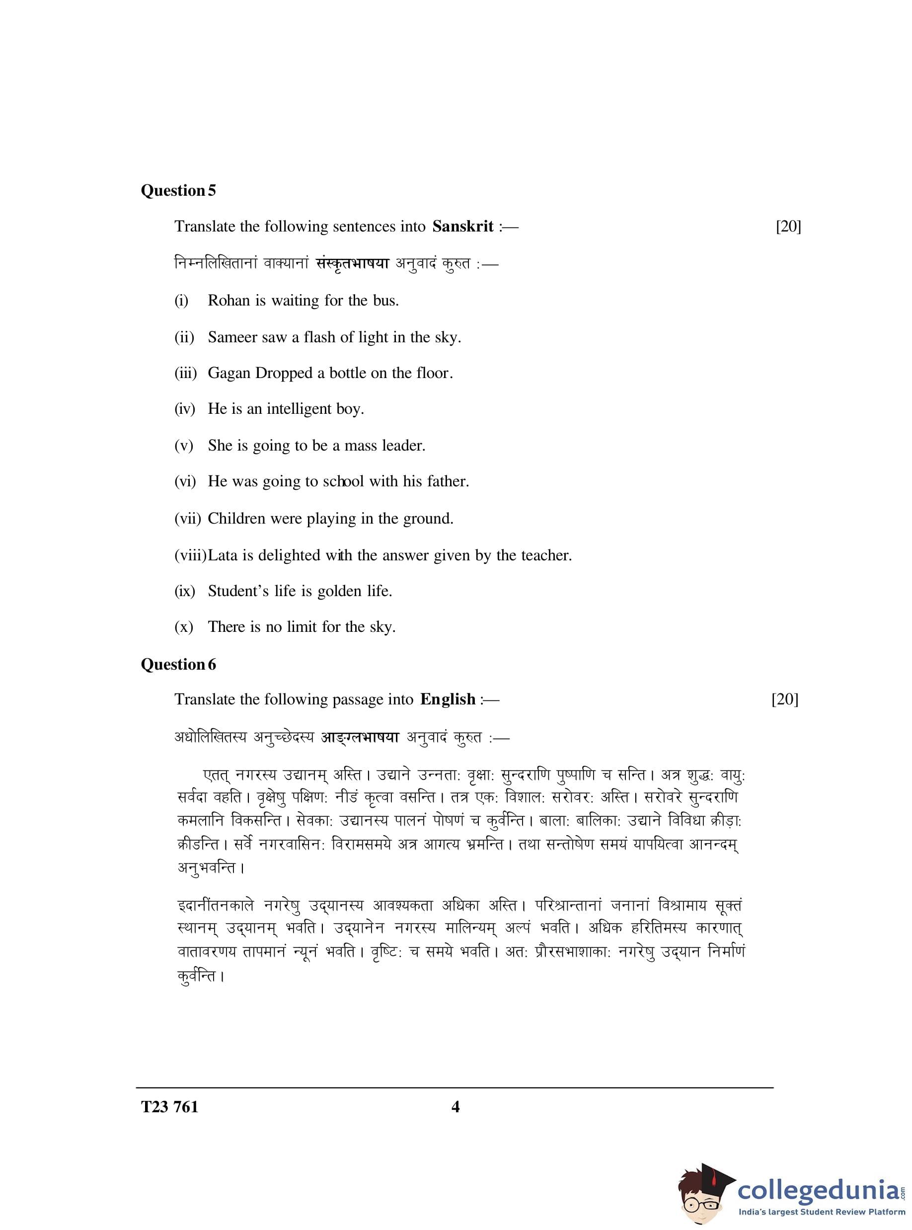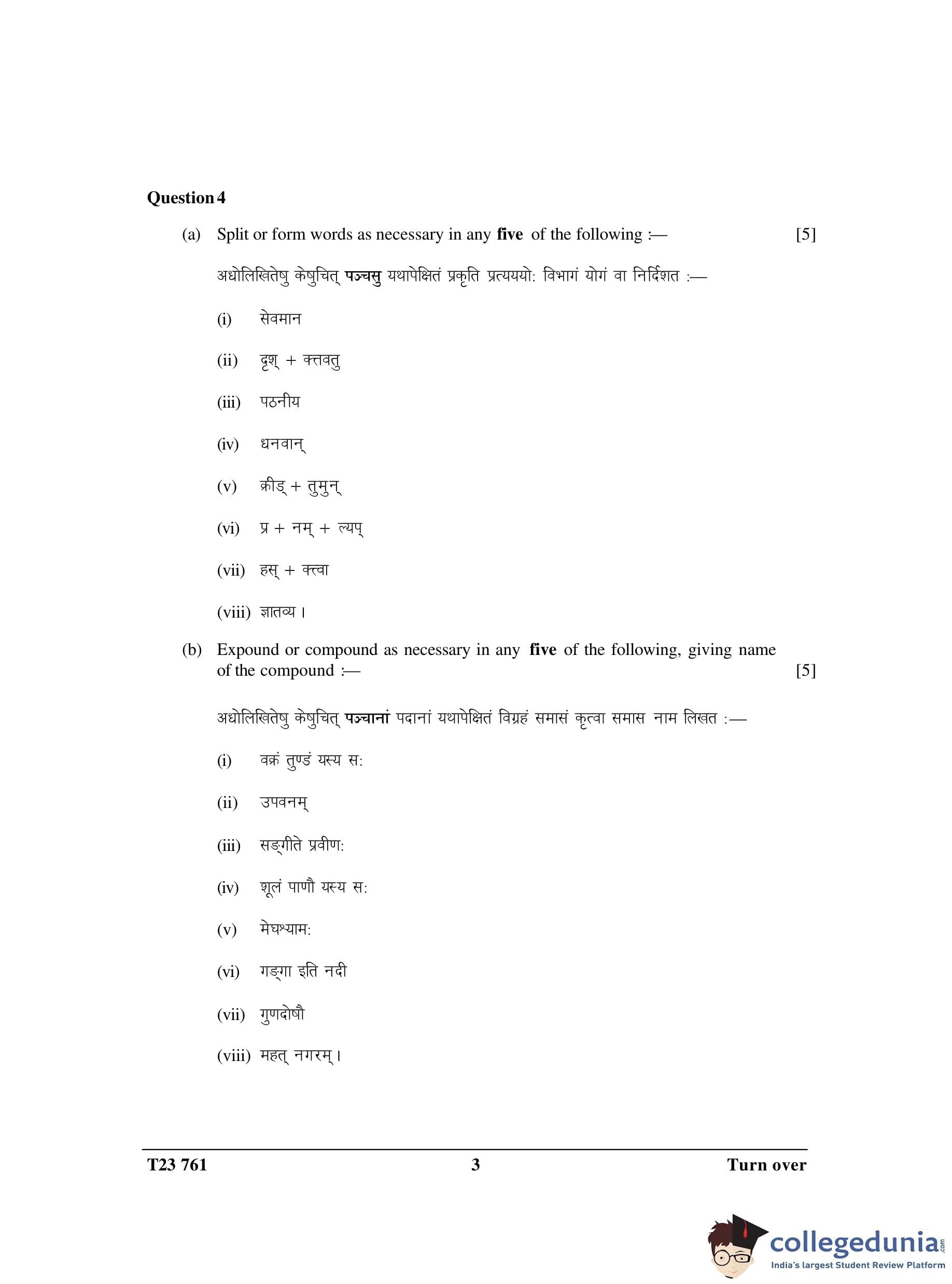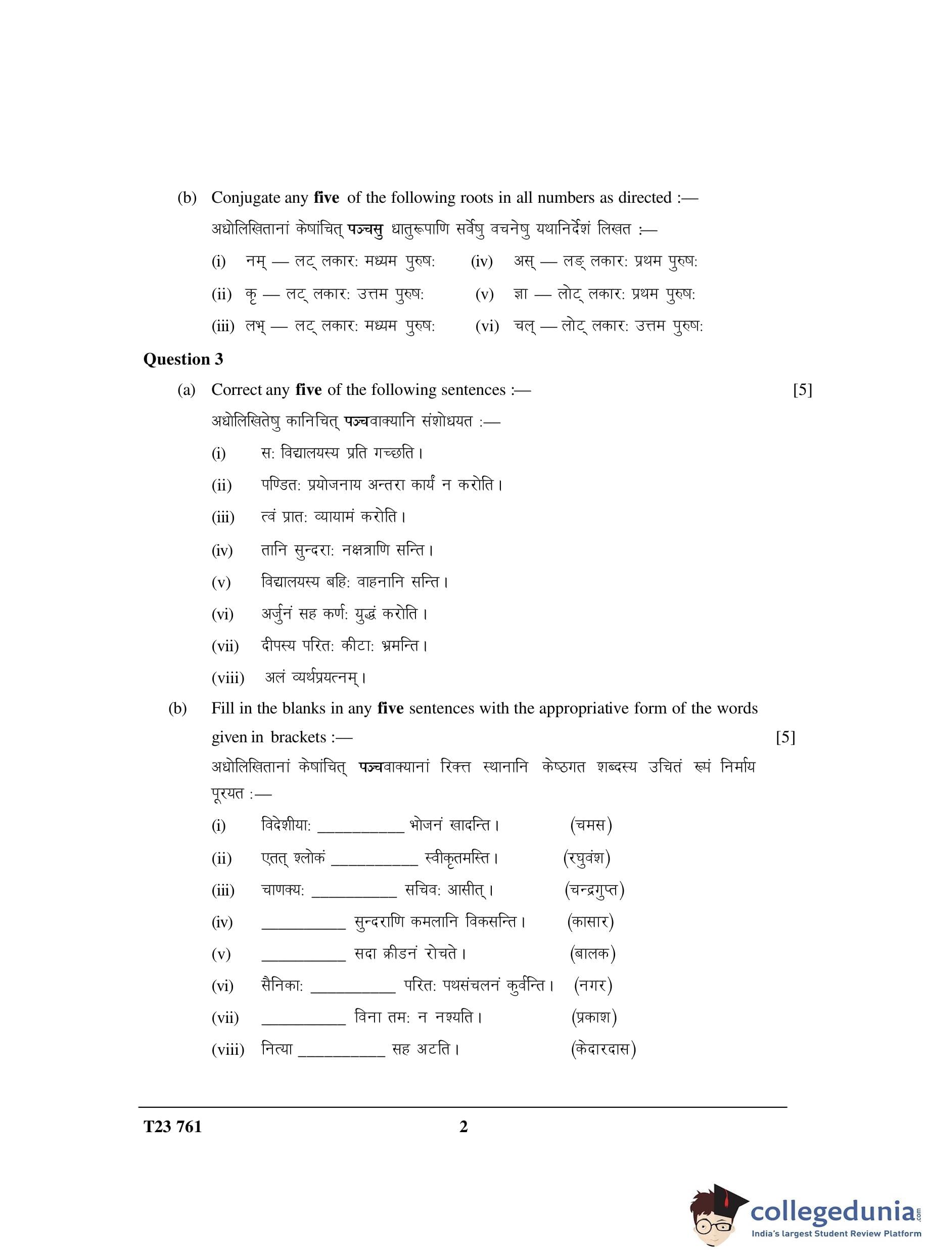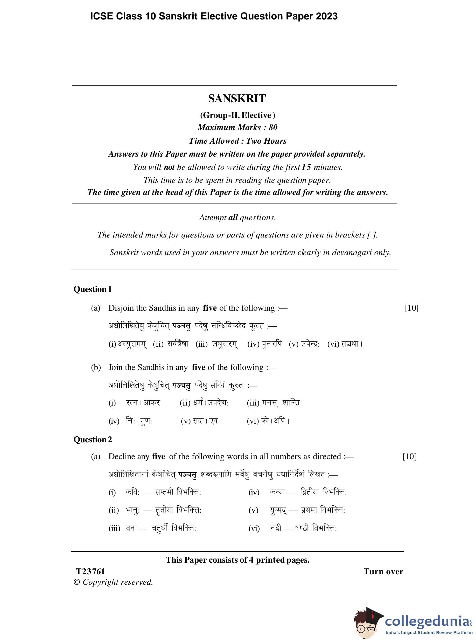ICSE Class 10 Sanskrit Elective Question Paper 2023 with Answer Key