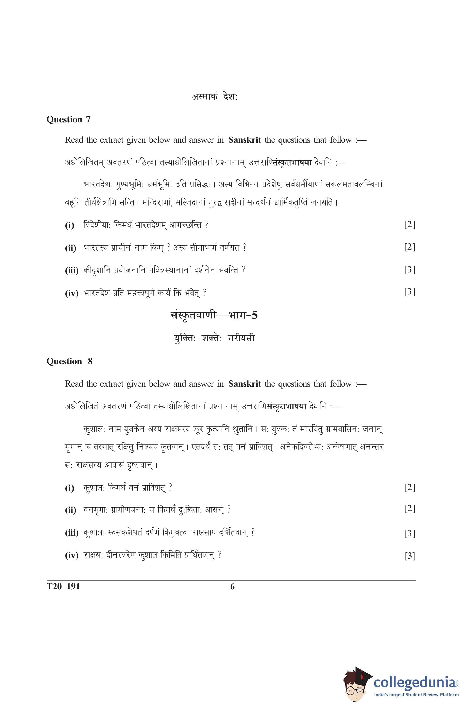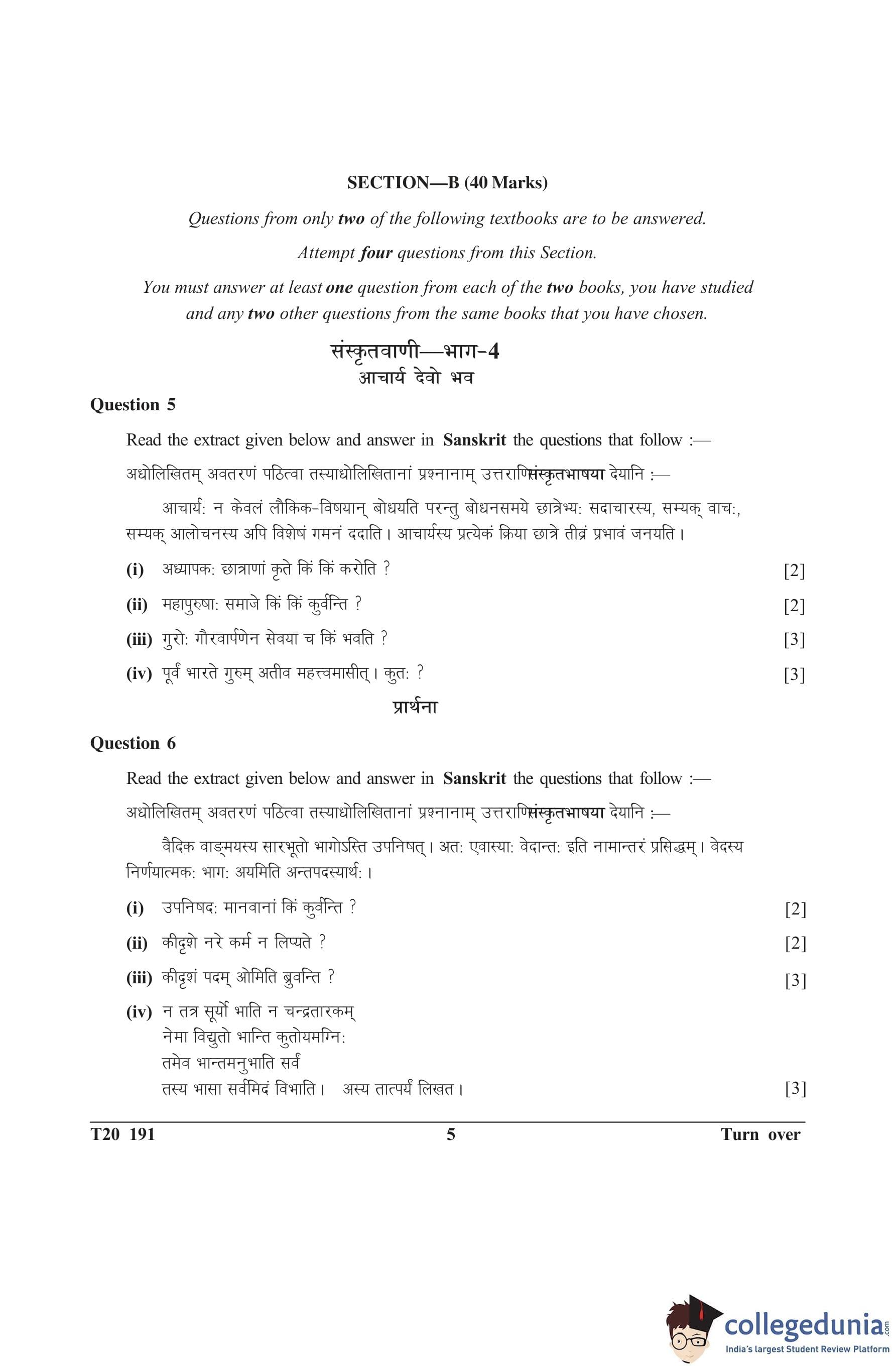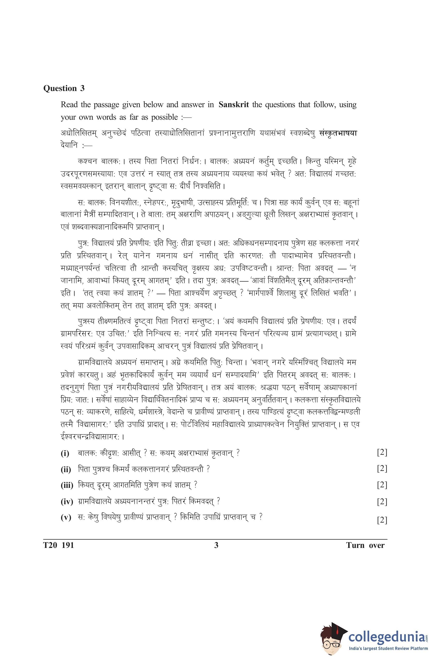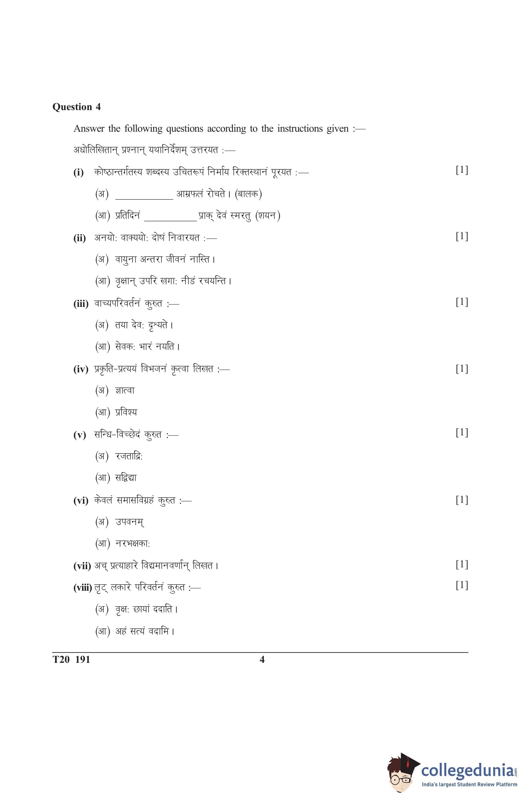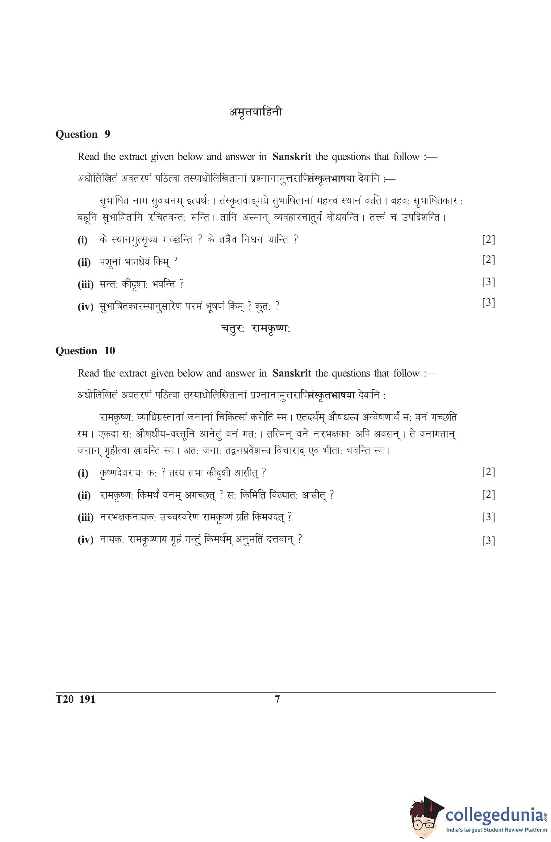 ICSE Class 10 Sanskrit Question Paper 2020 with Answer Key