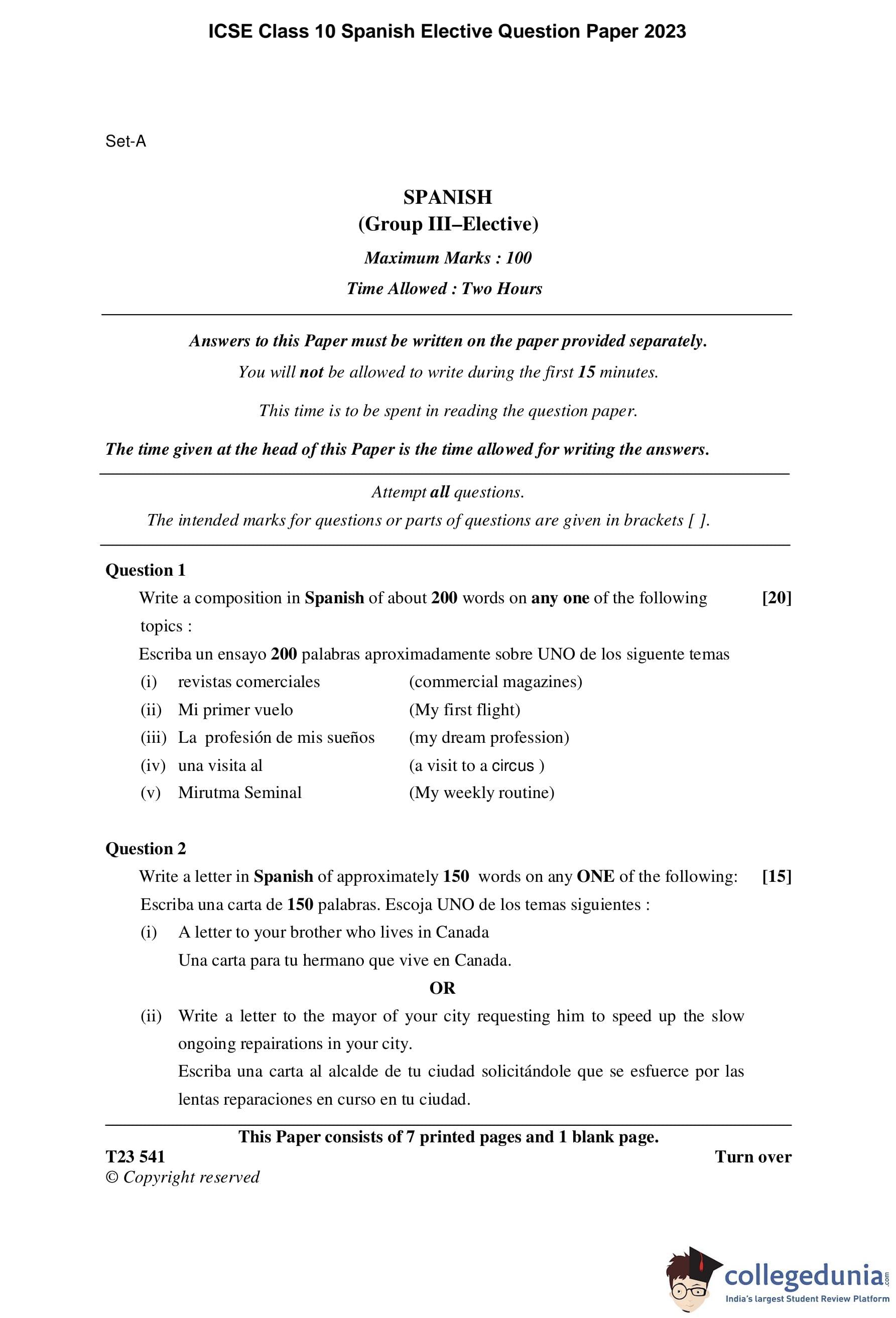 | ICSE Class 10 Spanish Question Paper 2023 PDF | ICSE Class 10 Spanish Answer Key 2023 PDF |