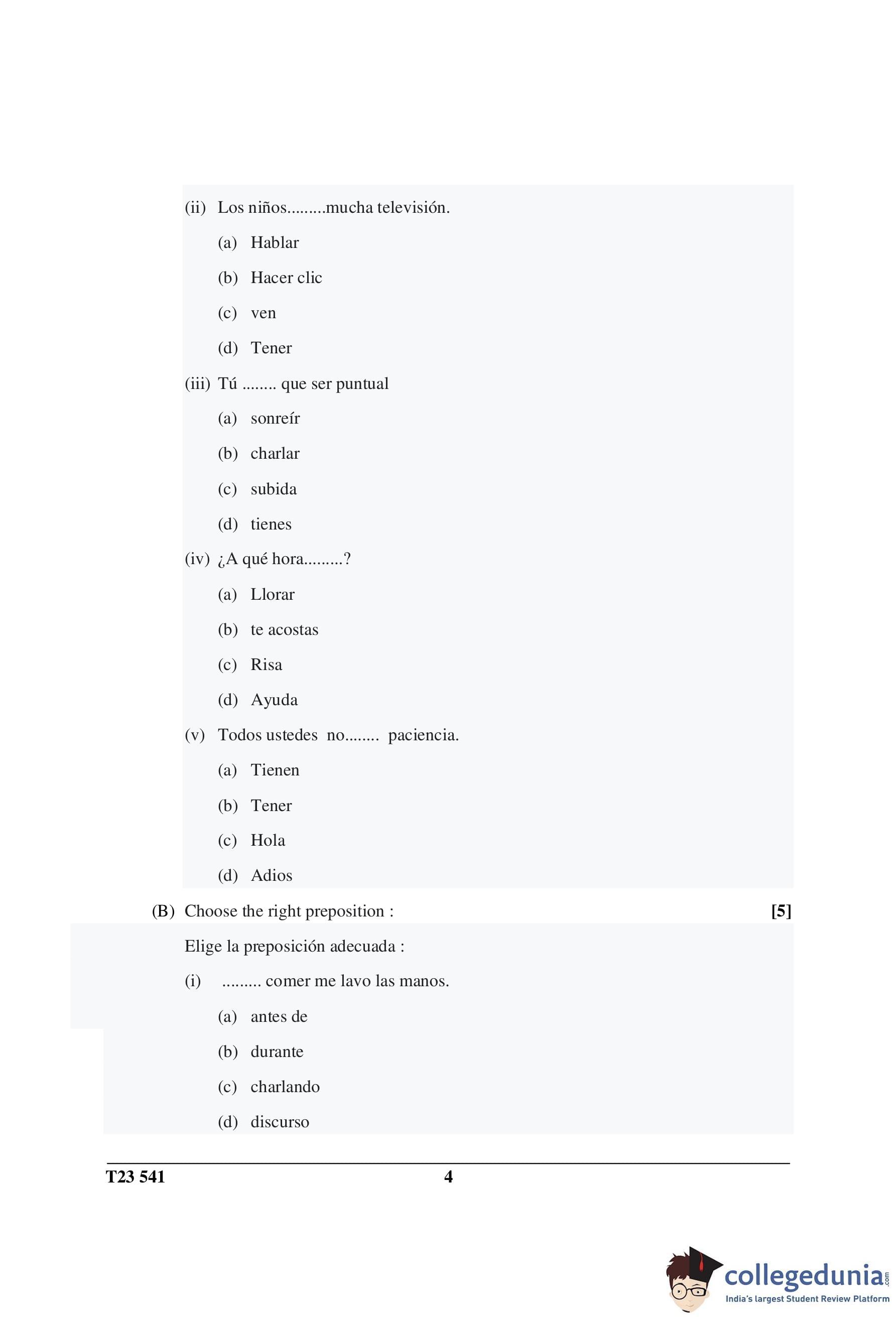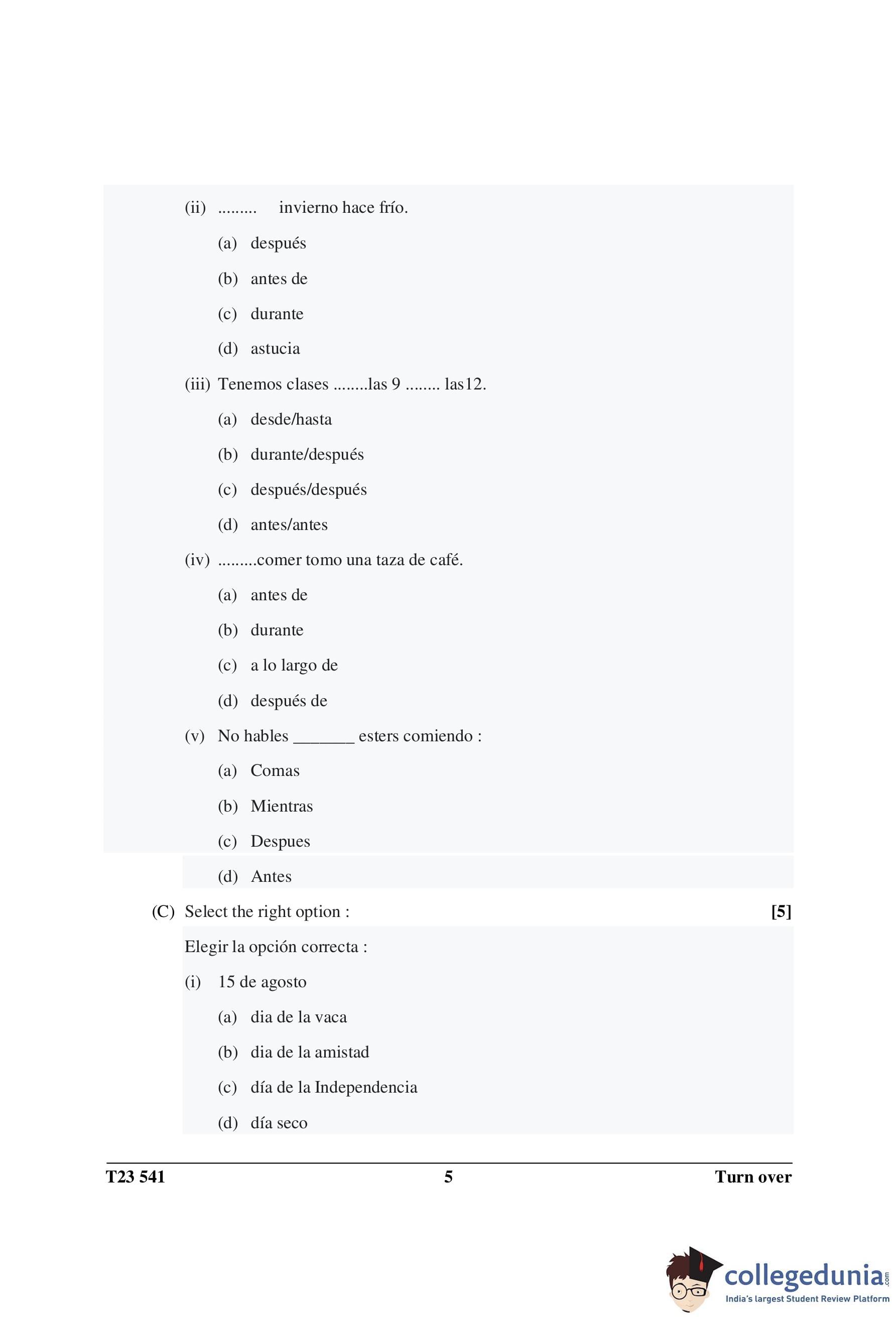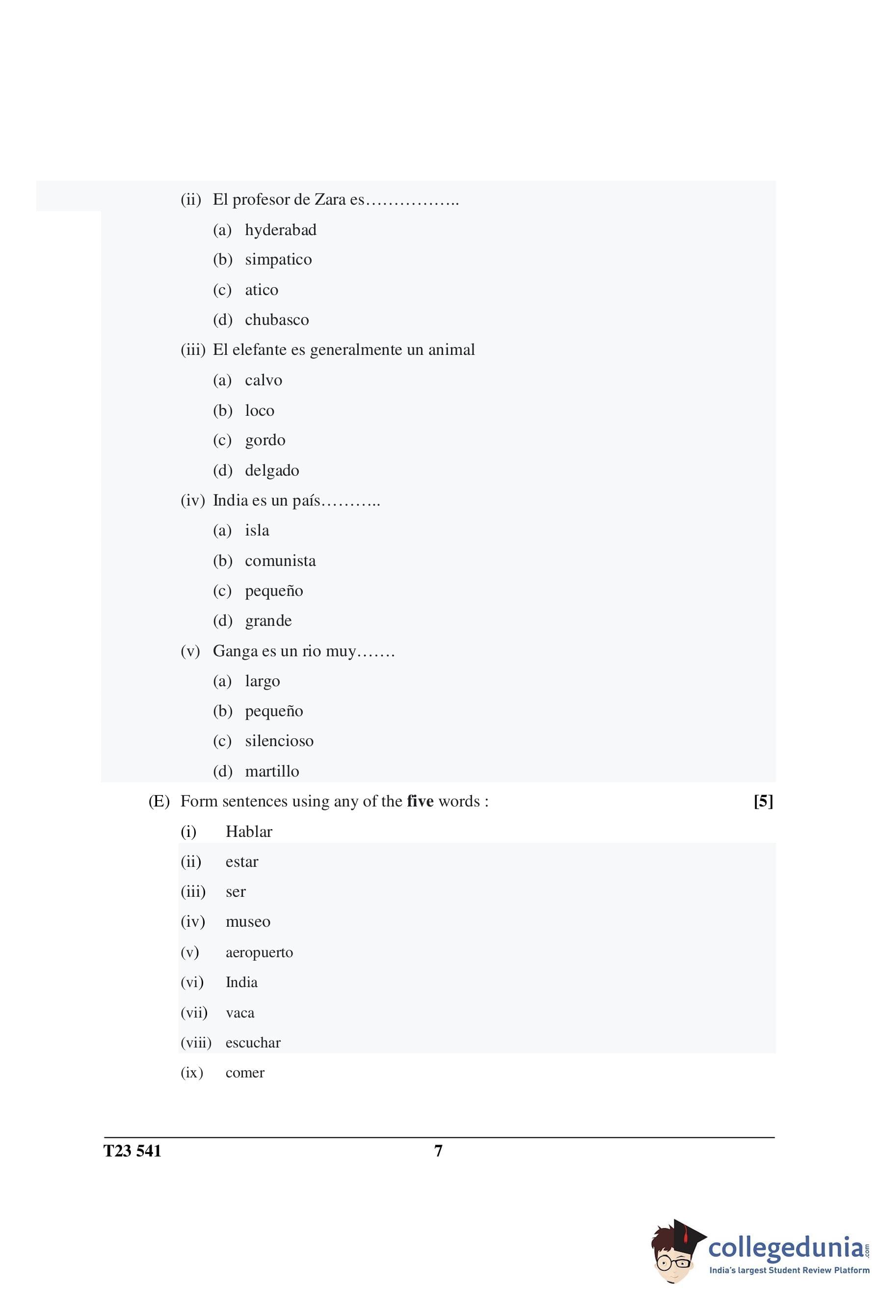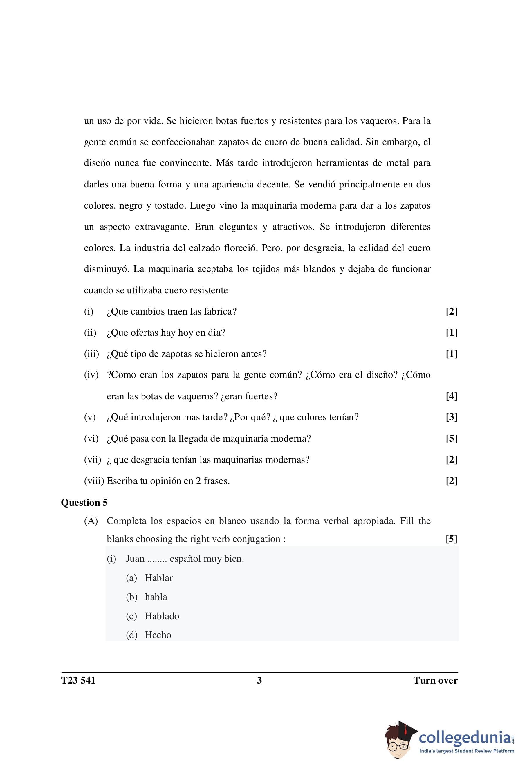 ICSE Class 10 Spanish Elective Question Paper 2023 with Answer Key