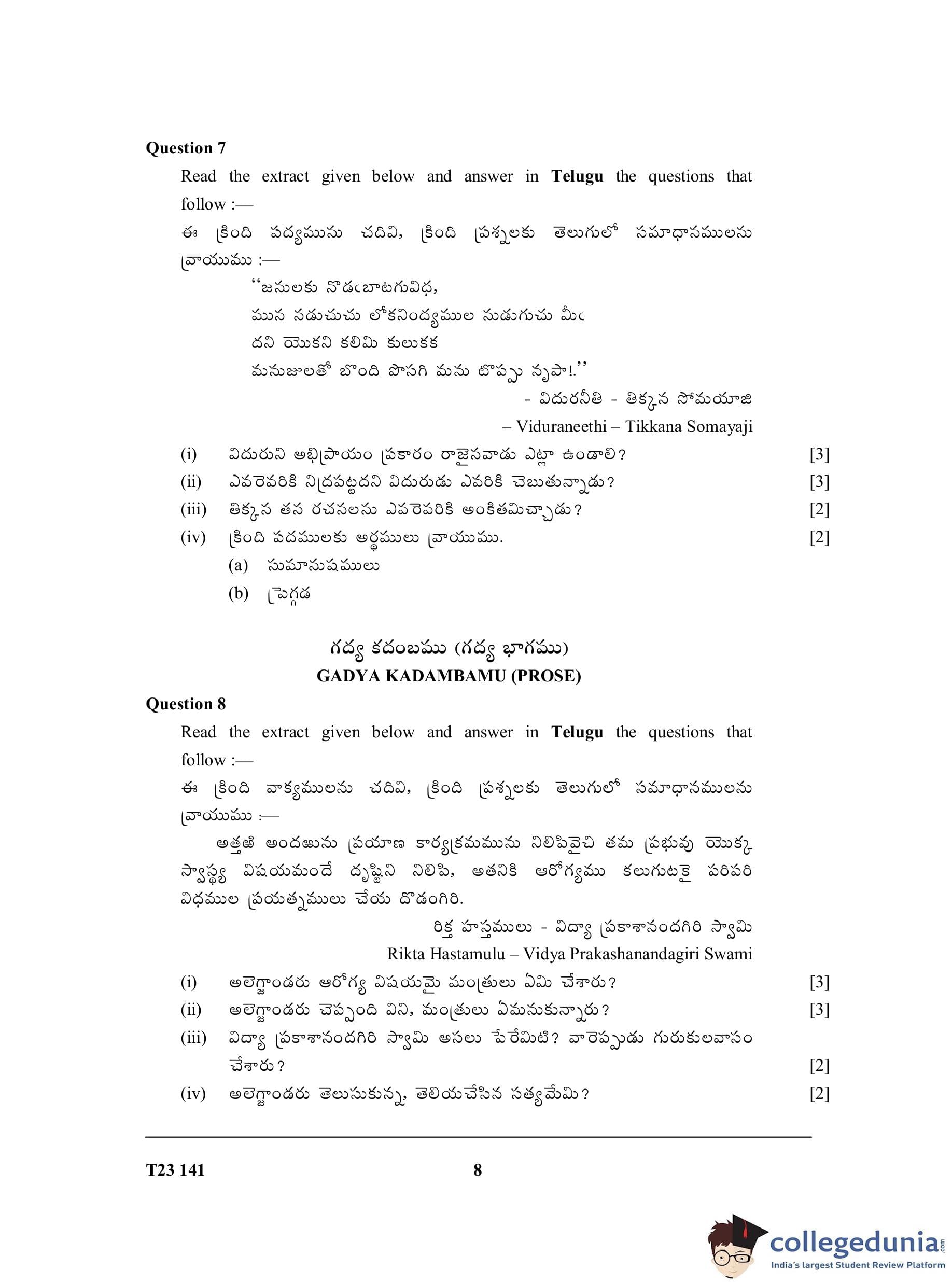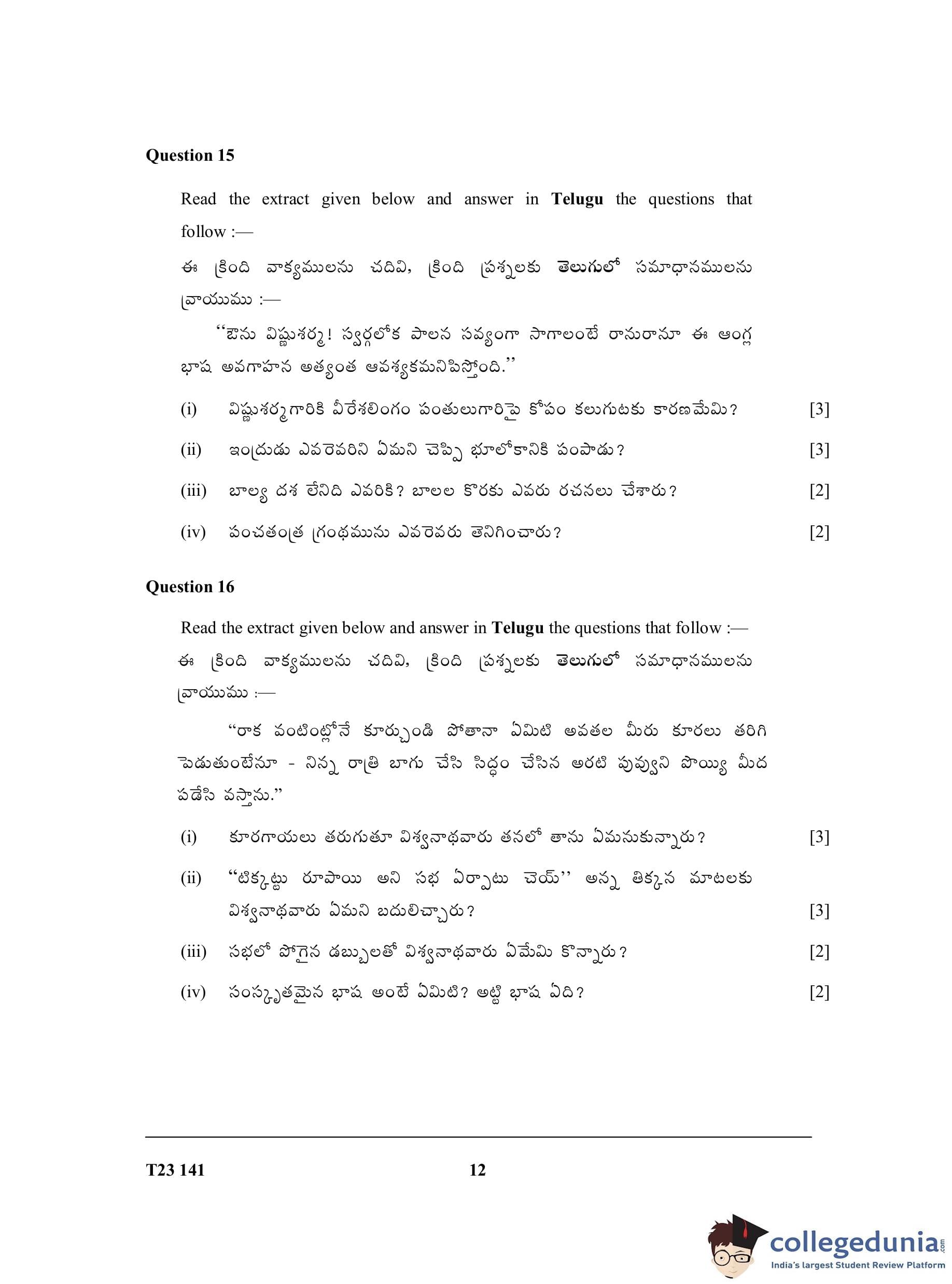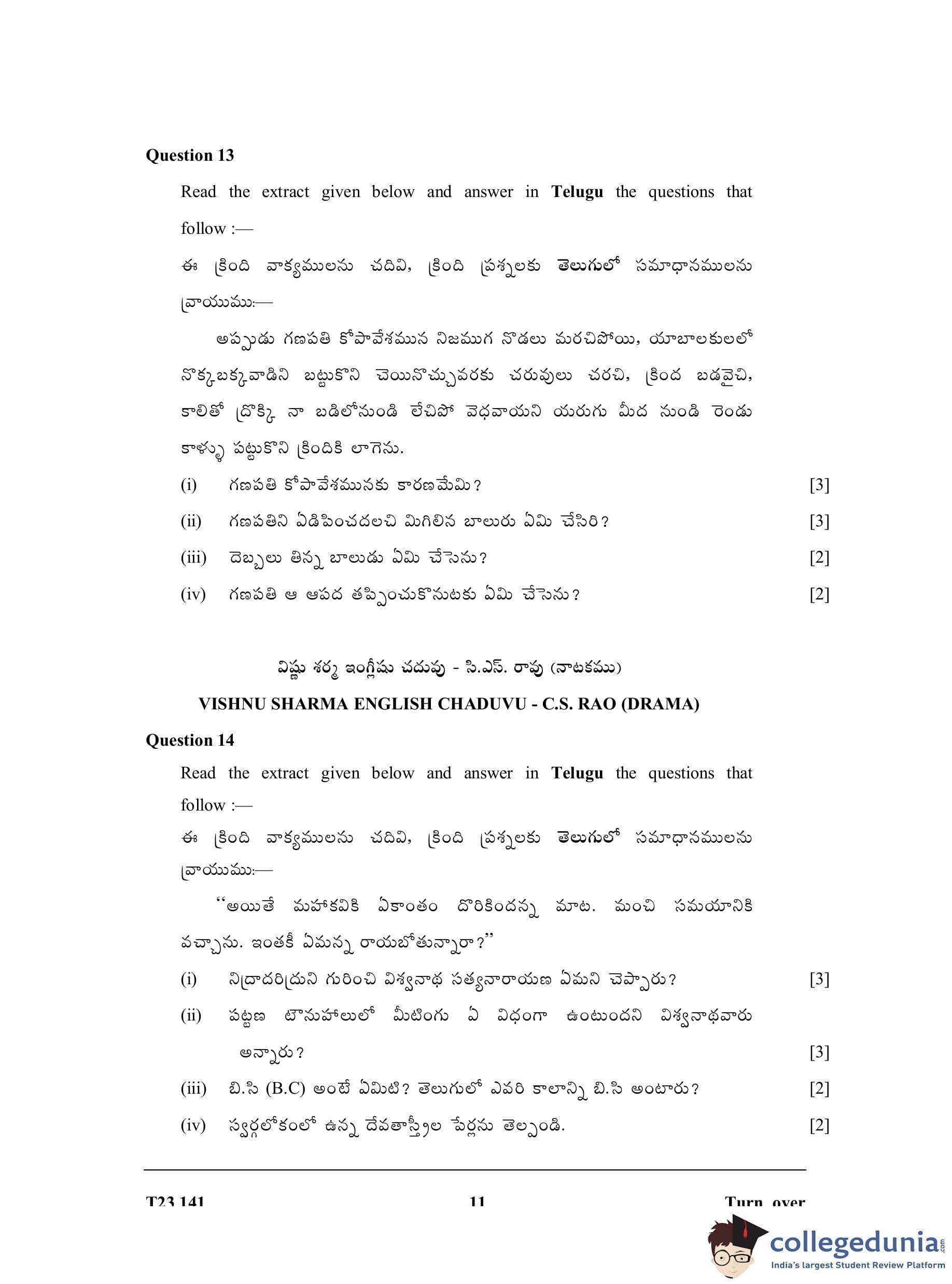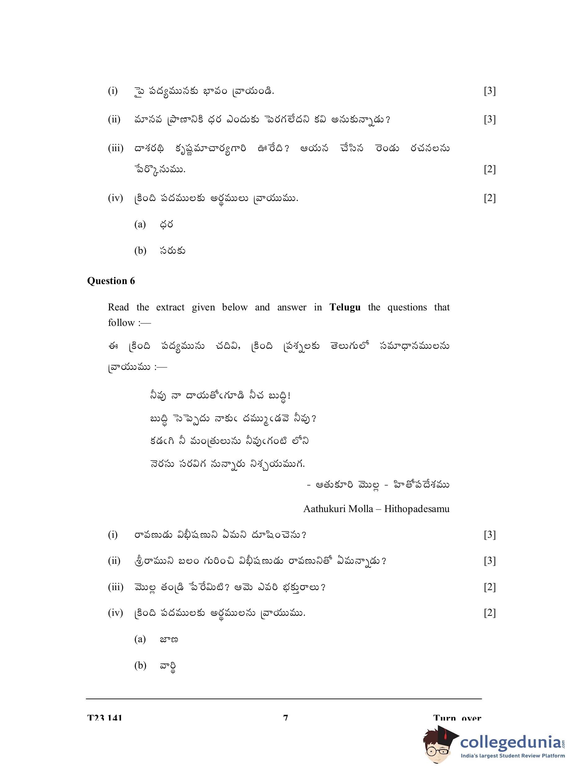 ICSE Class 10 Telugu Question Paper 2023 with Answer Key